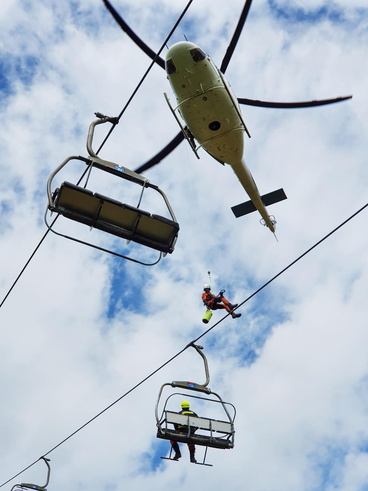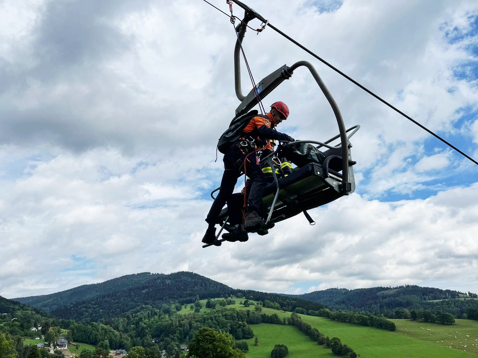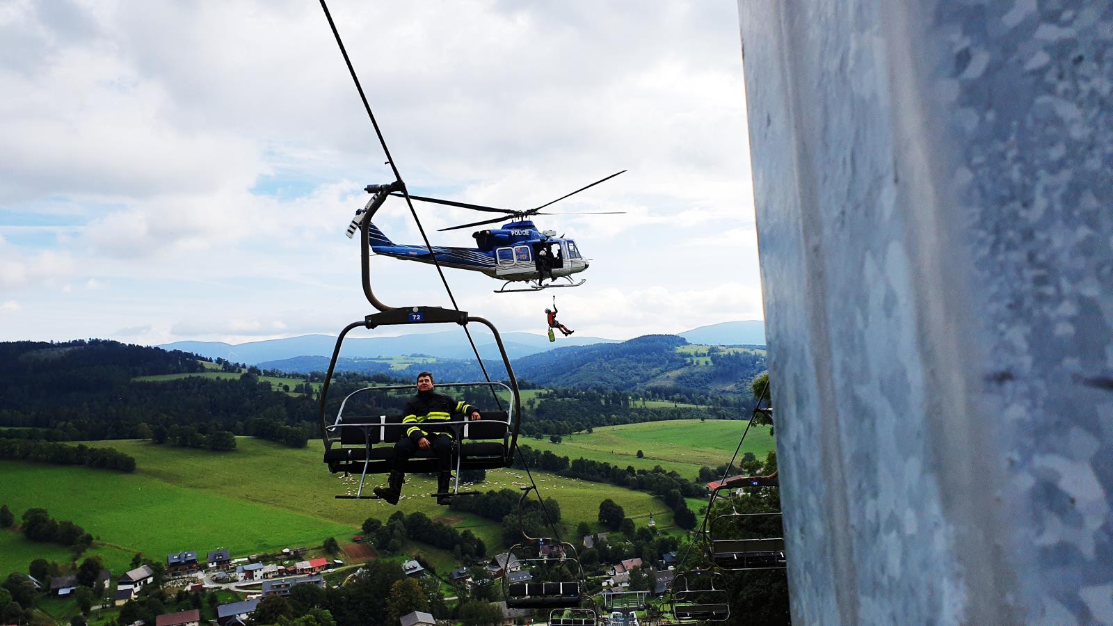 Součástí záchranných prací se proto stal i vrtulník, který pokud může vzlétnout, pomůže zkrátit čas záchrany i o desítky minut. Při včasném ohlášení poruchy tak nemusejí lyžaři v nepříznivých podmínkách na lanovce čekat déle, než je nezbytně nutné. Při spolupráci s vrtulníkem jsme totiž schopni rychleji soustředit naše síly a prostředky na místě zásahu a výrazně tak urychlit nasazení většího počtu hasičů-lezců, a tím tak dostat do bezpečí a tepla v kratším čase větší počet lyžařů.