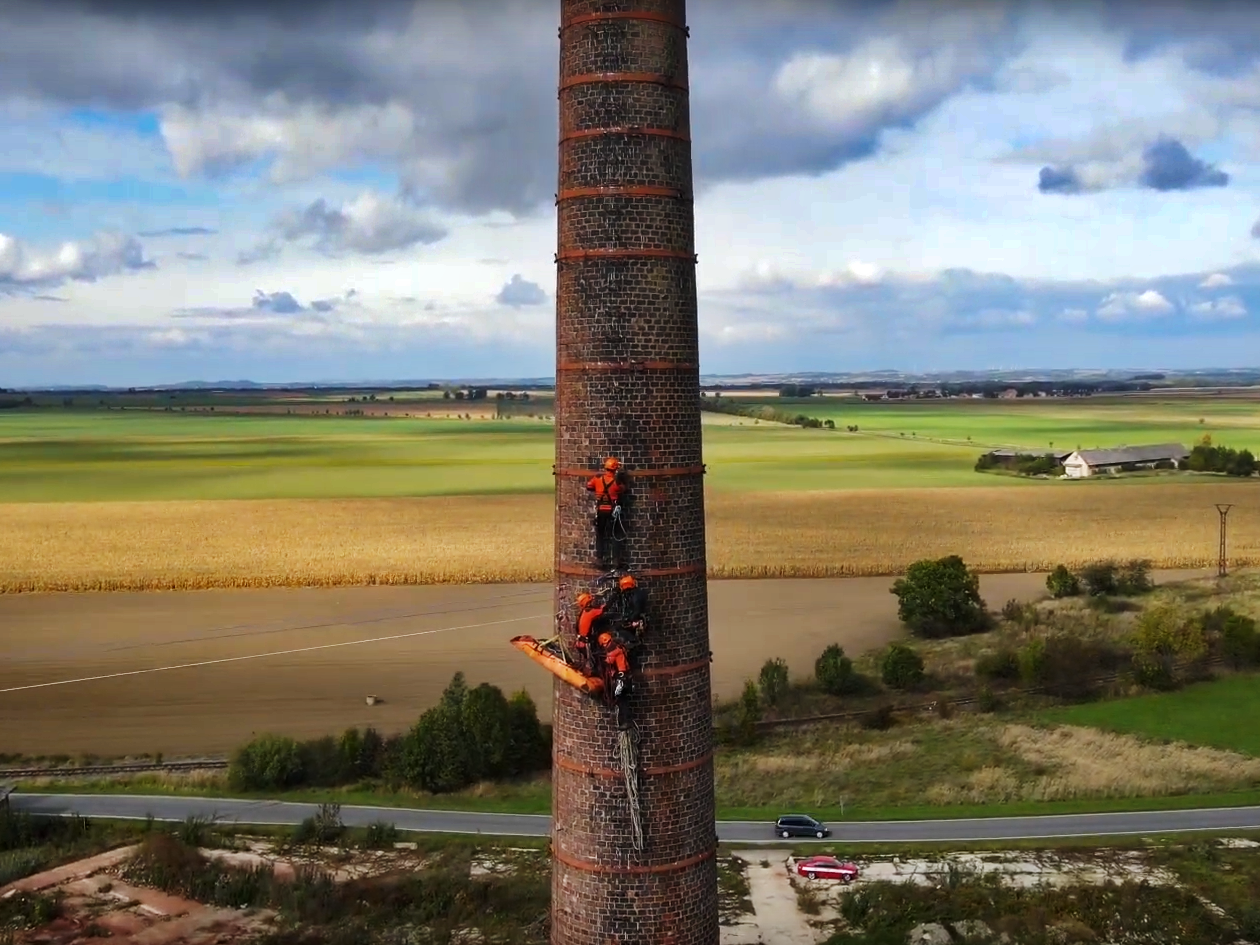 „Lezci dostali za úkol vytvořit lanové přemostění mezi dvěma komíny a pomocí speciálních lanových technik a vybavení transportovat zraněnou osobu nejprve na jeden a potom přes tyrolský traverz na druhý komín. Celou dobu byla zraněná osoba v doprovodu jednoho z lezců,“ popsal jeden z lezeckých instruktorů Přemysl Venouš. Jeden z komínů měří 60, druhý 45 metrů.