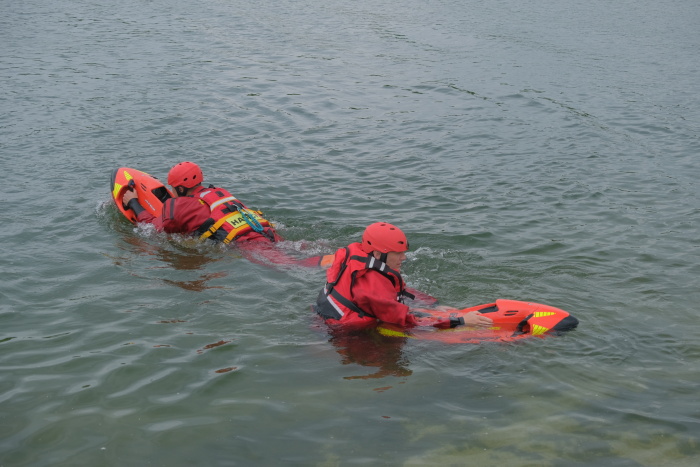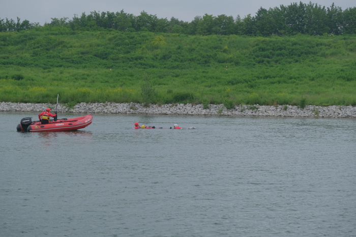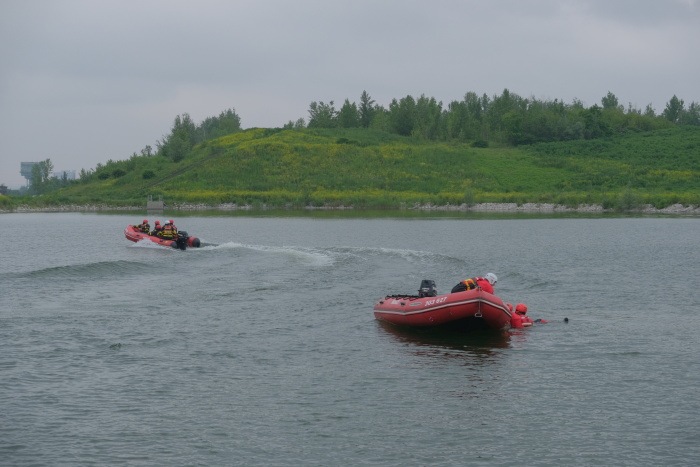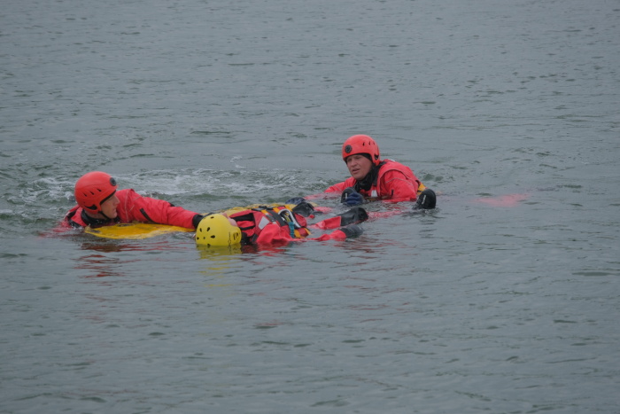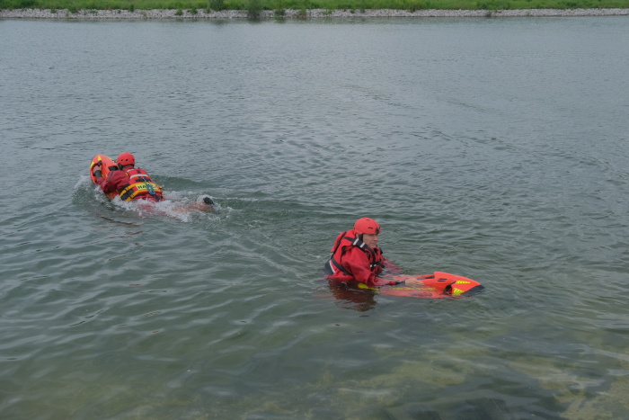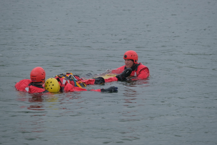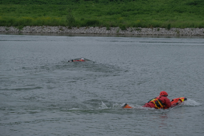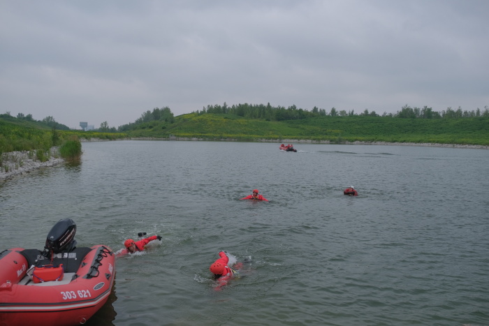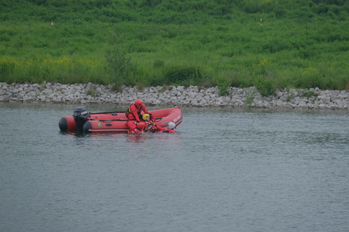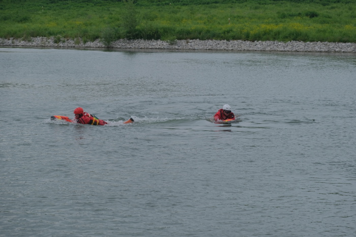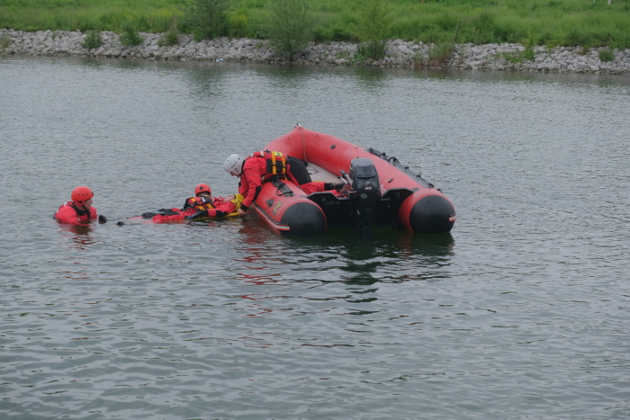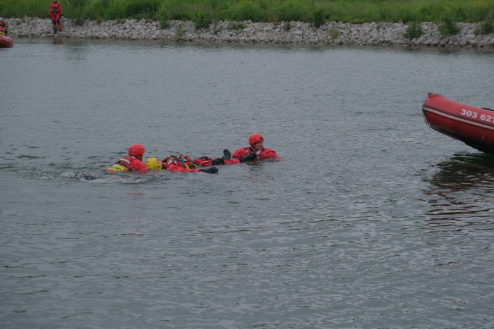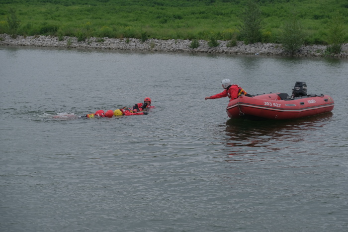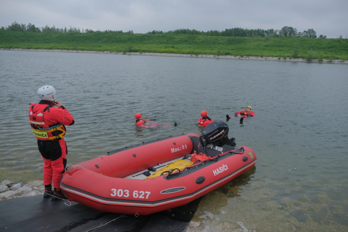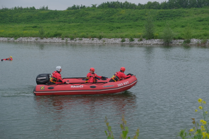Profesionální hasiči ze čtyř ostravských stanic HZS MSK – Zábřeh, Slezská Ostrava, Jih a Fifejdy – si řádně procvičili pomalou i rychlou jízdu v nafukovacích člunech, poháněných silným motorem nebo pádly, a slalom člunů na vodní hladině, záchranu osob (figurantů ve žlutých přilbách) z vody i s použitím páteřní desky. Rovněž pohyb jednotlivců na vodní hladině, především plaváním, ztíženým oproti koupání v plavkách jak nepromokavou kombinézou, tak nafukovací vestou (i když ta plavce nadnáší) a přilbou.