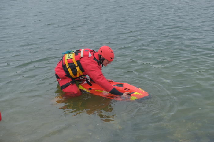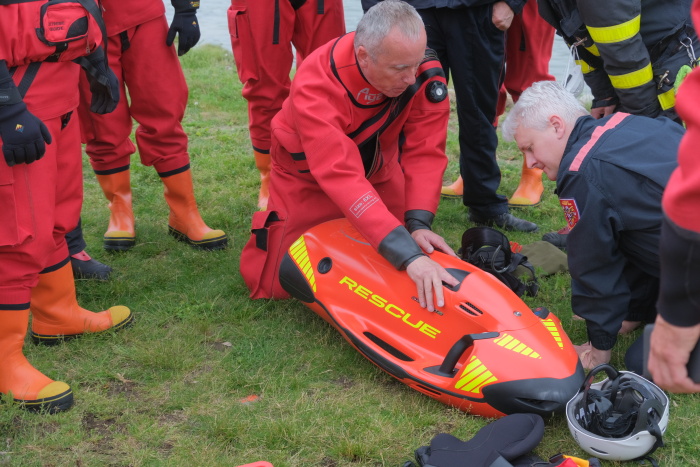 Největší zájem o trénink vyvolal nový prostředek hasičů pro pohyb na vodě Seabob, určený i pro ponor až do hloubky 2,5 metru. Ovládání tlačítky na obou rukojetích a řízení si osvojil každý hasič během několika minut.