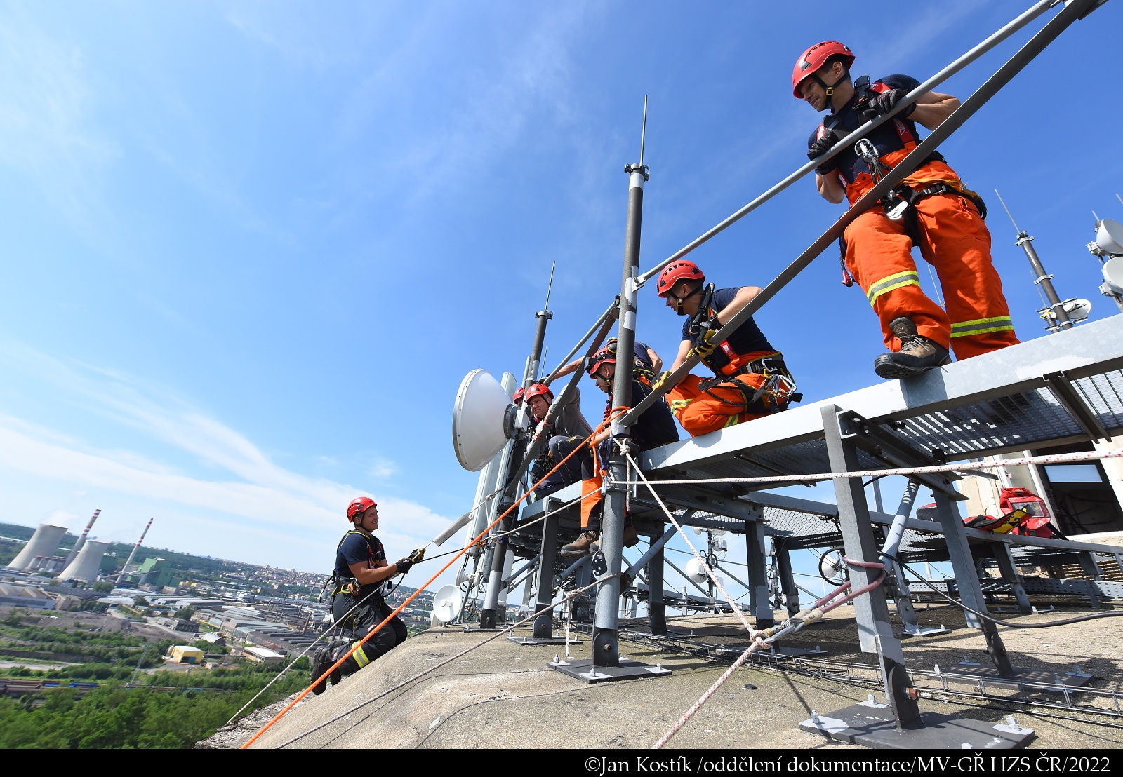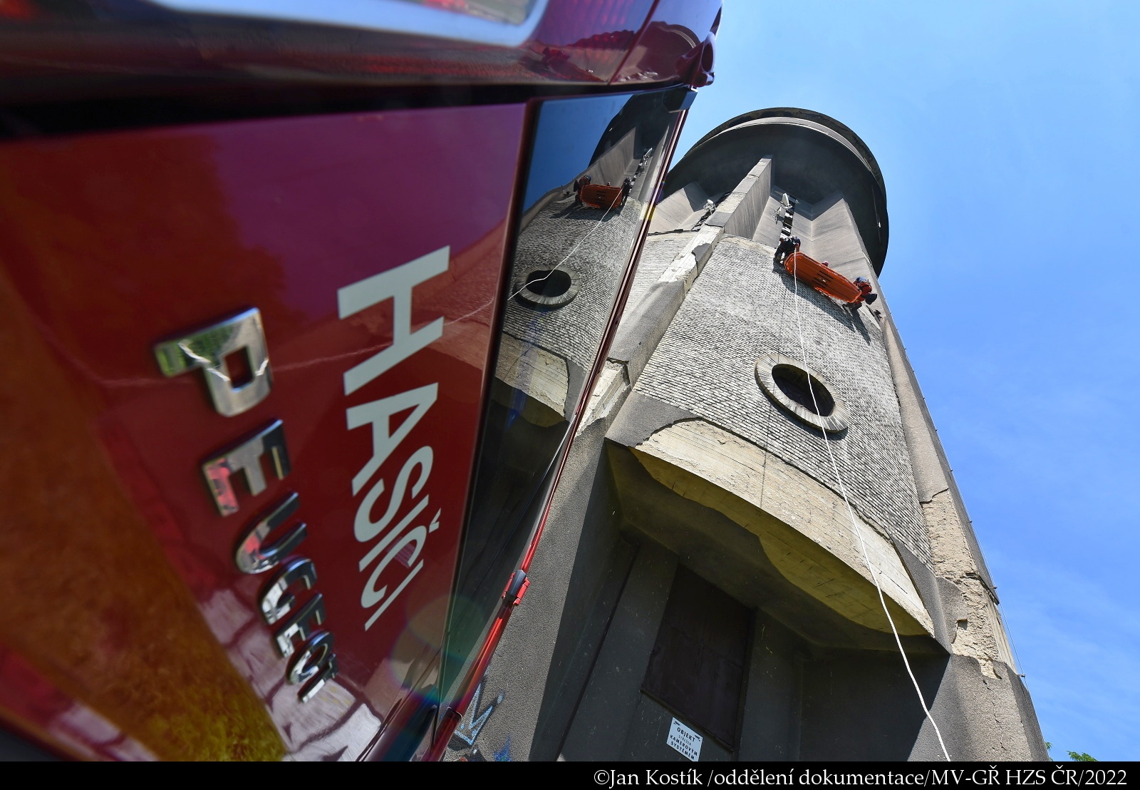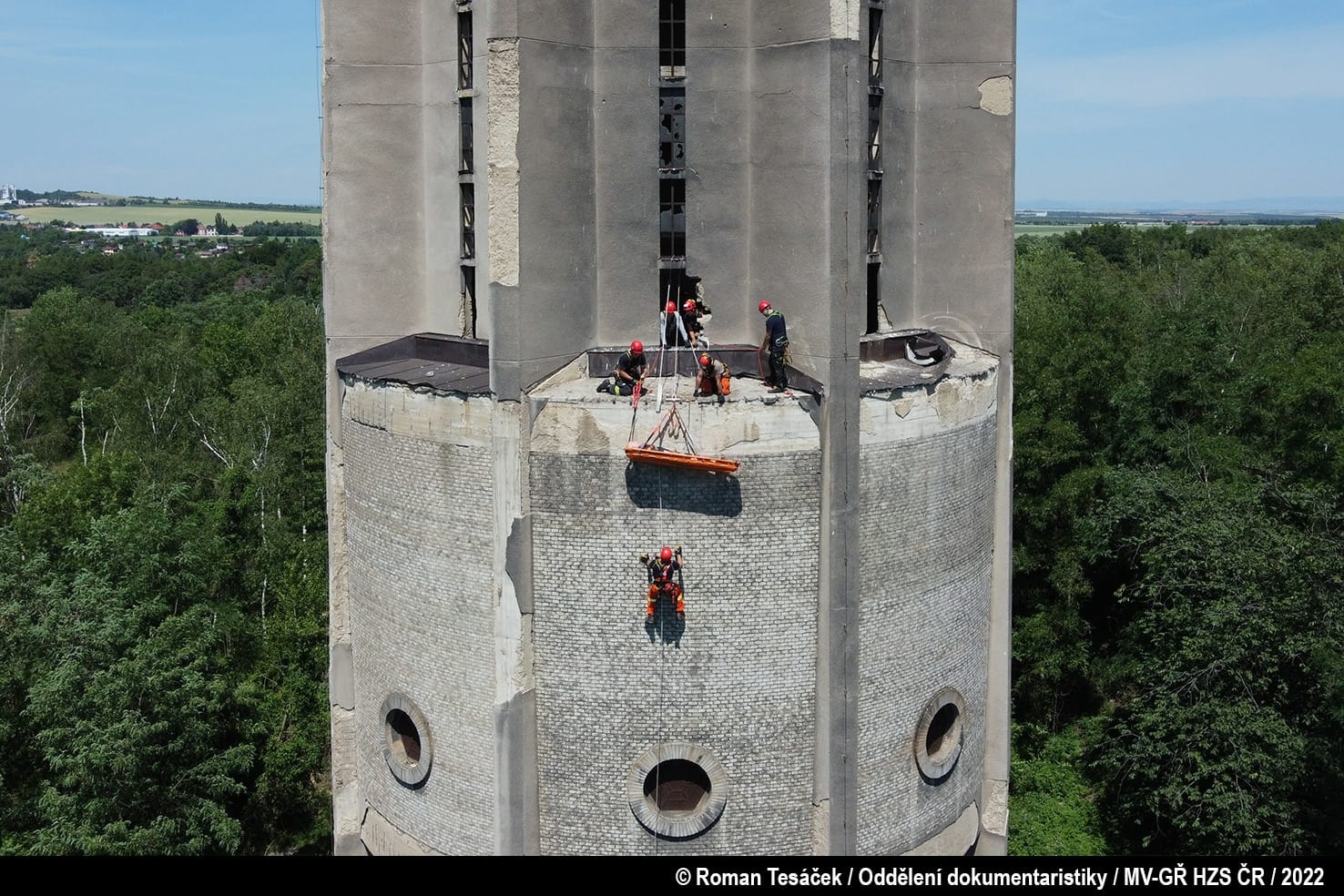 V úterý 22. června proběhl výcvik hasičů-lezců z kladenské stanice na šedesátimetrovém bývalém věžovém vodojemu v Kladně.
