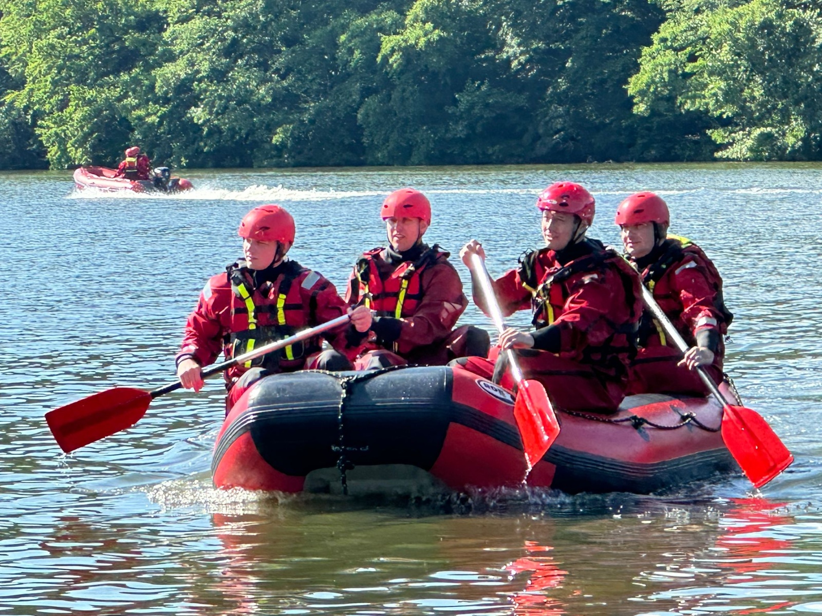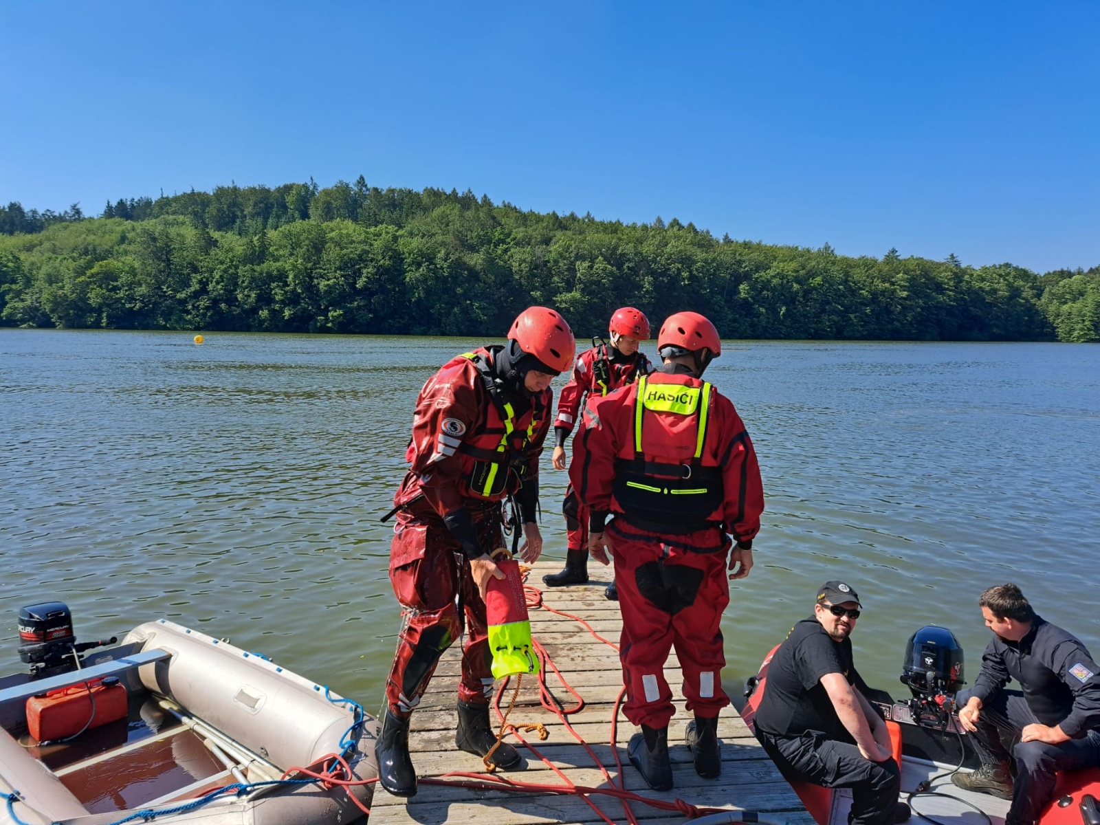 Hasiči si prakticky vyzkoušeli oblékání společných ochranných prostředků, mezi které patří suché obleky, záchranné vesty, přilby a různé typy házecích pomůcek. Poté si zkusili souhru posádky v raftovém člunu. Následovala jízda plavidla s motorem, zaměřená na bezpečnou manipulaci s lodí, zejména její ovládání při jízdě vpřed a zpět, přiblížení k jinému plavidlu nebo překážce, přesedání do jiného plavidla a vlečení (tlačení) druhého plavidla.