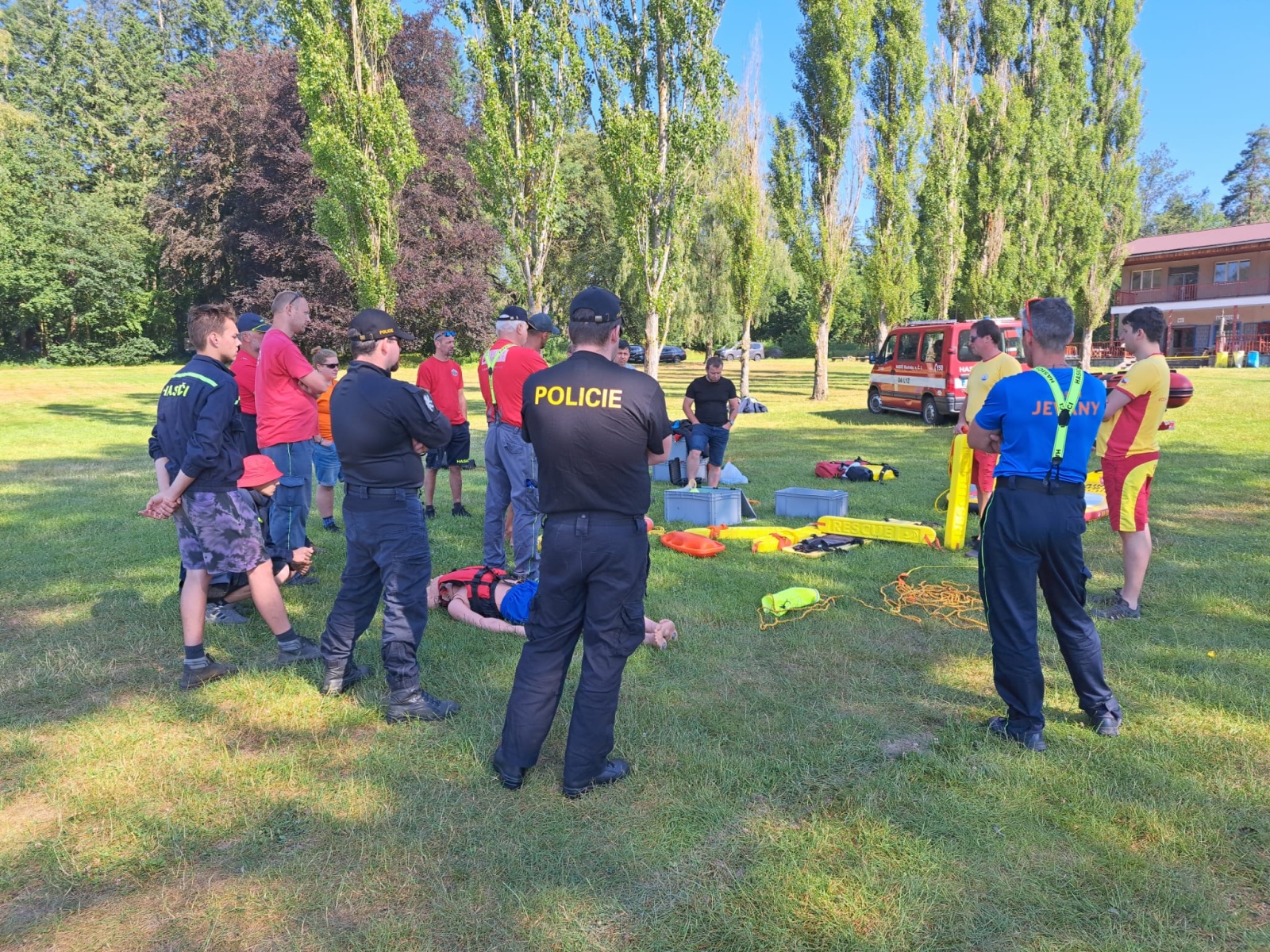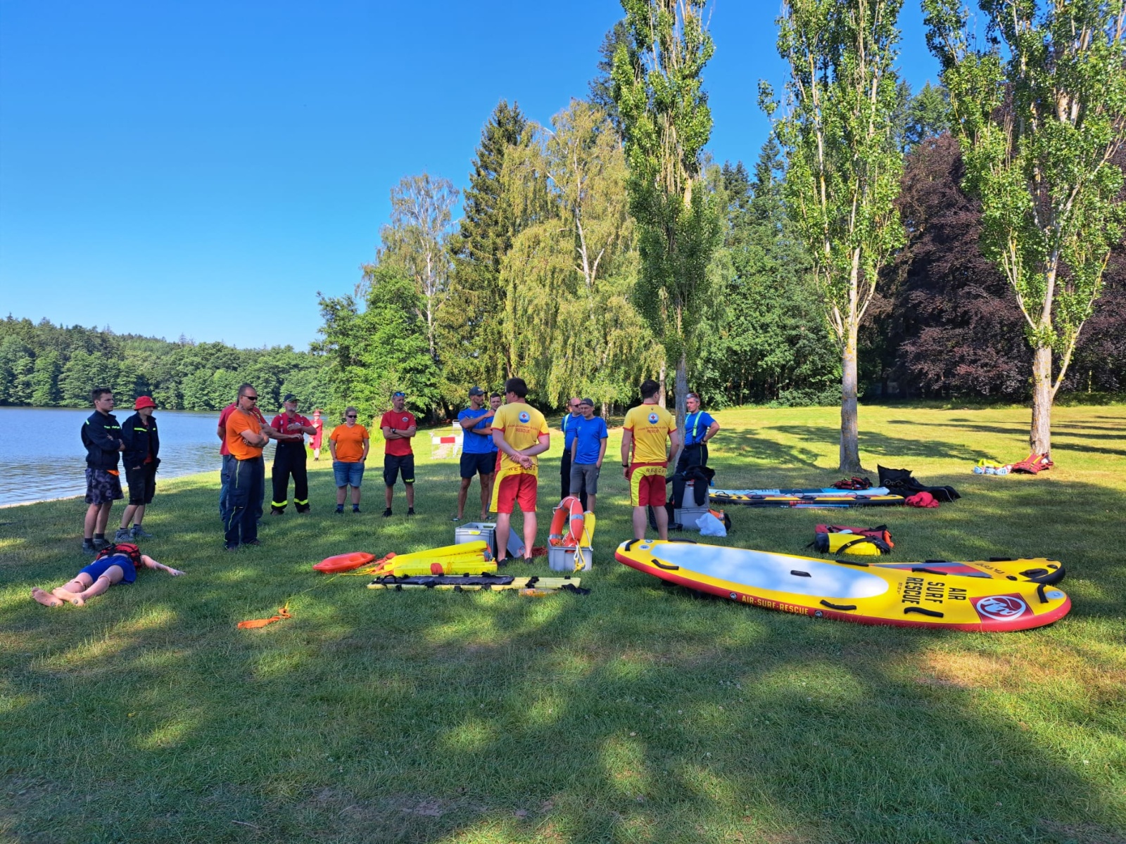 Organizaci výcviku a přípravu záchranných prostředků včetně plavidel zajistila stanice Říčany, centrální hasičská stanice Kolín poskytla lodní kontejner (KLO). Za možnost provedení výcviku na koupališti děkujeme vedení obce Vyžlovka (vlastník pozemku) a Školnímu lesnímu podniku v Kostelci nad Černými lesy (vlastník vodní plochy). V neposlední řadě poděkování patří také lektorům Vodní záchranné služby ČČK z Prahy 15 za zajištění výcviku pro dobrovolné hasiče.