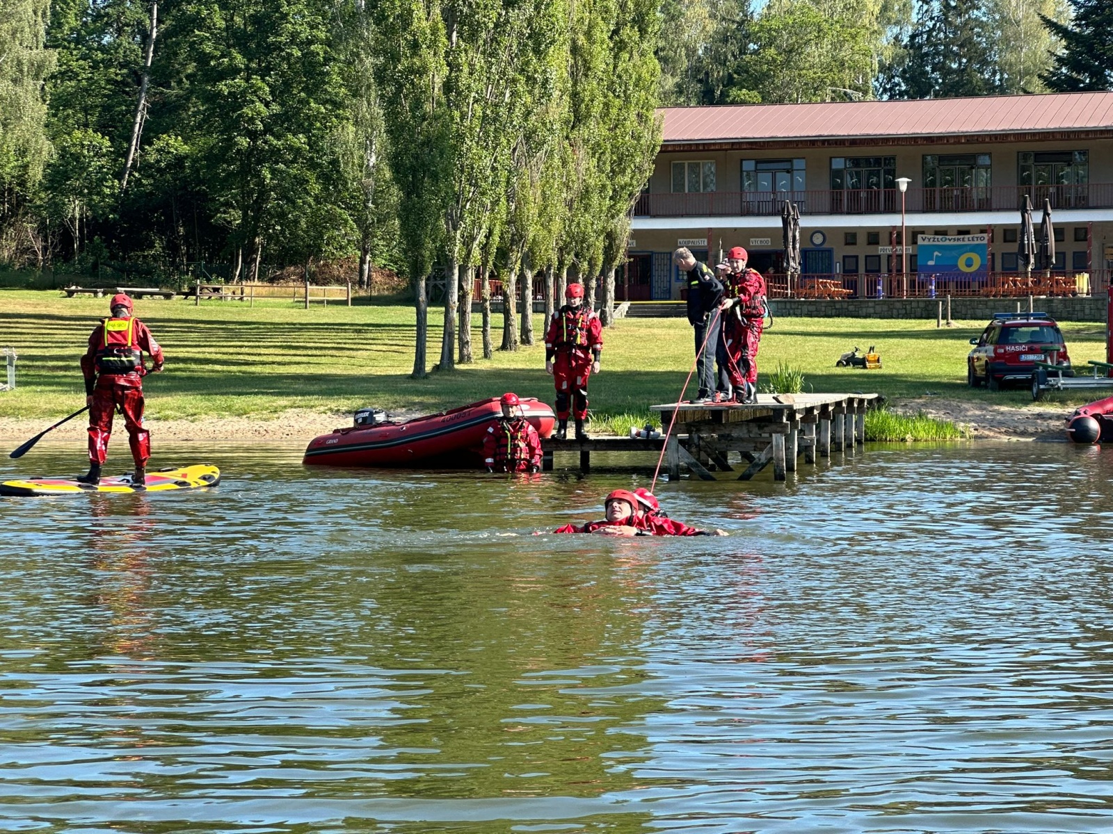 Od 24. do 26. června proběhla v areálu přírodního koupaliště Vyžlovka periodická odborná příprava zaměřená na práci na klidné vodní hladině, která byla určena pro příslušníky hasičských stanic Říčany a Český Brod územního odboru Kolín.