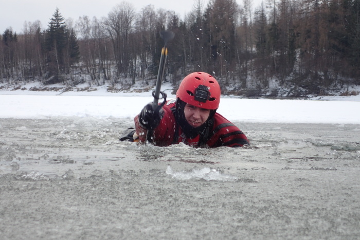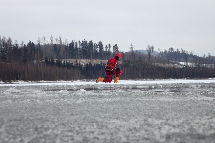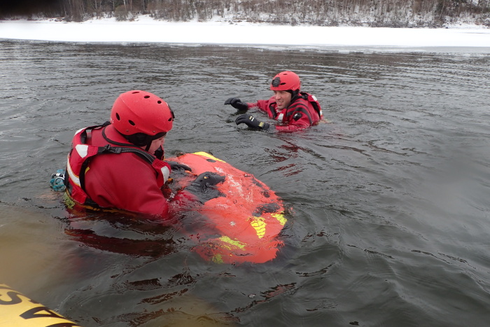 V minulém týdnu absolvovala výcvik „na klidné, tekoucí a zamrzlé hladině“ také směna C ze stanice Hasičského záchranného sboru Moravskoslezského kraje (HZS MSK) v Bruntálu. Odborná příprava byla obohacena o seznámení s novým prostředkem pro práci na vodě „Seabob“, určeným pro pohyb na vodě i pod vodou. Elektromotor dodá rychlost až 27 km/h. Ovládání si osvojil každý hasič během několika minut.