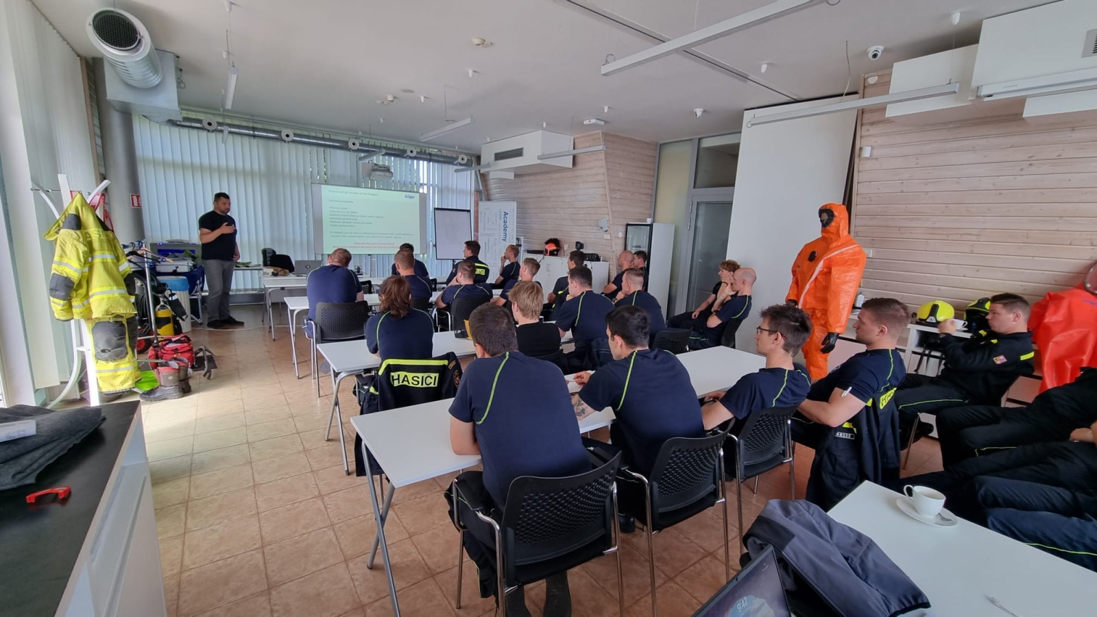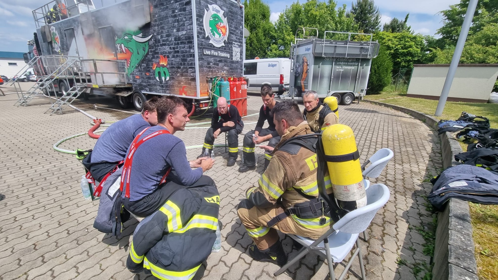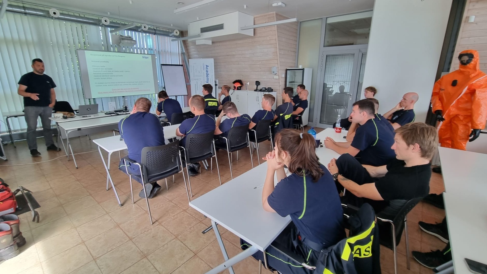 Závěrem bychom chtěli poděkovat všem instruktorům společnosti Dräger Safety, s.r.o., za umožnění neobvyklého výcviku v ohňovém trenažéru a za jejich profesionální přístup při výkladu i praktických ukázkách během celého pondělního odpoledne.