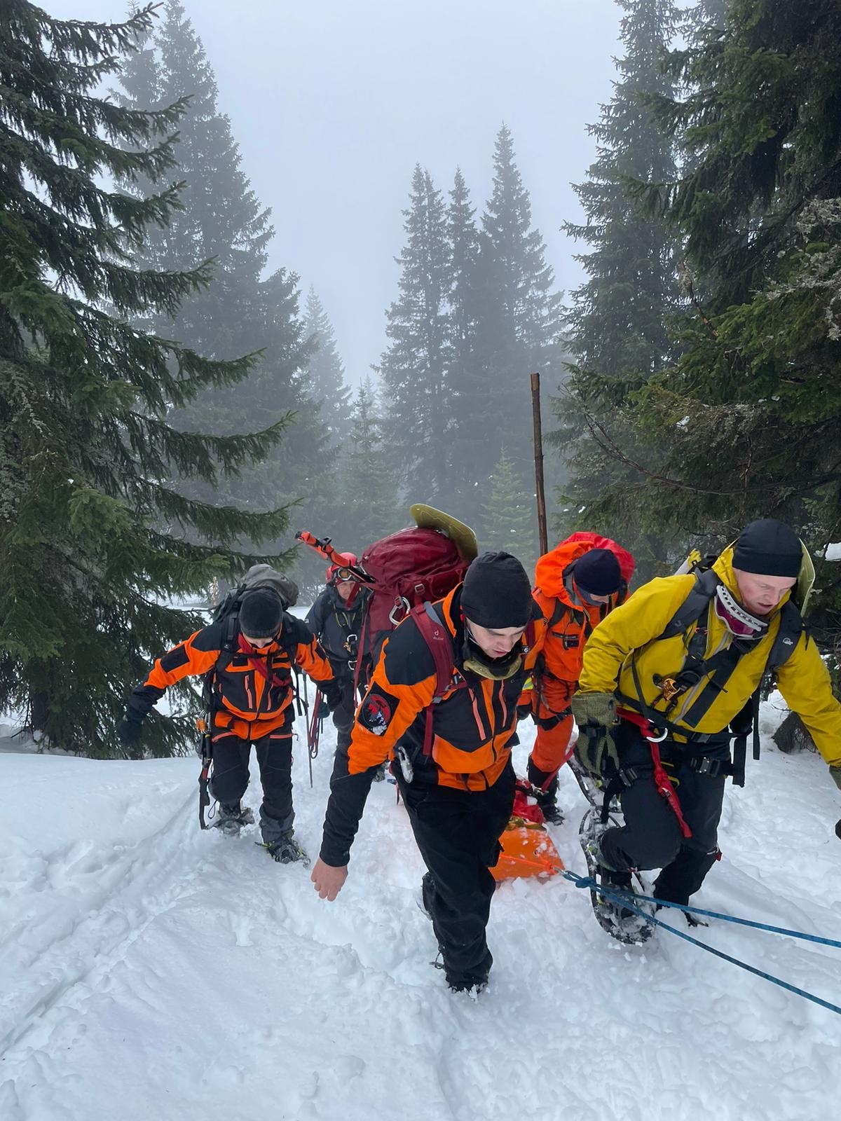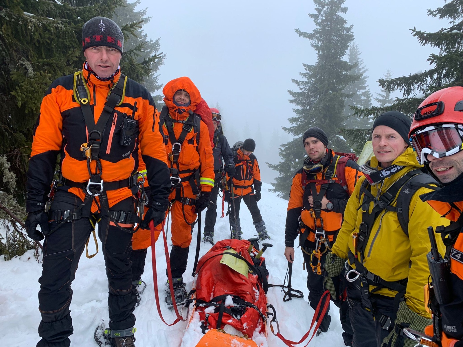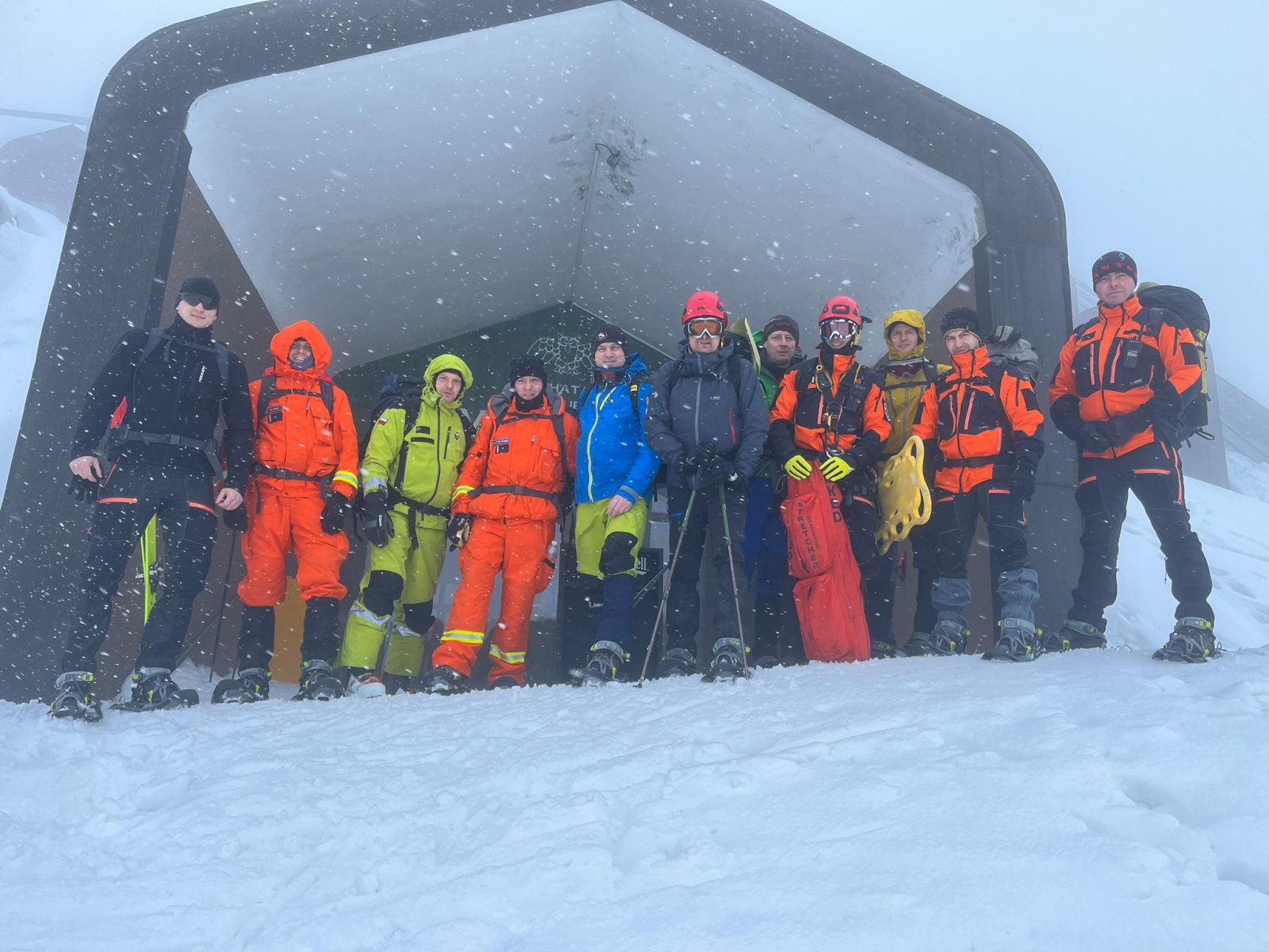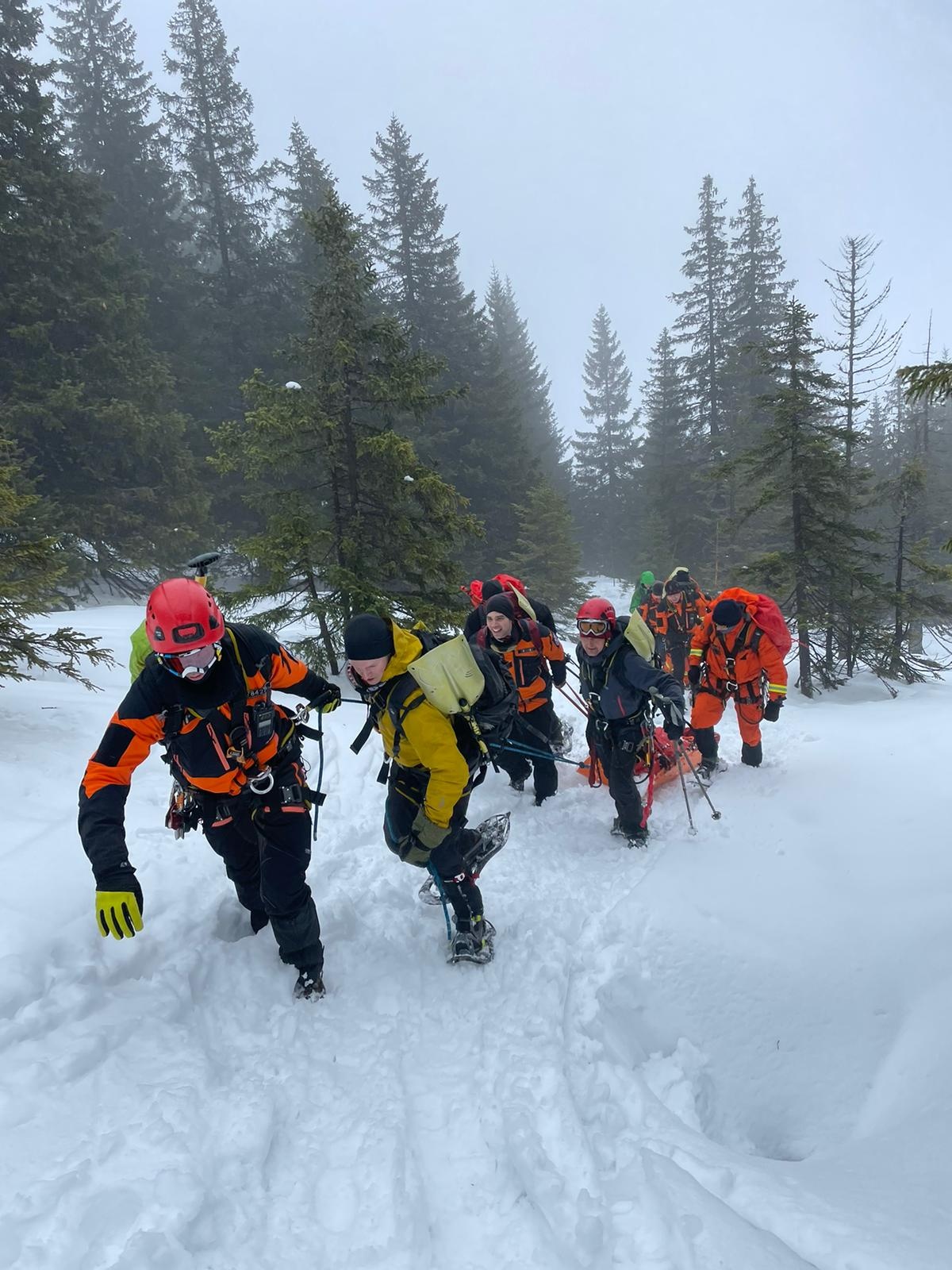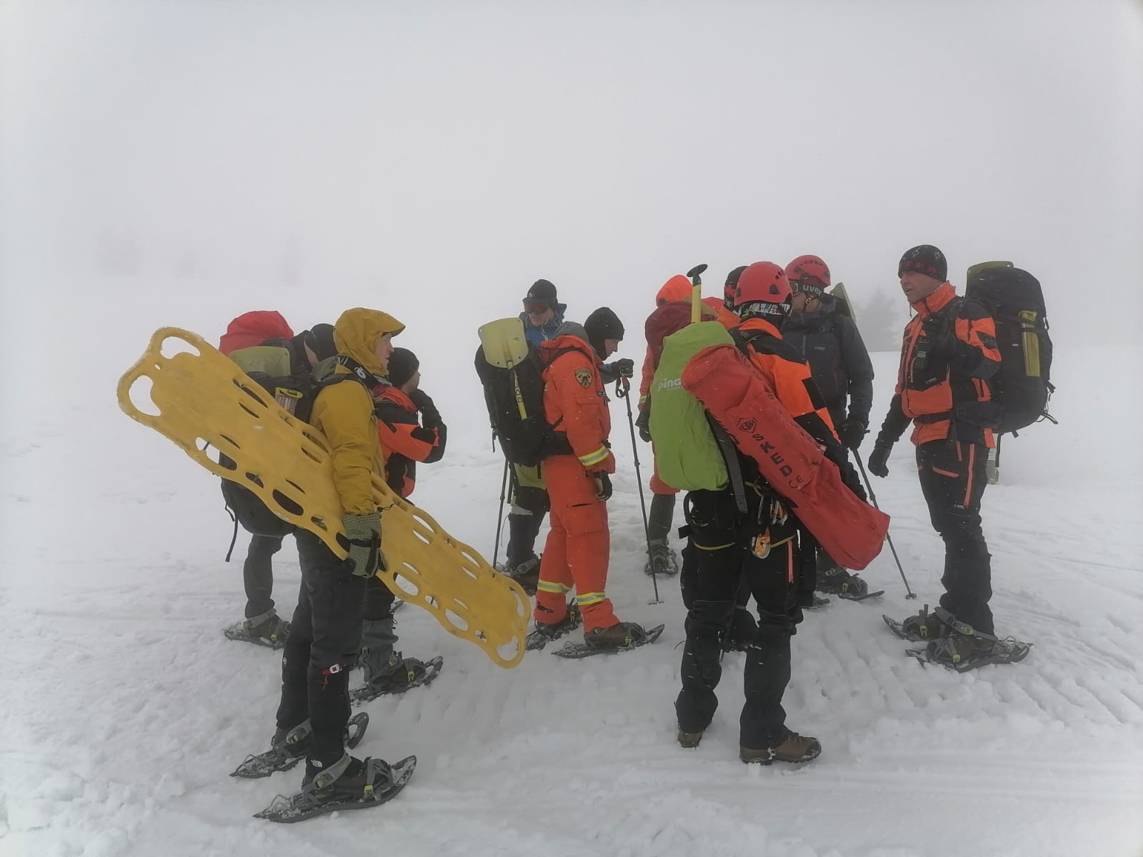 V odpoledních hodinách se hasiči rozdělili do dvou skupin a vyzkoušeli si pohyb se skialpinovým vybavení s cílem dorazit přes Luční boudu na Sněžku. Zdolání vrcholu nejvyšší hory České republiky se vzhledem k silnému nárazovému větru nepovedlo a skupina se po dosažení Slezského domu vrátila zpět na Výrovku.