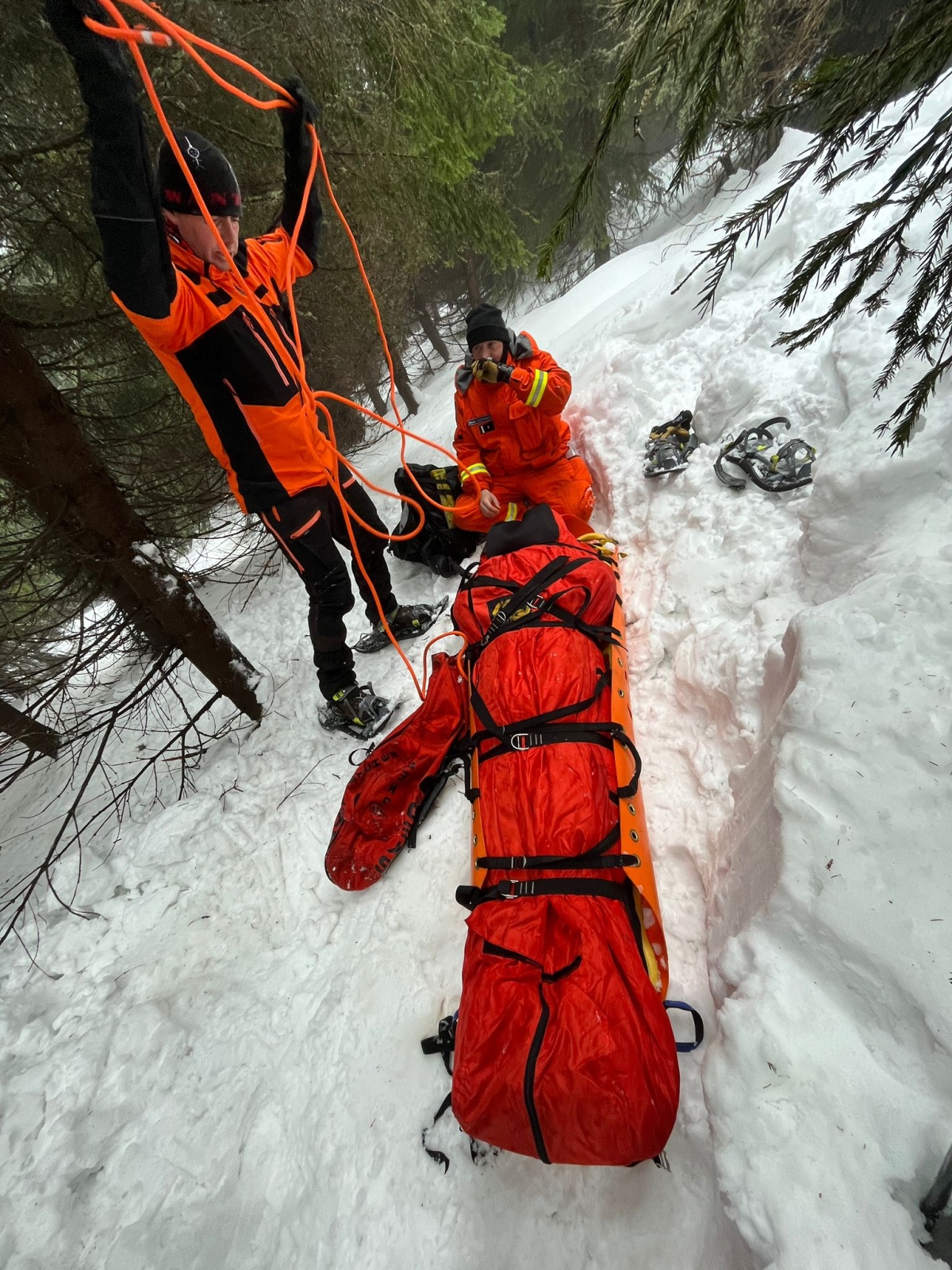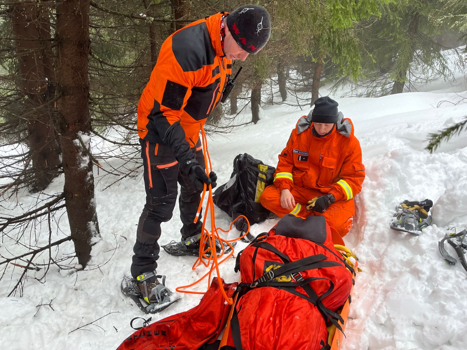 Po ubytování se hasiči nejdříve teoreticky seznámili s vybavením nezbytným pro bezpečný pohyb v zimním prostředí, jehož základem je takzvaná svatá trojice – lavinový vyhledávač (pípák), sonda a lopata. Důležitým bodem byly informace o působení chladného počasí na fyziologii člověka s důrazem na volbu správného oblečení zachránců a možnosti zajištění tepelného komfortu zachraňované osobě.