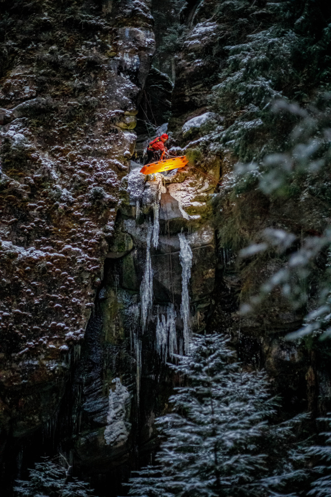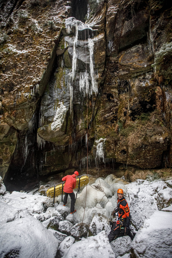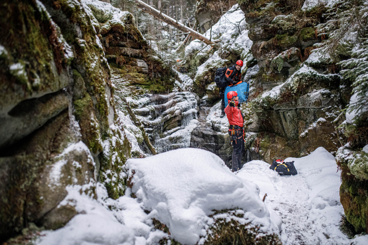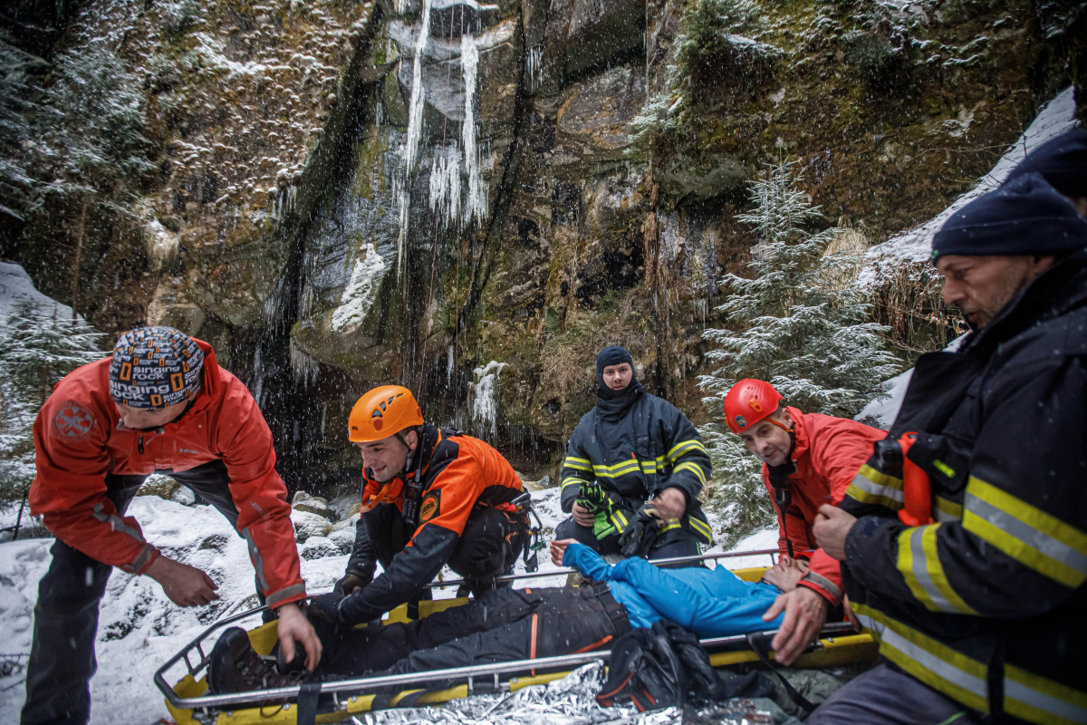 V lokalitě Vlčí rokle se uskutečnil výcvik, který byl tematicky zaměřen právě na krizové situace, do kterých se mohou návštěvníci zimních skal dostat. Při reálném zásahu se takové akce účastní více záchranných složek. Ty se musí mezi sebou koordinovat, a to v terénu, kde často není signál ani pro telefony, ani vysílačky. Při zásazích ve skalách většinou spolupracují profesionální a dobrovolní hasiči, členové Skalní záchranné služby, vše v kooperaci se zdravotnickou záchrannou službou a Policií ČR.