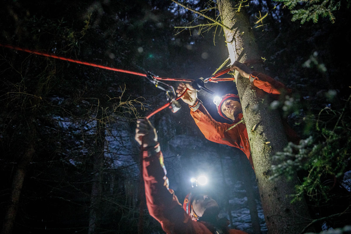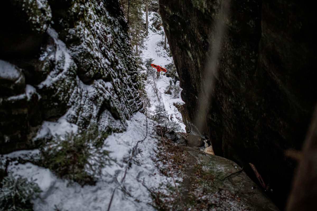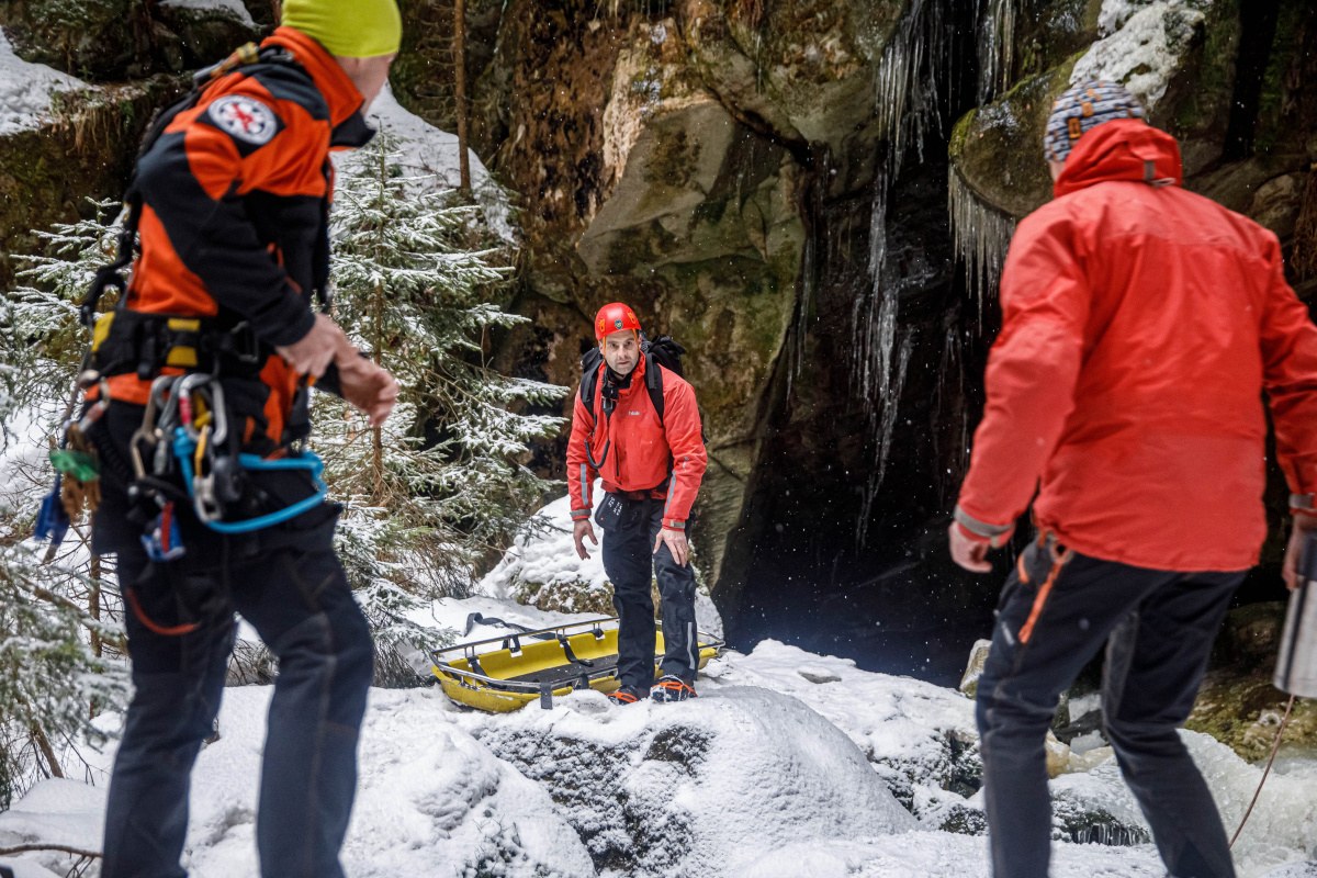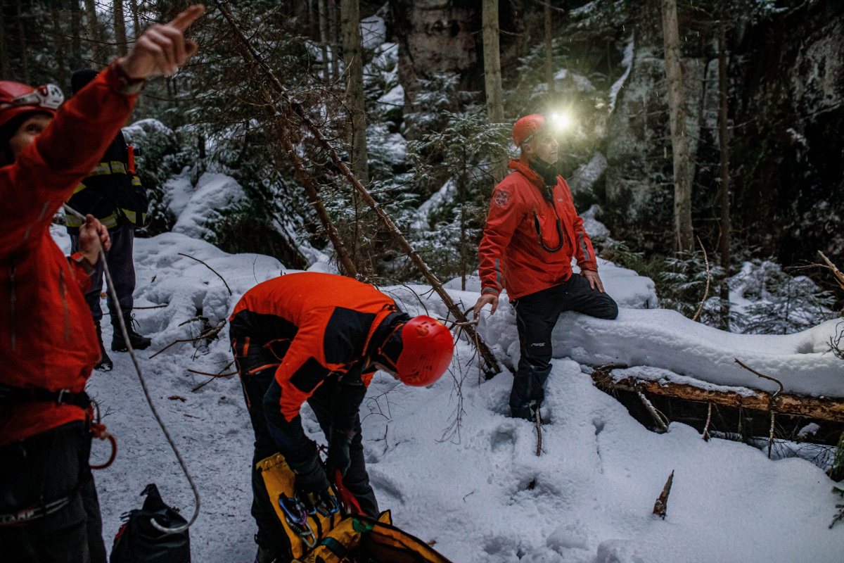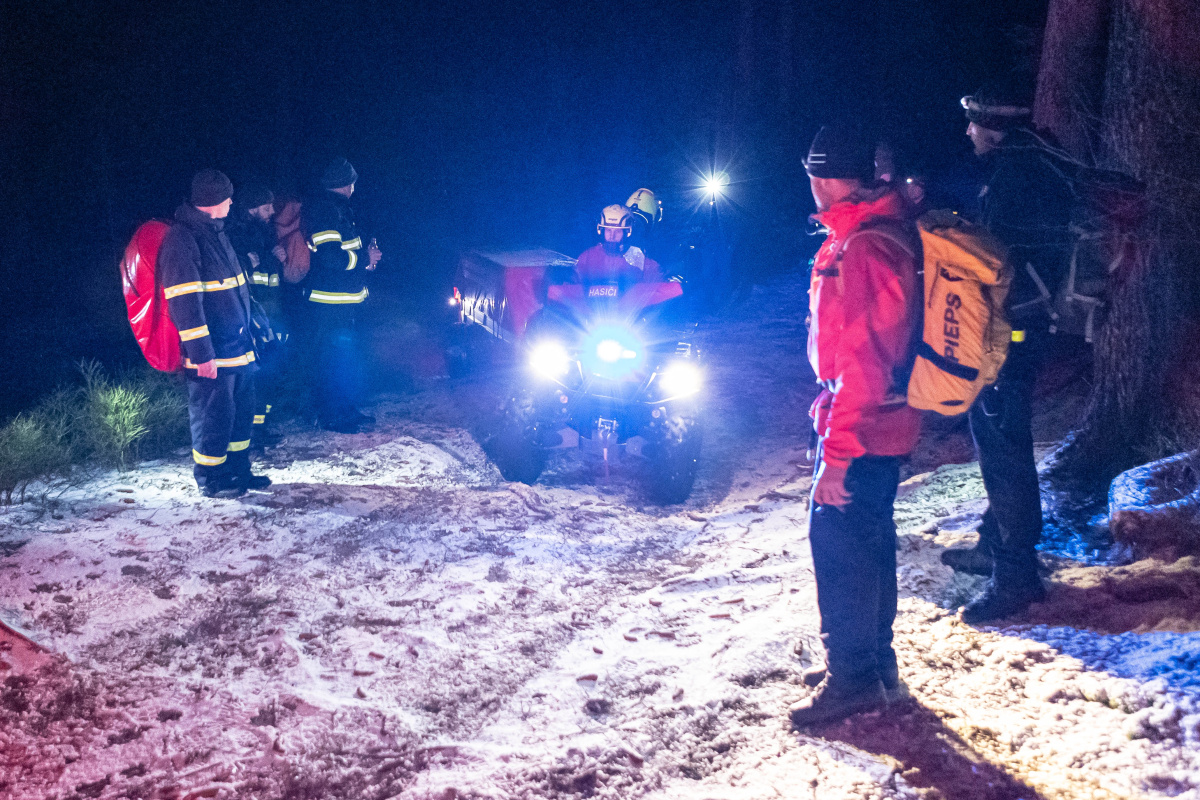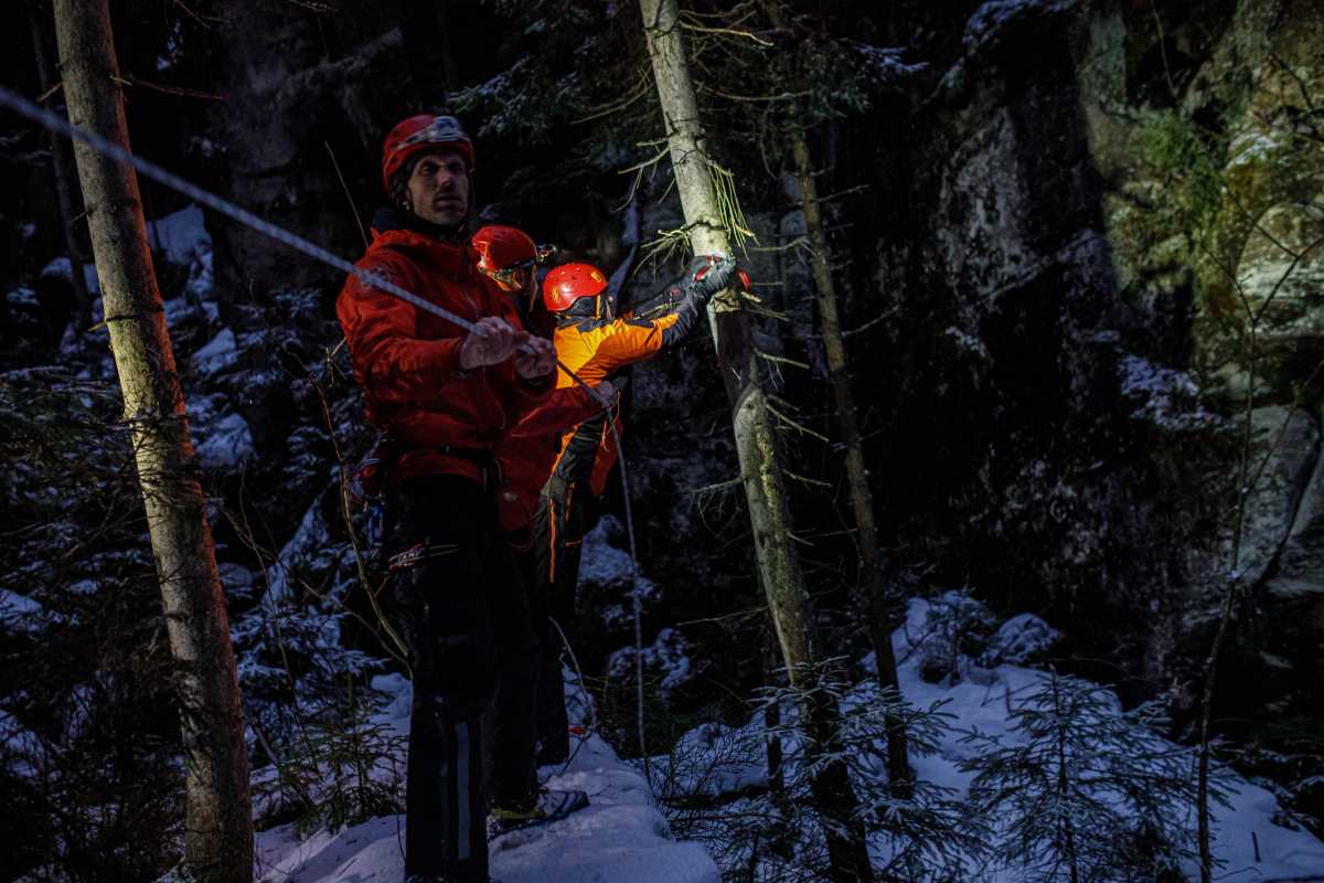 "Výcvik měl co nejvíce kopírovat reálný zásah. To znamená vyhledat terénu zraněnou osobu, která nemá telefonní signál, nemůže ani jít, protože uklouzla do strže a je podchlazená. Cvičili jsme v pozdějším odpoledni, kdy se začínalo stmívat a terén byl zledovatělý. Pokud nám zraněná osoba poskytne například souřadnice z aplikace Záchranka, může být takový zásah opravdu rychlý, to však nebyl případ cvičení. Abychom člověka zachránili, museli jsme propátrat modrou turistickou značku a případné odbočky," řekl k výcviku velitel čety ze stanice Náchod Josef Hlaváček.