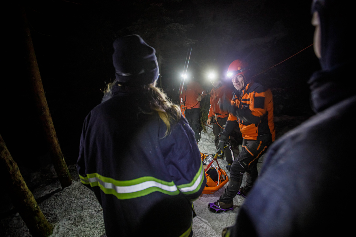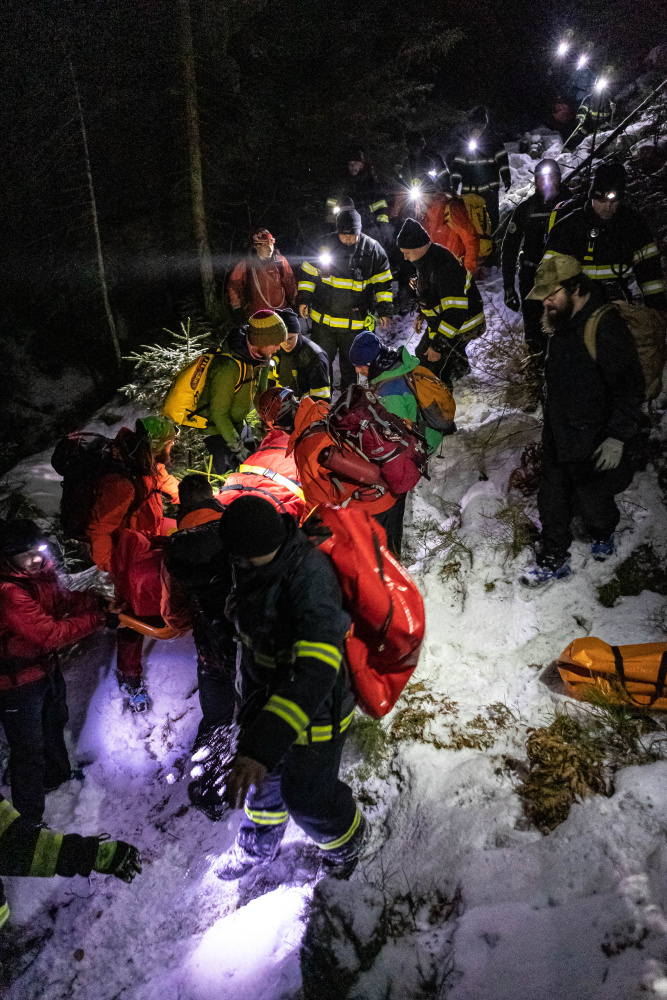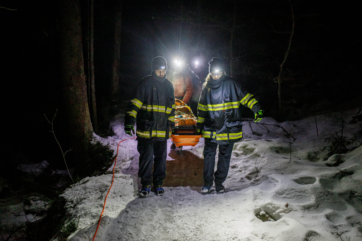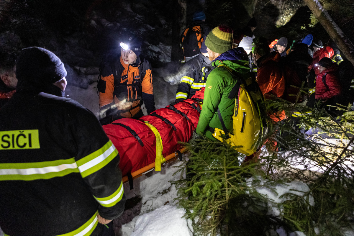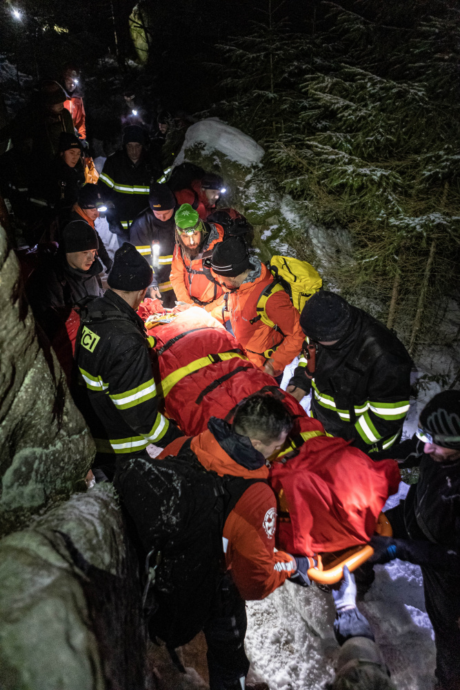 Po hodinovém pátrání zasahující složky našly postižené osoby a prováděly první pomoc. Nezbytnou součástí dobře provedeného zásahu je poskytnutí tepelného komfortu zraněnému, a následně pomocí nosítek a lanové techniky osobu vyprostit. Už padla tma, když záchranáři sváželi postižené osoby do míst dostupných pro další zdravotnickou péči a techniku.