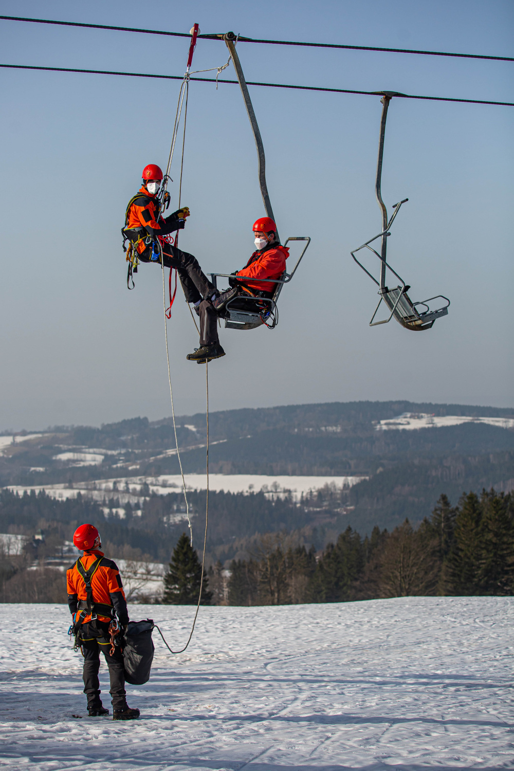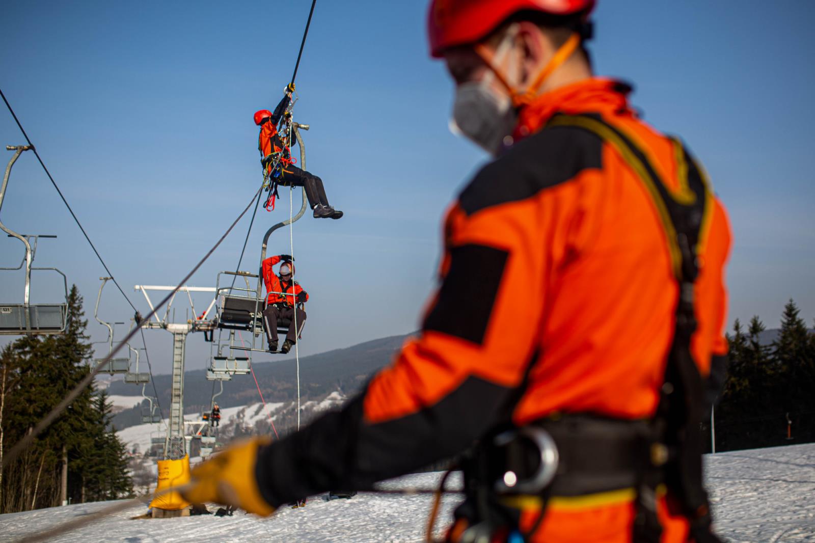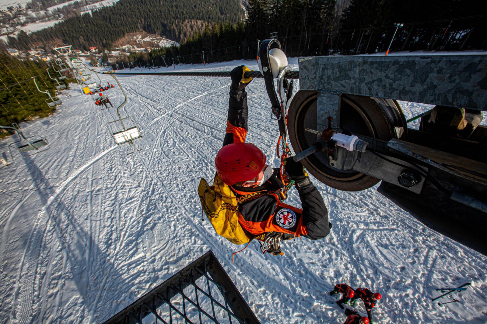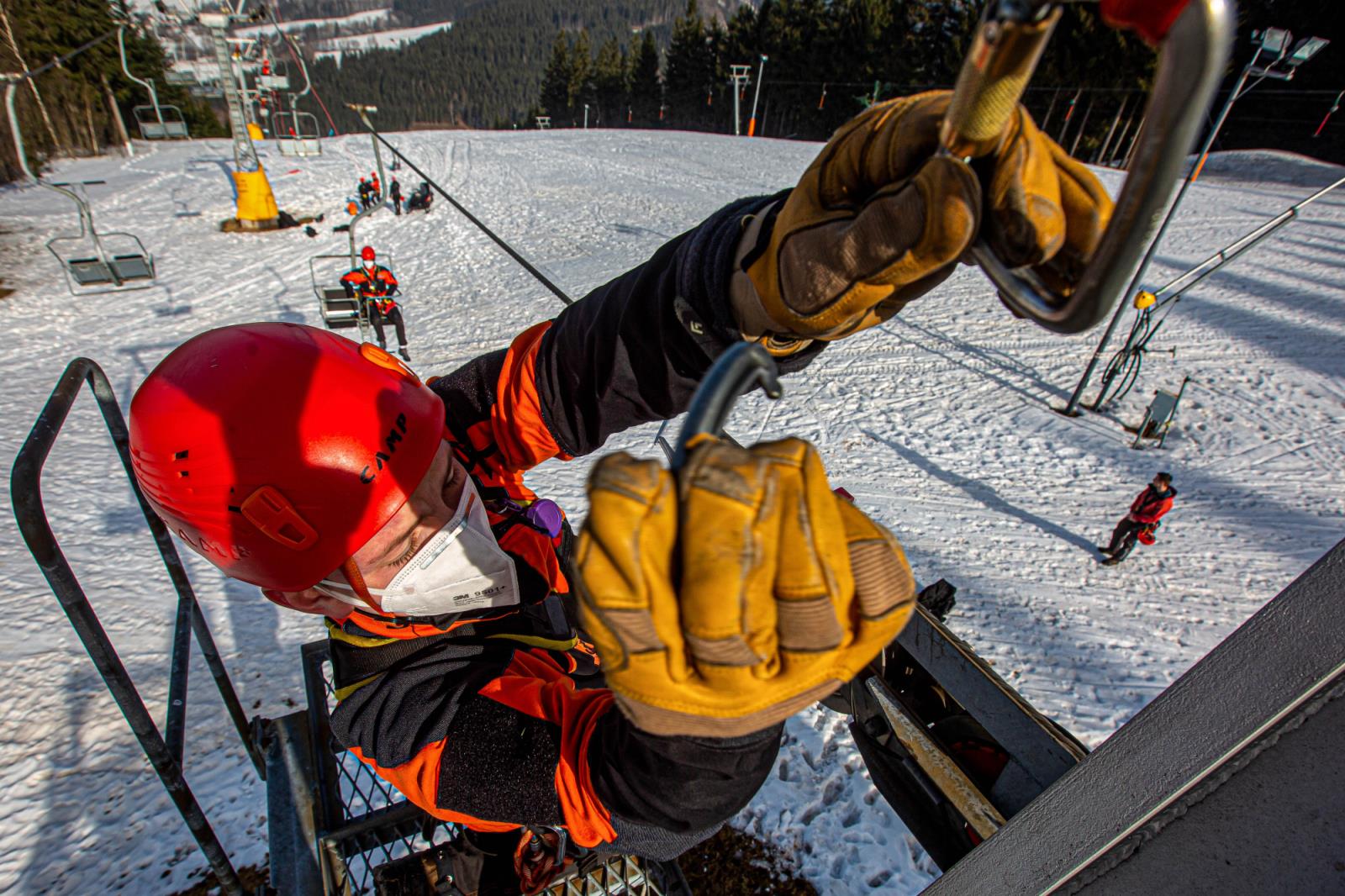 Ačkoliv letošní sezóna provozu skiareálů nepřála, ani letos nevynechali příslušníci HZS Královéhradeckého kraje pravidelný každoroční výcvik záchrany osob z lanovky. Ten letošní se uskutečnil koncem února na lanovce ve Skicentru Deštné v Orlických horách a absolvovali ho profesionální hasiči – lezci z územních odborů Rychnov nad Kněžnou, Náchod a Hradec Králové.