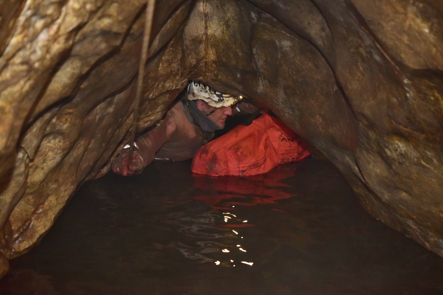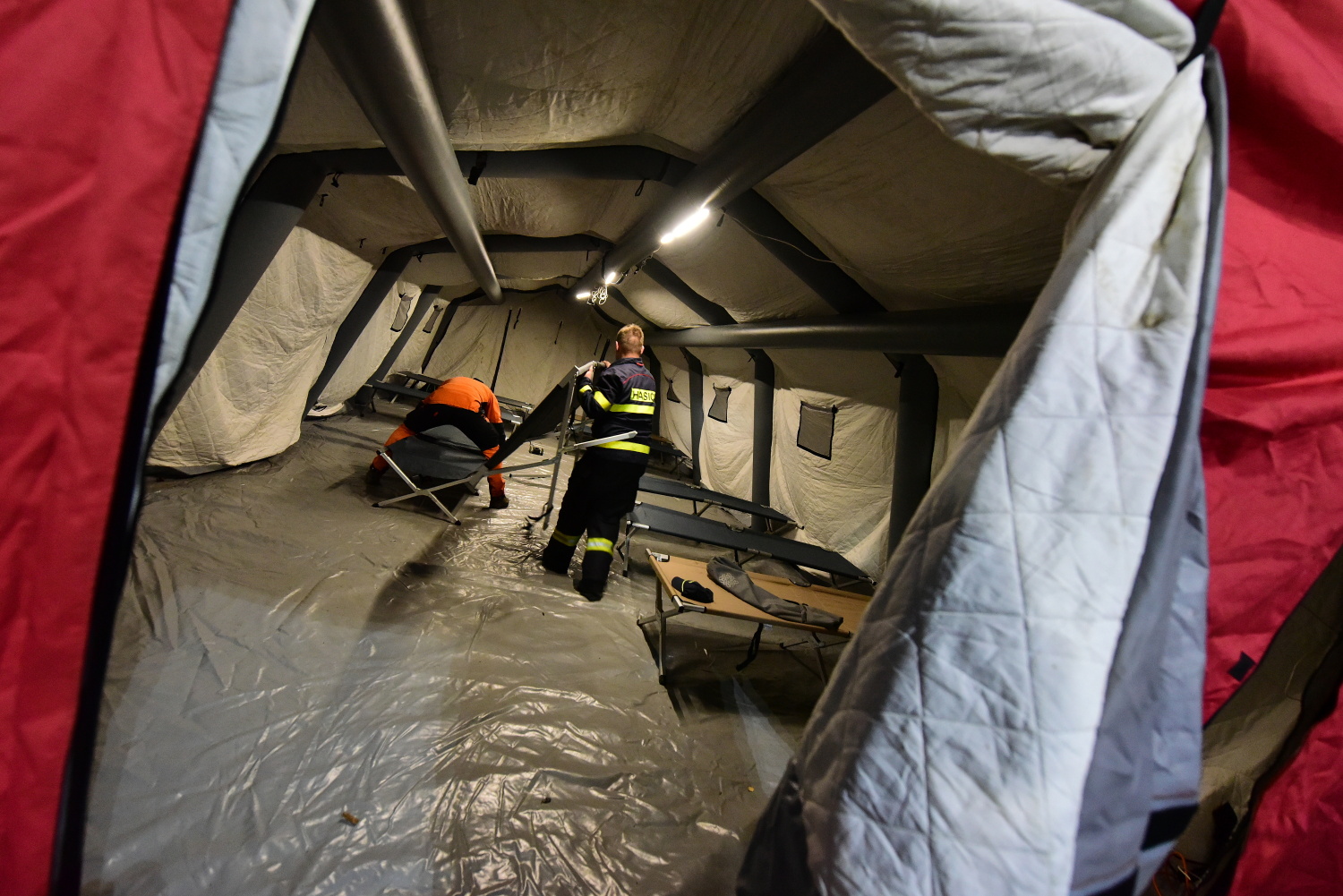 Záchranáři vytvořili u zraněného jeskyňáře zázemí v podobě stanu se zajištěným tepelným komfortem, kde mohl pod dohledem lékaře počkat, než byla připravená cesta na transport z jeskyně.