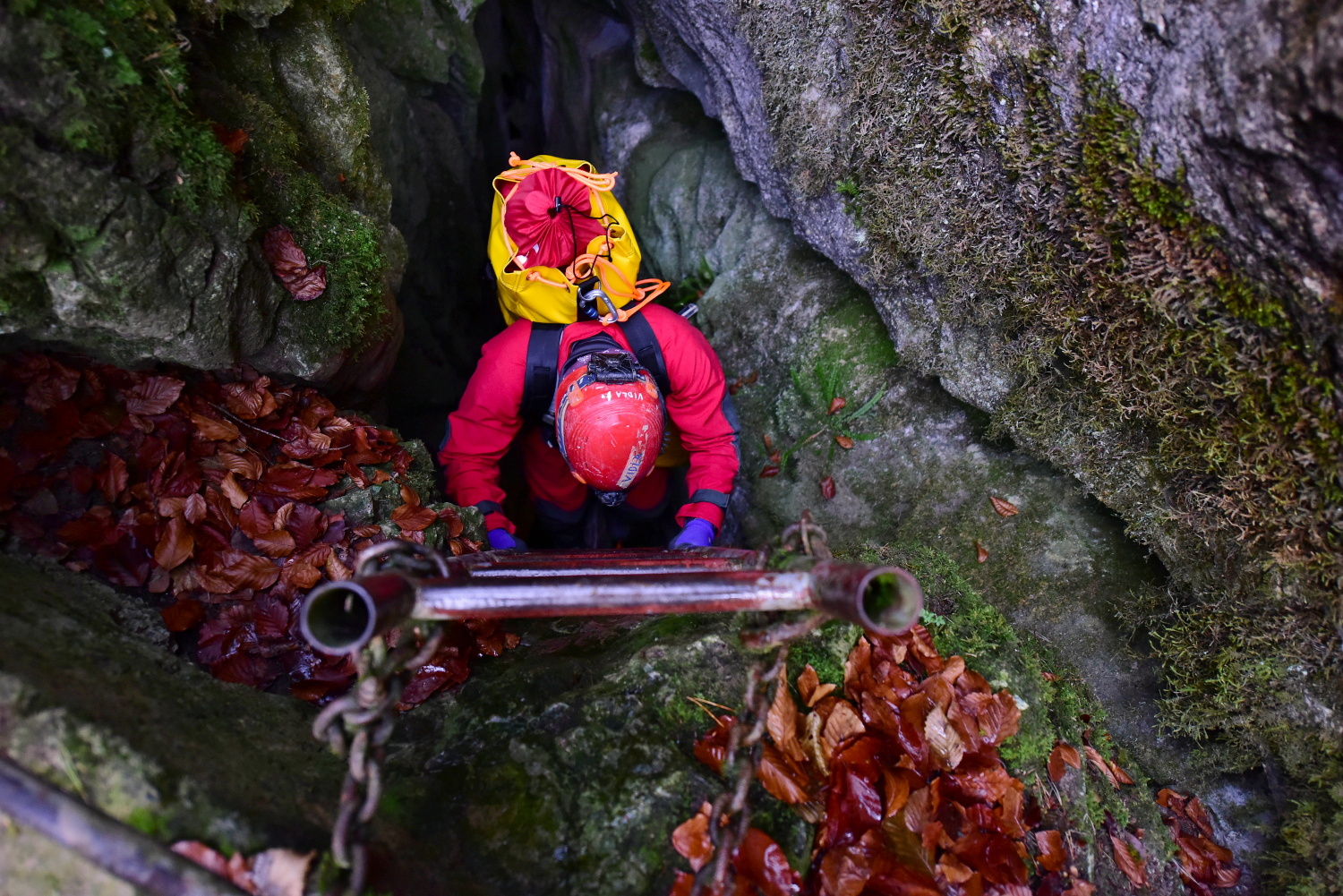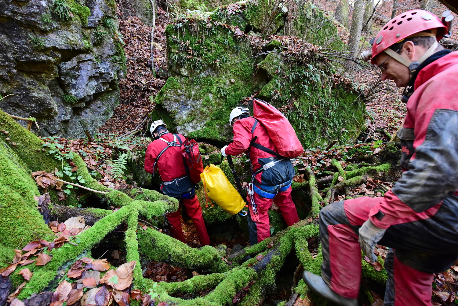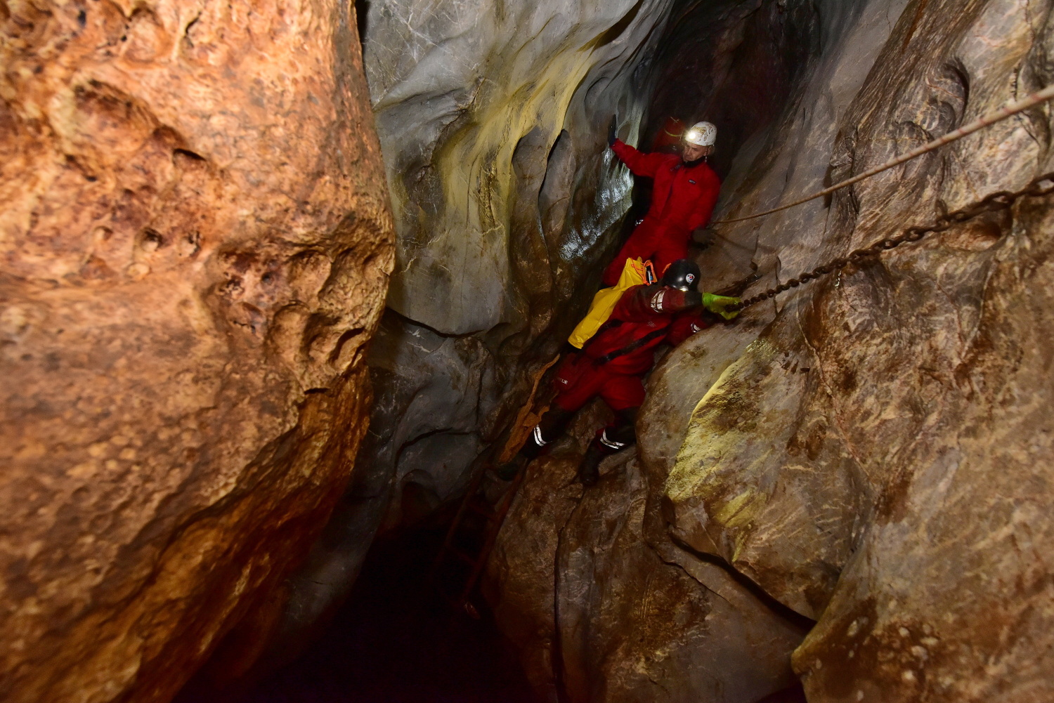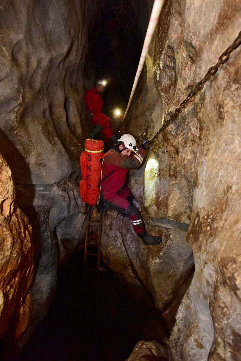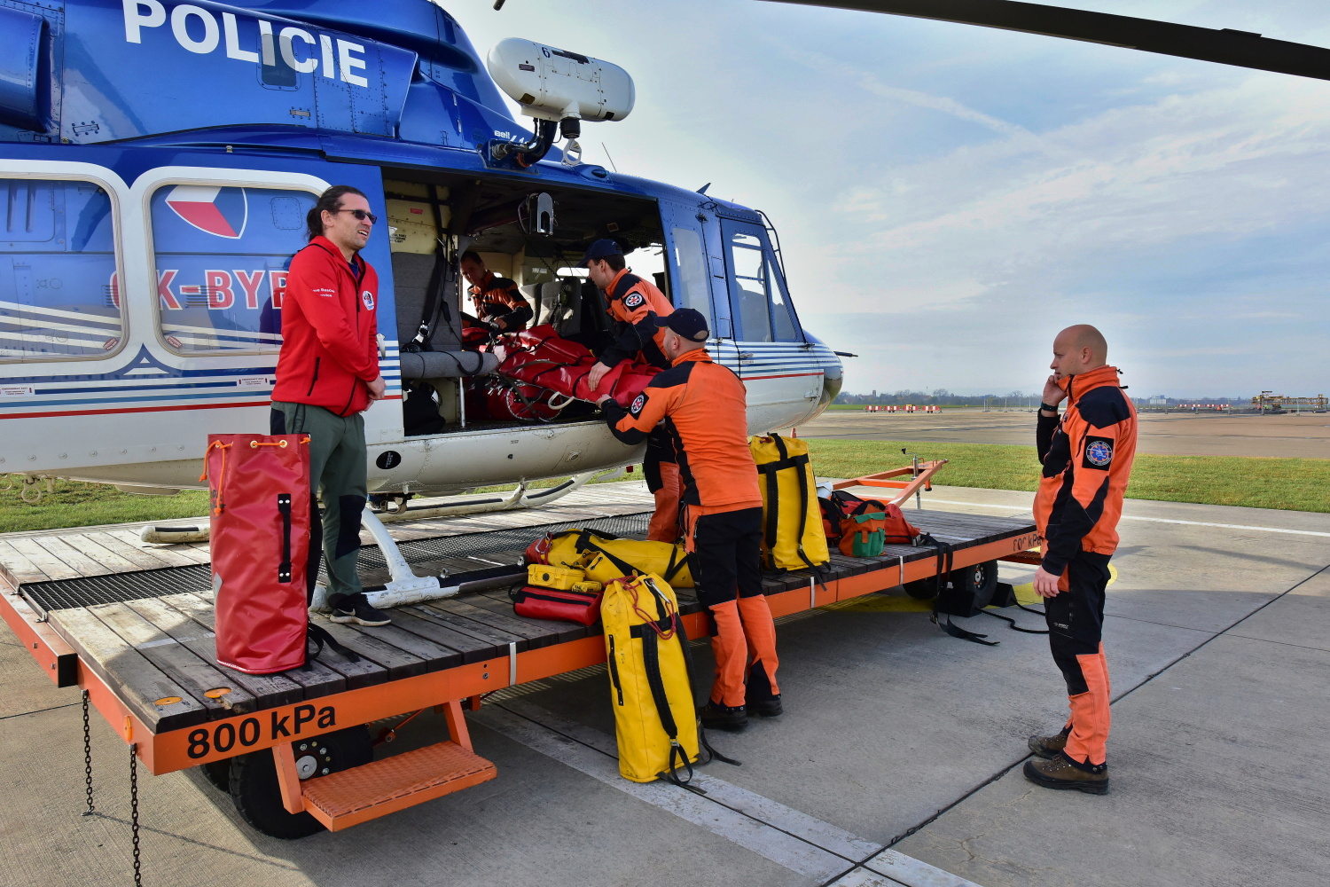V odpoledních hodinách dopravil vrtulník Policie ČR na místo události speleologa-lékaře, který se po vystrojení s další skupinou vydal do podzemí.