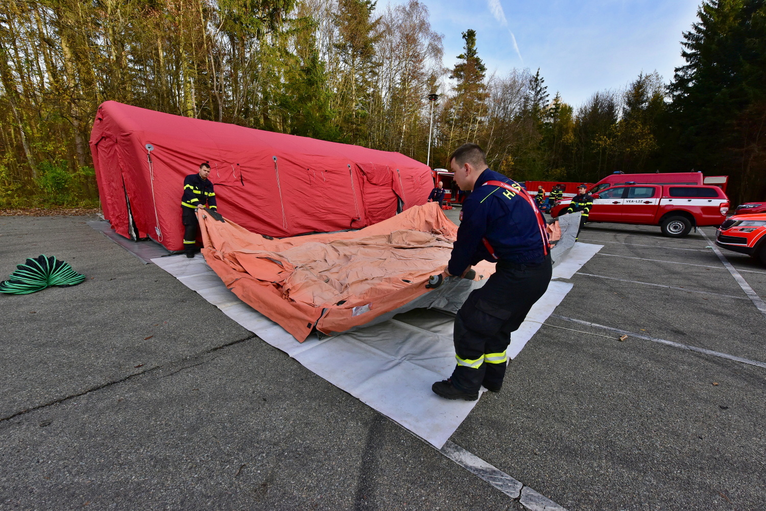 Odřad jihomoravských hasičů a speleozáchranářů je jediný svého druhu v České republice. Specializuje se na záchranu osob z jeskynních komplexů po celé republice. Cvičení se odehrávalo na Blanensku, ale v rámci přesunů techniky a záchranářů simulovalo událost v Libereckém kraji.