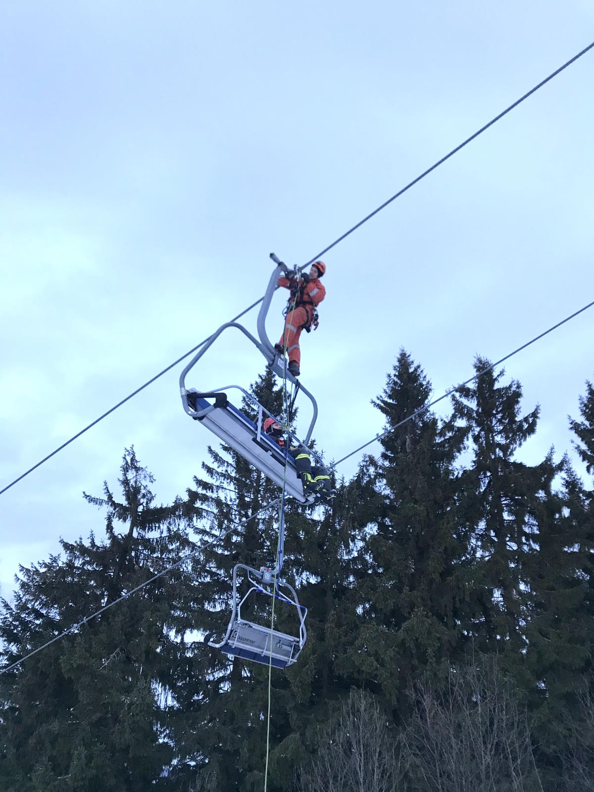Hasiči si tak měli možnost vyzkoušet použití různých lanových technik při zdolávání prostoru mezi sedačkami a následné spouštění figurantů na zem, kde byla prochladlým osobám poskytnuta první pomoc a tepelný komfort.