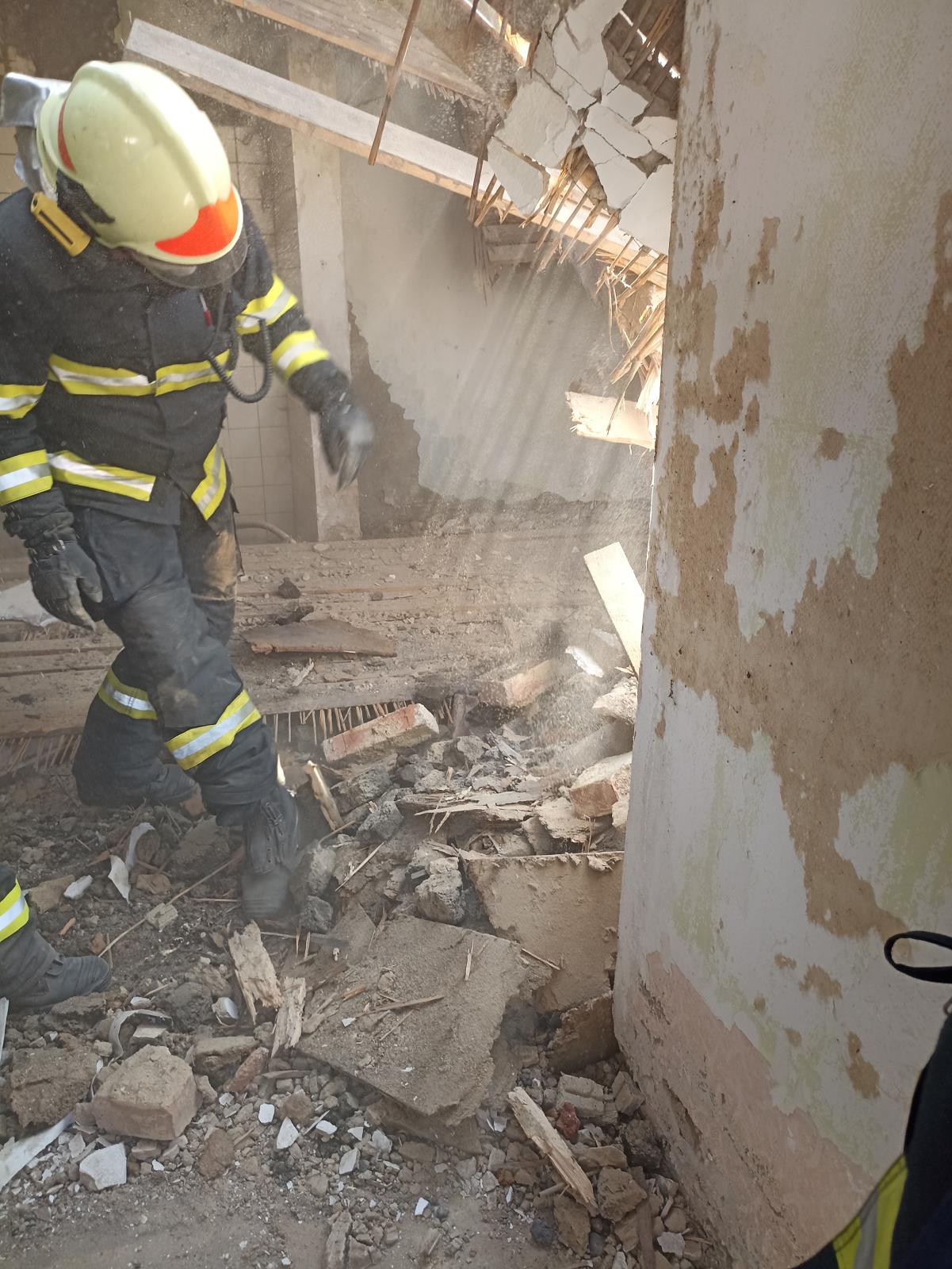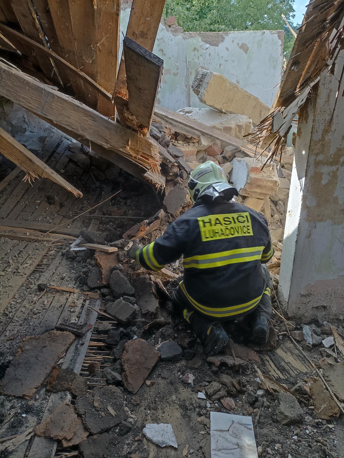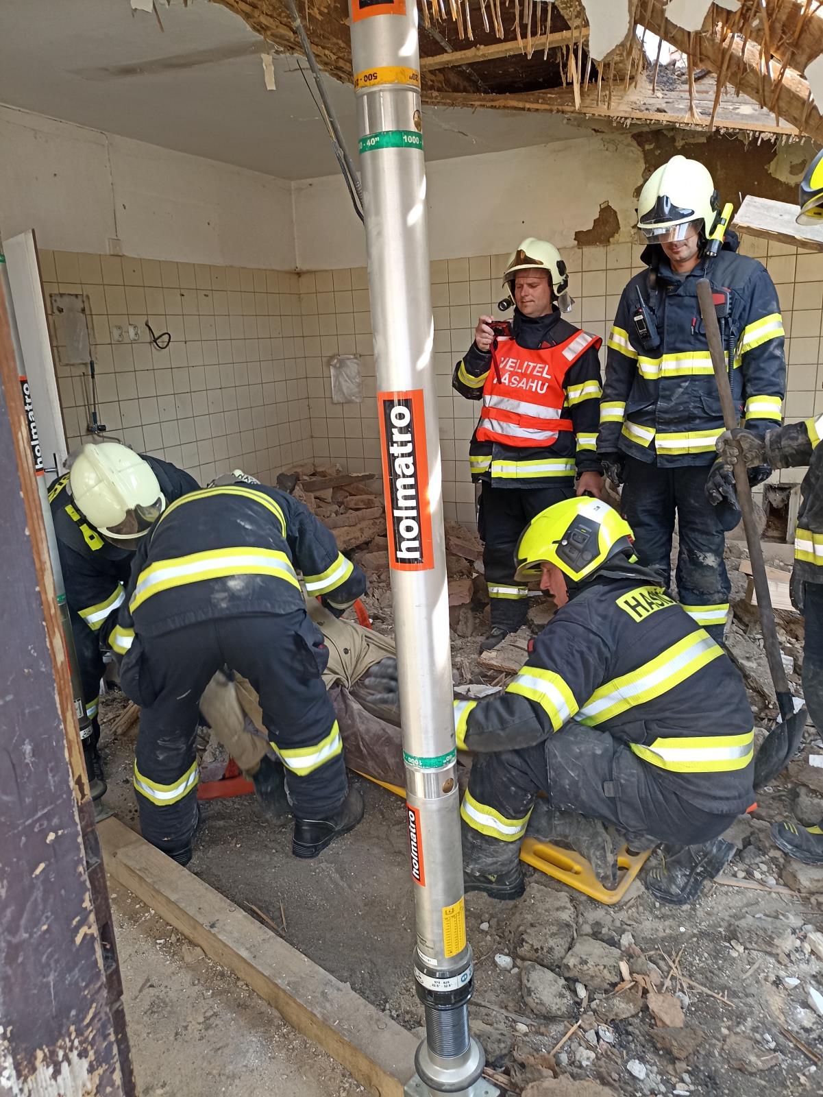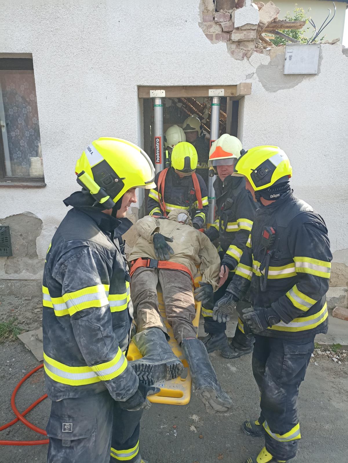 Dále provedli stabilizaci objektu tak, aby mohli vstoupit dovnitř, kde se měla nacházet jedna osoba. Po vstupu do domu zahájili odstraňování sutin, pod kterými brzy našli zraněného muže, zaklíněného pod konstrukcemi. Dělníka vyprostili a vynesli ven. Muž však utrpěl zranění neslučitelná se životem a lékař u něj konstatoval smrt.