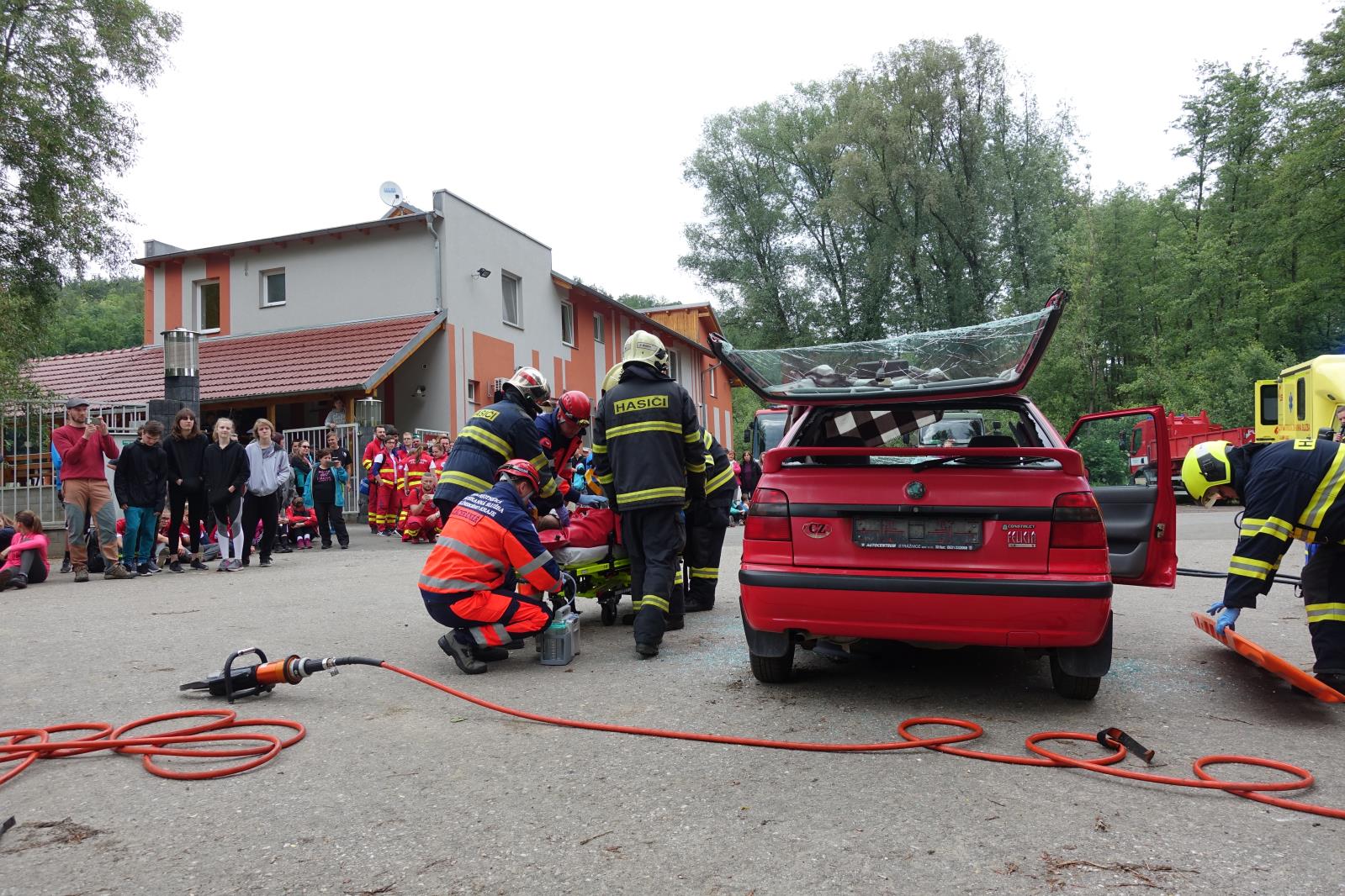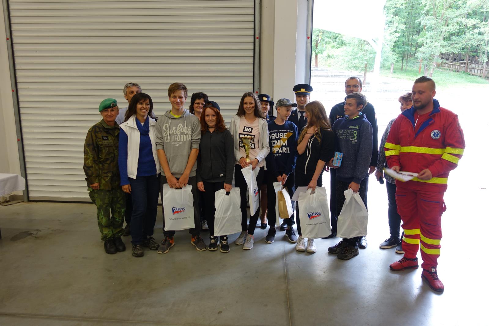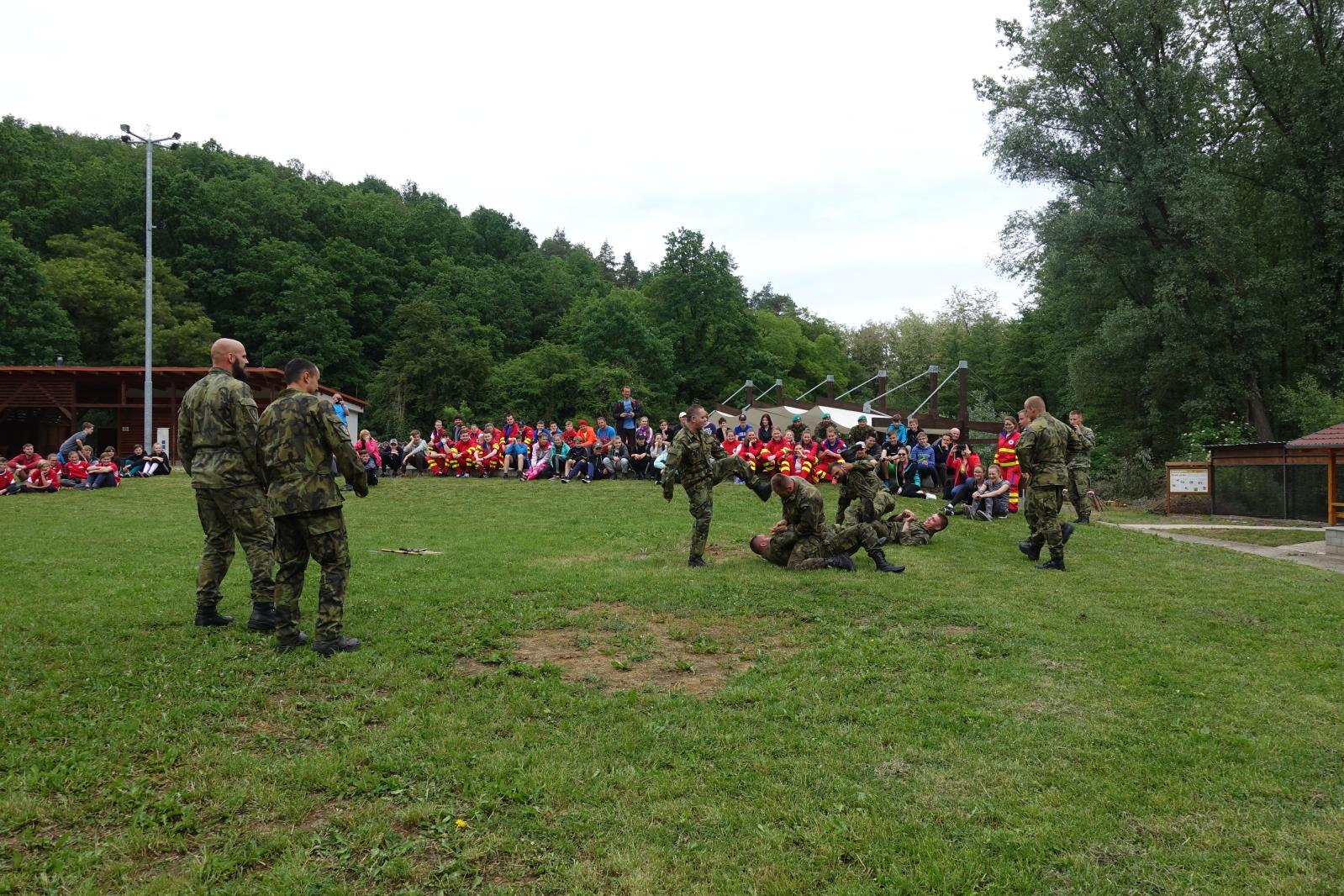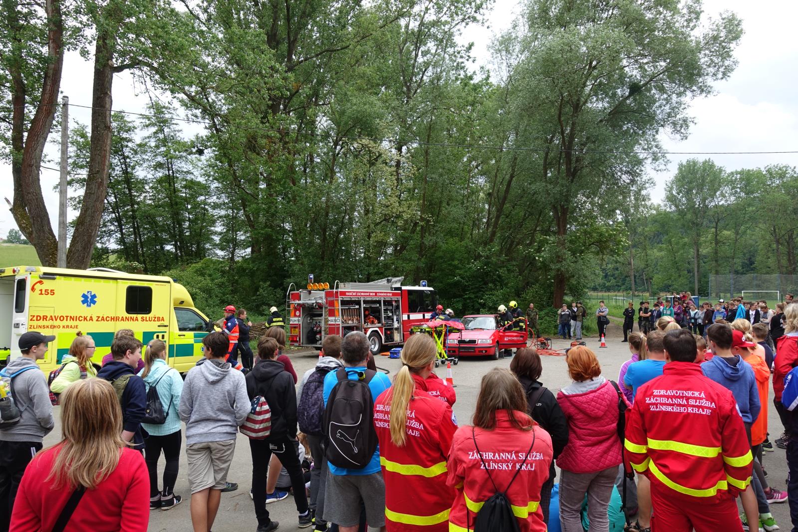 Po ukončení soutěžní části celého dne následovaly ukázky společného zásahu profesionálních hasičů ze stanice Uherské Hradiště a zdravotnických záchranářů u simulované dopravní nehody a vojáci předvedli techniky bojového umění MUSADO.