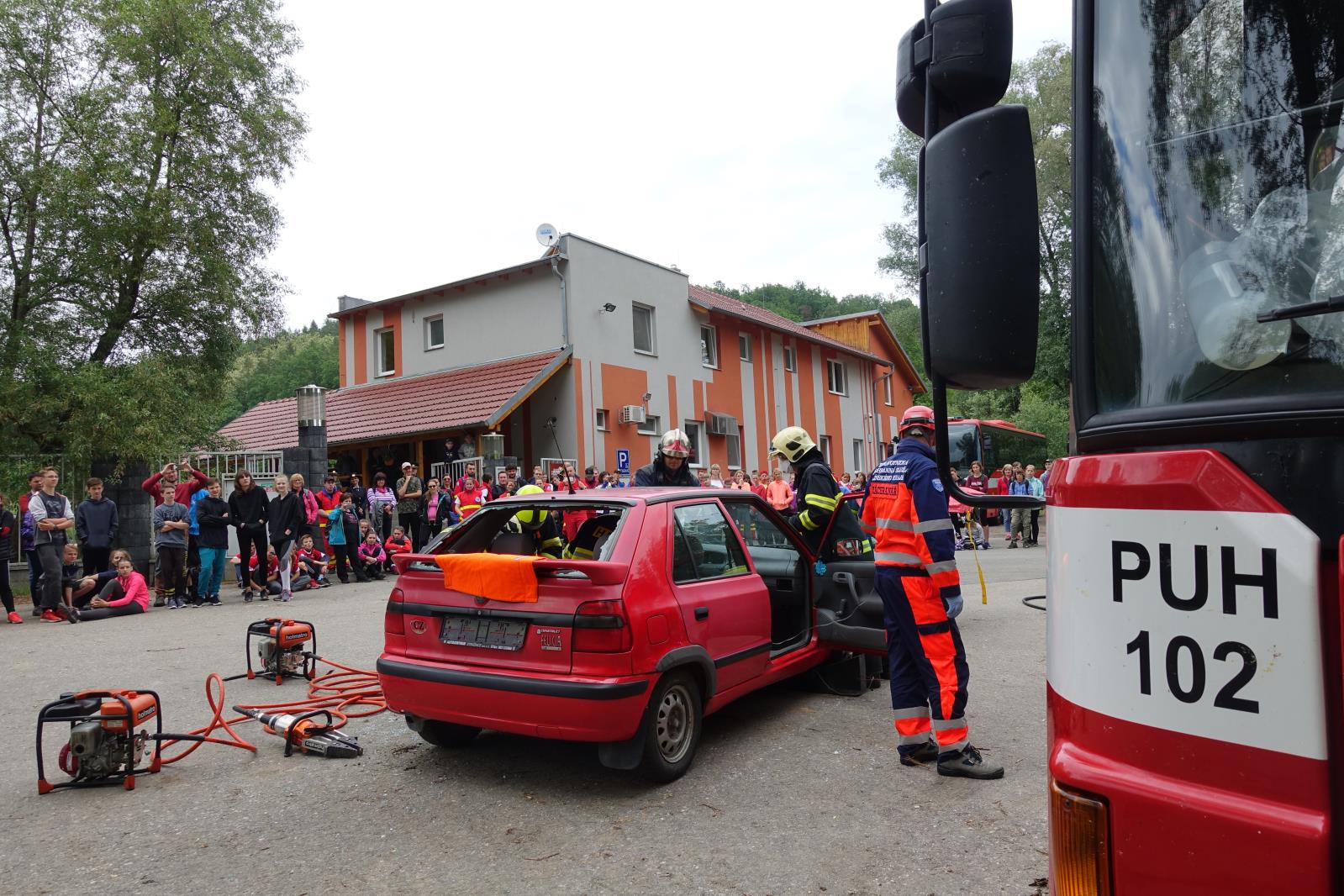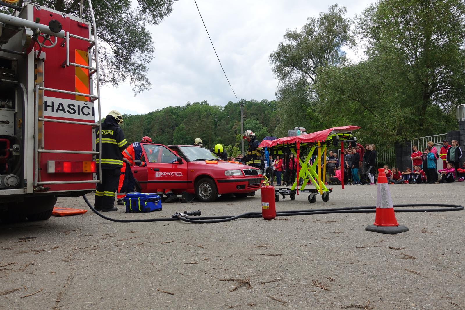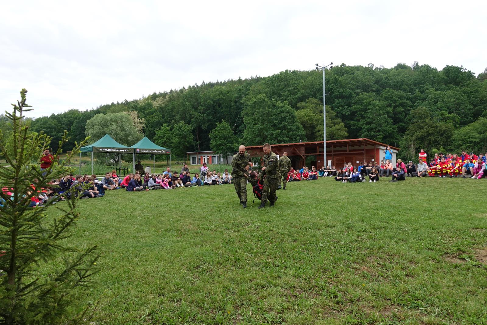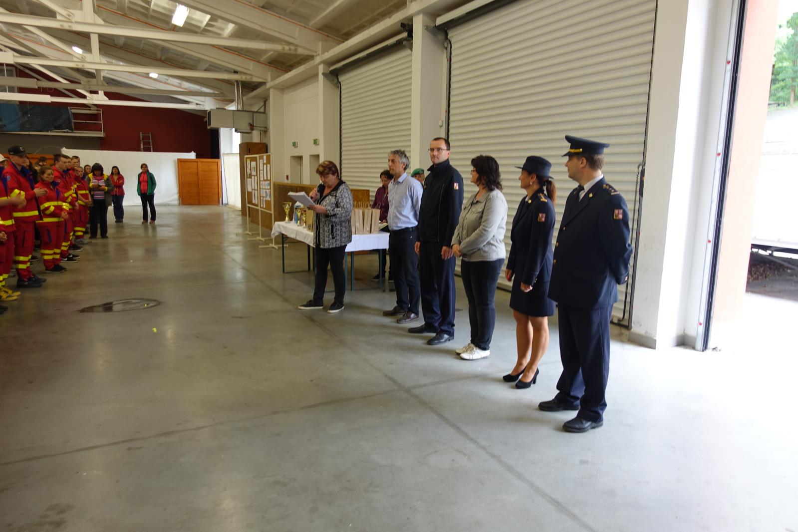 Po ukončení soutěžní části celého dne následovaly ukázky společného zásahu profesionálních hasičů ze stanice Uherské Hradiště a zdravotnických záchranářů u simulované dopravní nehody a vojáci předvedli techniky bojového umění MUSADO.
