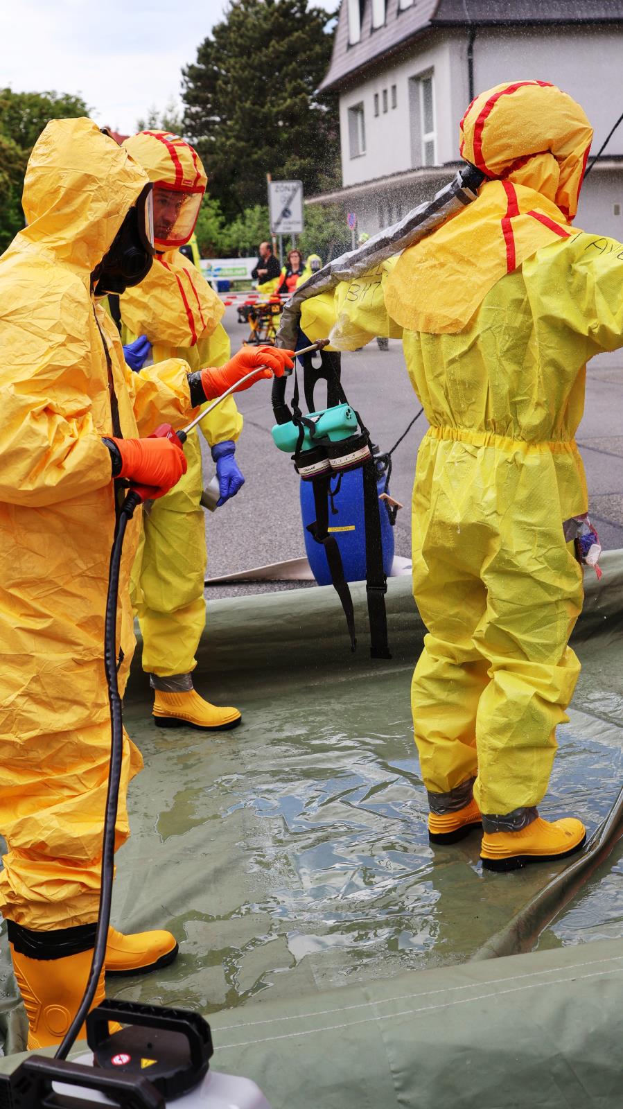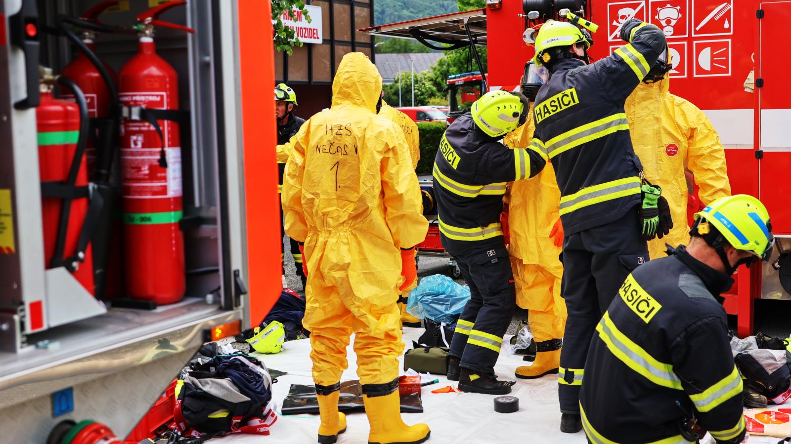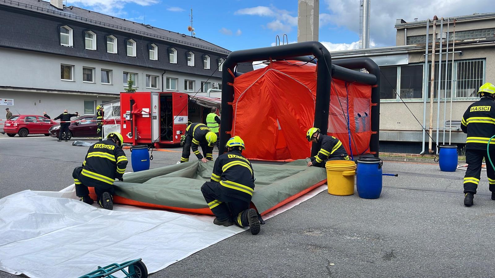 Vedle toho se na místě rozbíhá činnost dalších specializovaných týmů. Nasazena je nová technika včetně kontejneru SDO-4, který slouží k dekontaminaci osob, a rovněž chemický i týlový kontejner, zajišťující podporu zásahu z technického a zázemního hlediska.