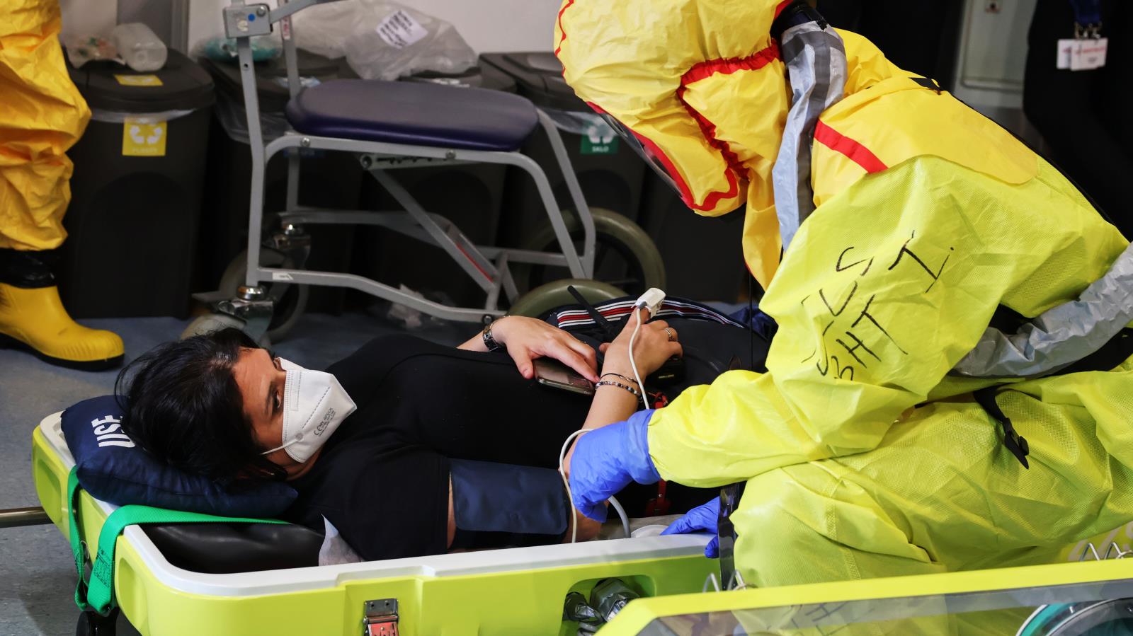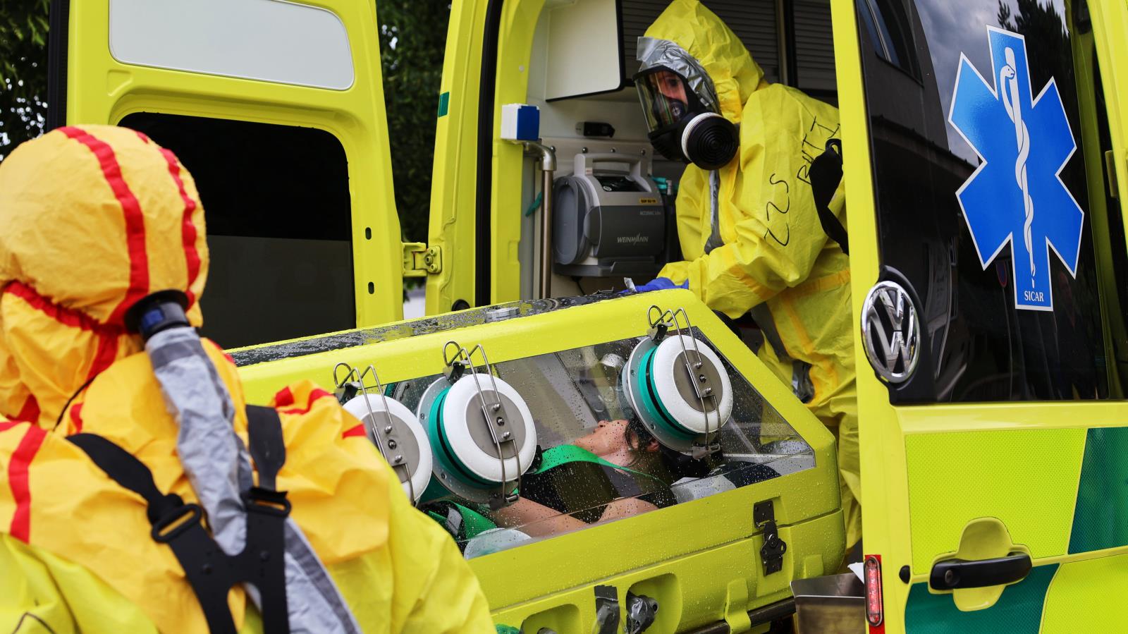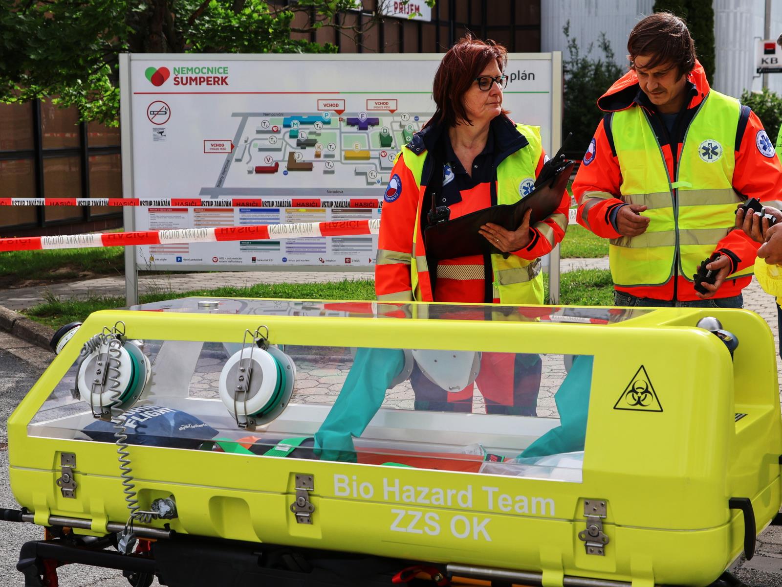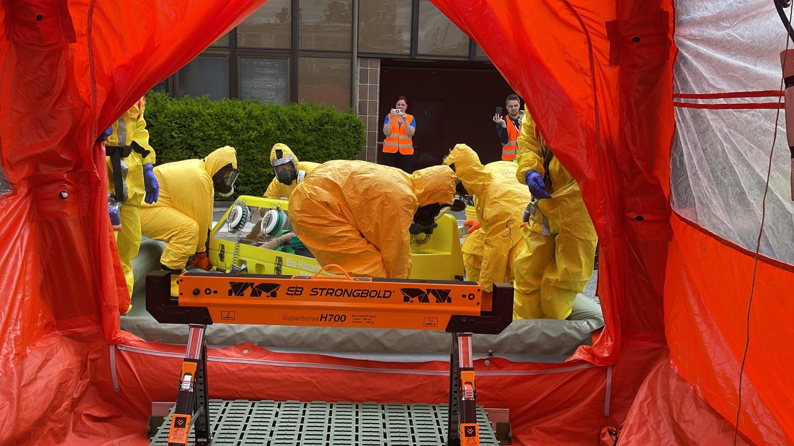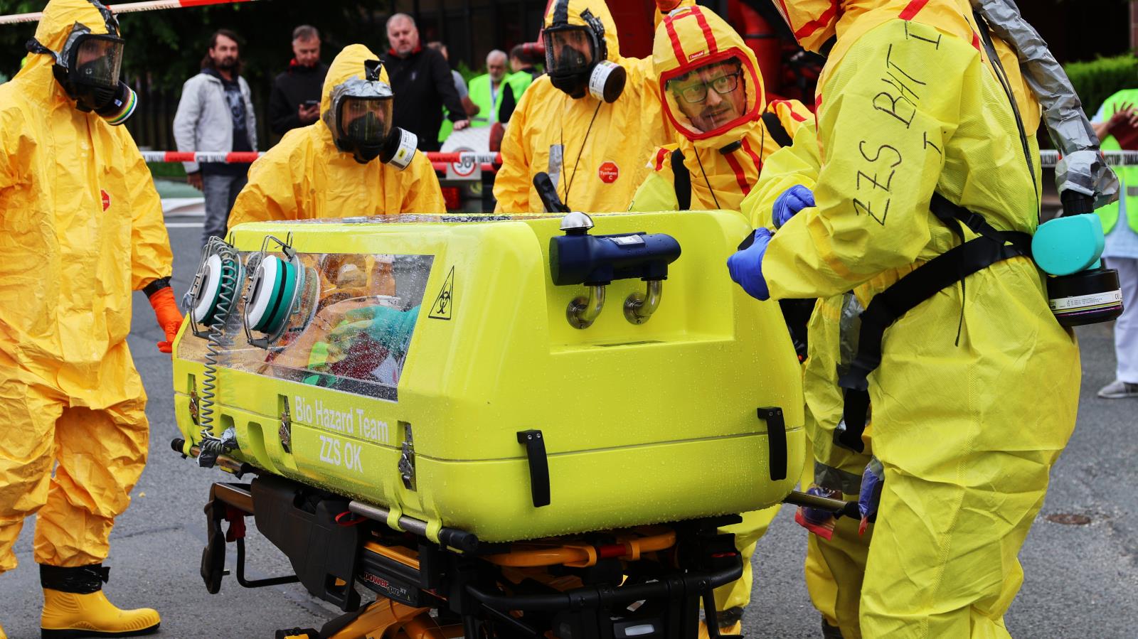 Na scénu přichází speciální Biohazard tým zdravotnické záchranné služby. Vysoce vyškolený personál v ochranných oblecích s filtračními maskami zajišťuje nakaženého pacienta do izolačního transportního prostředku TIPO – speciálního zařízení určeného k přepravě vysoce infekčních osob. Simulovaný převoz směřuje do pražské Fakultní nemocnice Bulovka, kde by si v reálném případě pacienta převzalo Národní centrum pro izolaci a léčbu vysoce nebezpečných nákaz.