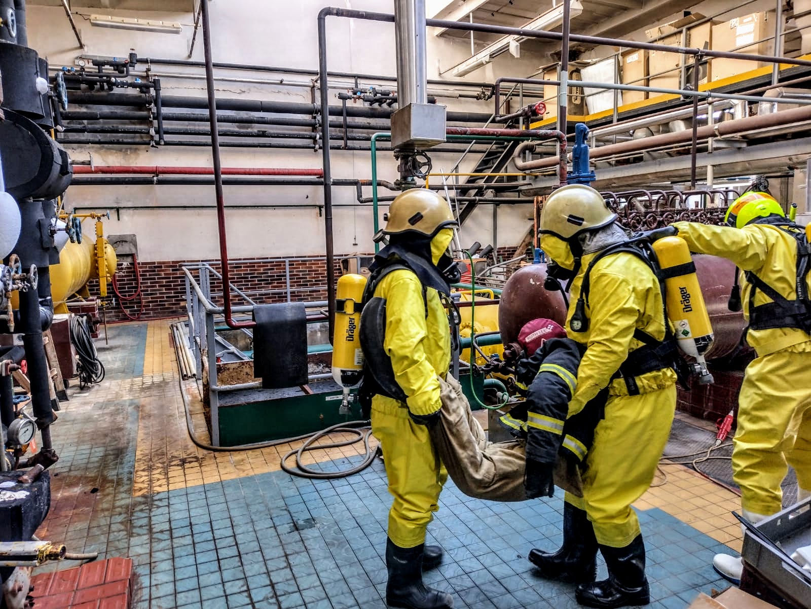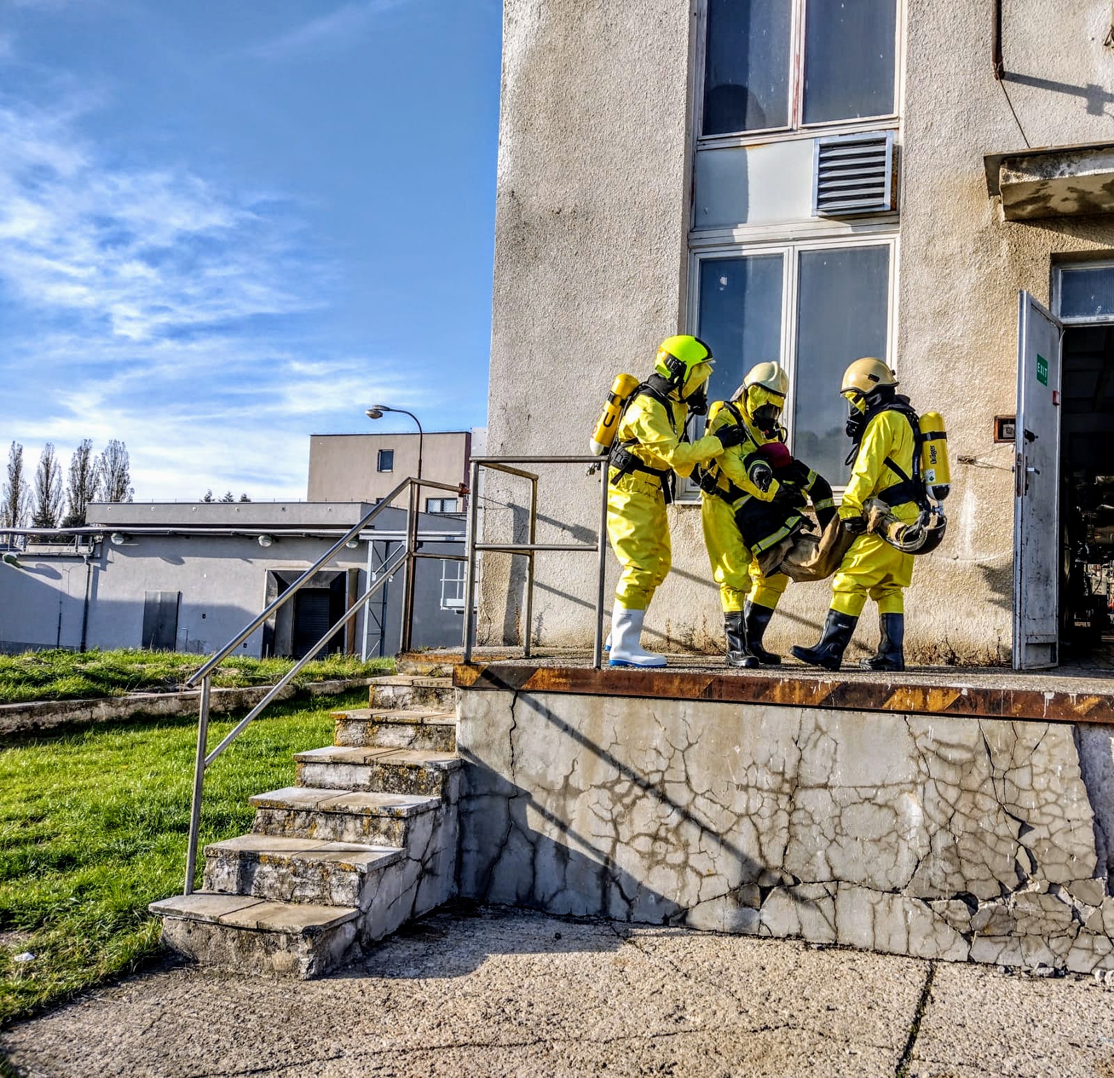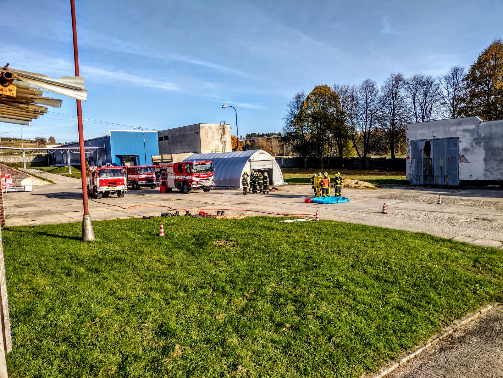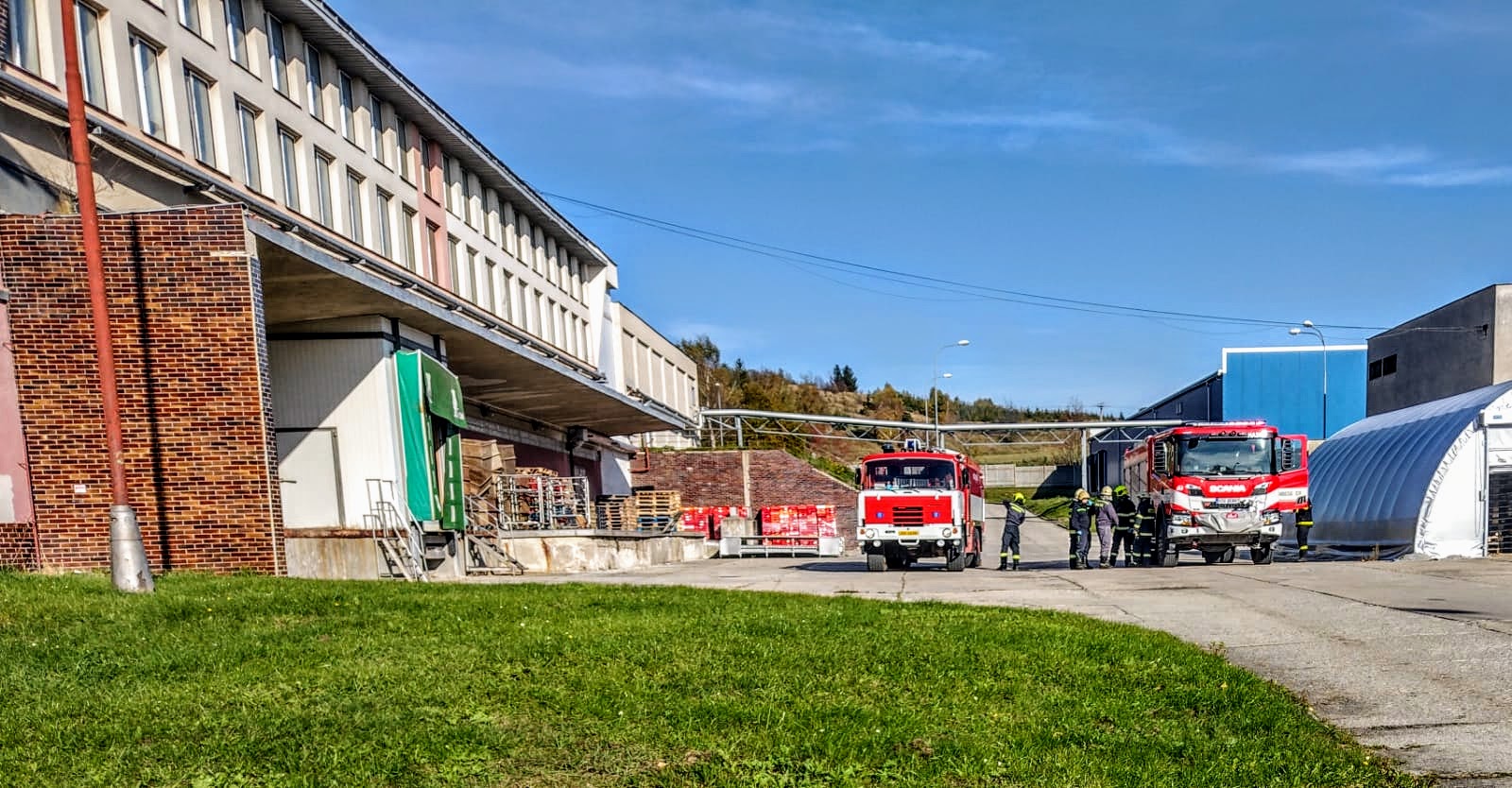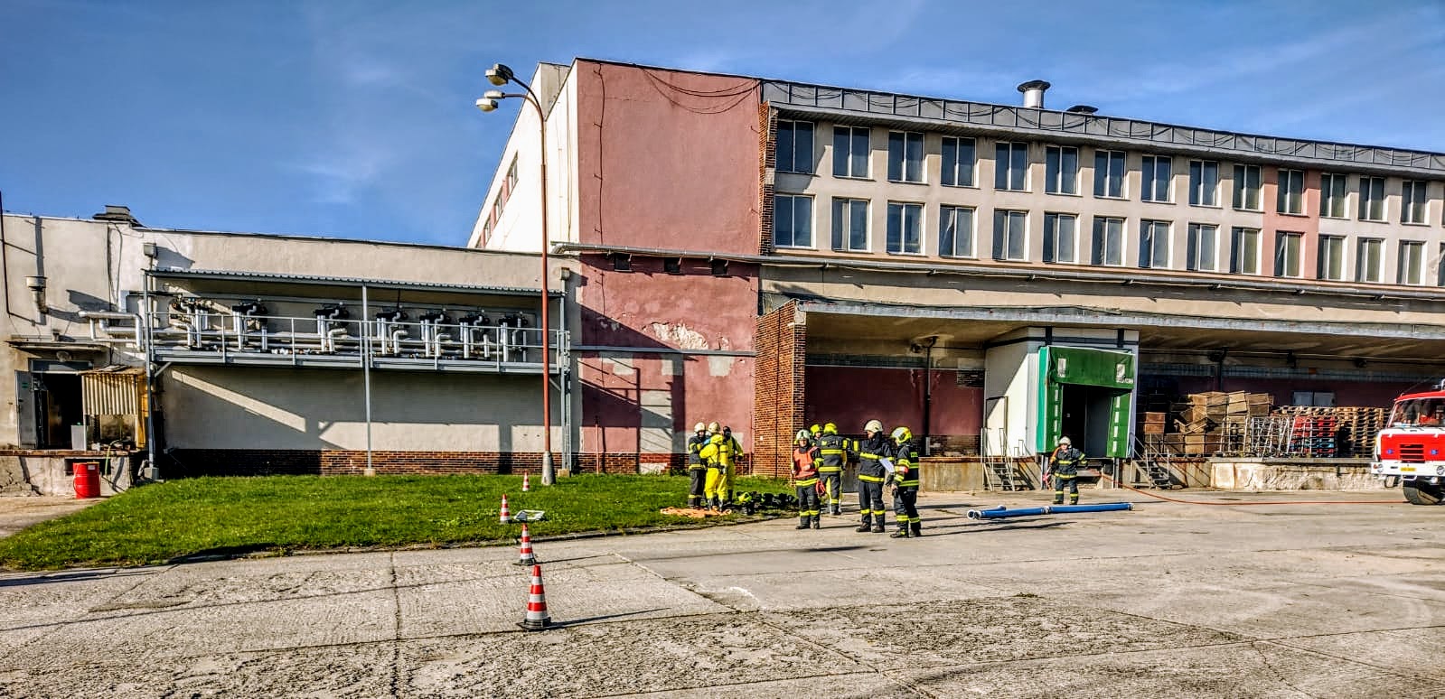 Zásah na únik čpavku ve strojovně Masozávodu Krahulčí - taktické cvičení