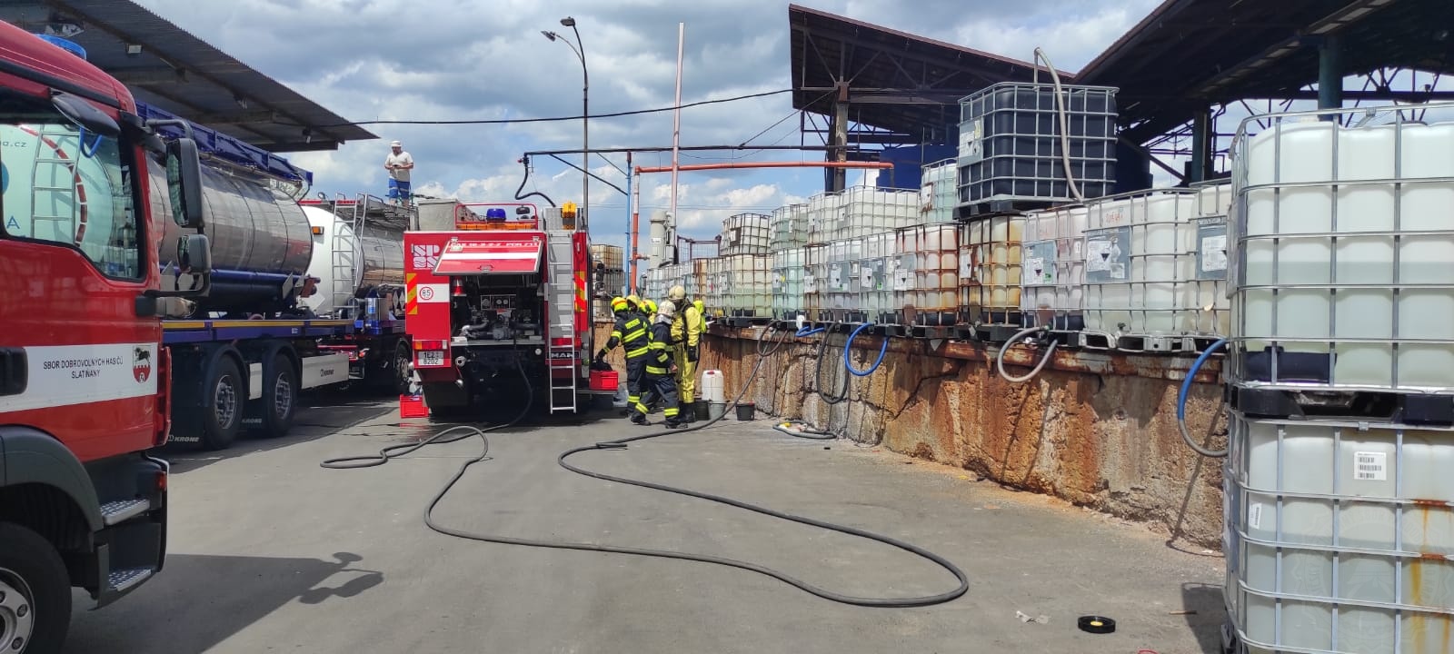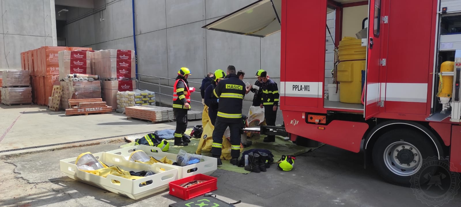 Velitel zásahu spolupracoval s odbornými pracovníky firmy, kteří měli znalosti o objektu i dalších skladovaných chemických látkách.