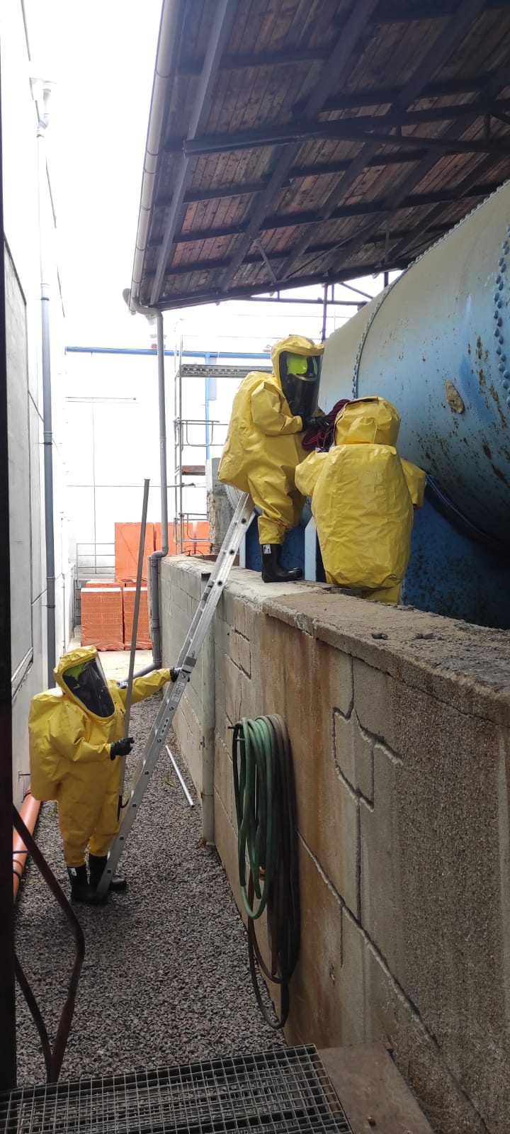 Jednotky po svém příjezdu ihned provedly průzkum s vytyčením tzv. nebezpečné zóny. Simulovaný zásah byl veden v dýchacích přístrojích a přetlakových protichemických oblecích. Dále bylo nutné zatmelit prasklinu v zásobníku. Postavena musela být dekontaminační zóna s dekontaminační sprchou k očistě zasažených hasičů nebezpečnou látkou.