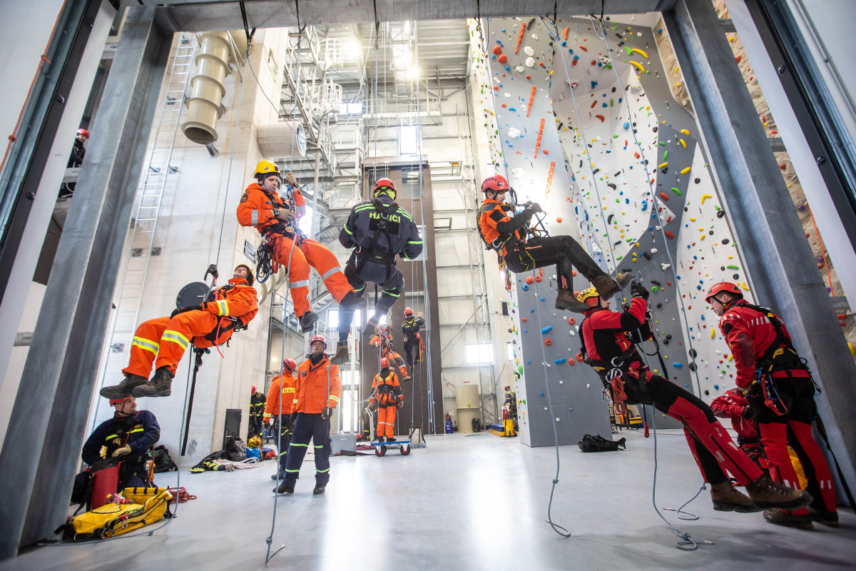 Letos na jaře byl otevřen ve Velkém Poříčí unikátní lezecký polygon HZS Královéhradeckého kraje pro činnosti ve výšce a nad volnou hloubkou. Uvnitř je kromě lezeckých stěn i speciální vybavení pro simulace zásahů ve specifických podmínkách – cvičná studniční šachta nebo polygony stísněných prostor.