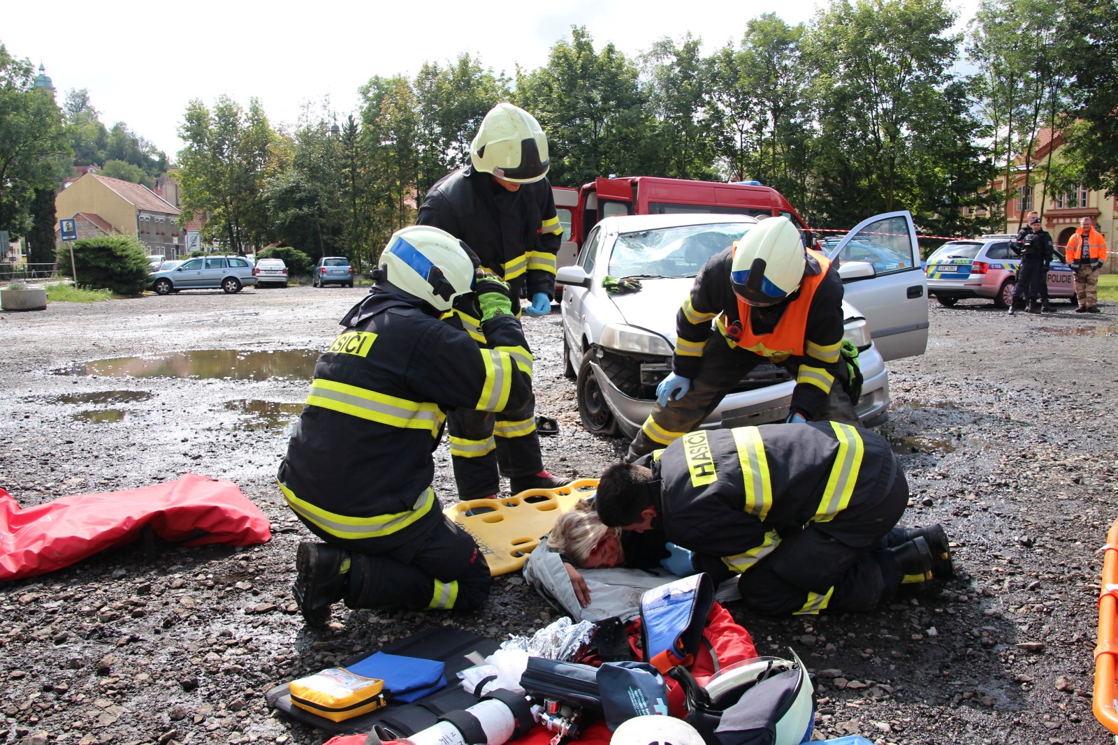 Kousek od obce Střemy byla pro změnu situována hromadná dopravní nehoda, u které týmy řešily příjezd k události s velkým počtem raněných a malým počtem zasahujících. Jednou z dalších událostí byla záchrana osoby z řeky po převrácení loďky, kde hasiči zjistili, že je potřeba ihned zahájit resuscitaci. Na místě tak byla připravena resuscitační figurína, u které hasiči prováděli až do příjezdu zdravotnické záchranné služby nepřímou srdeční masáž. Jelikož je tato situace podstatou celé soutěže v poskytování první pomoci, tak na tomto stanovišti byla reálně přítomna i Zdravotnická záchranná služba Středočeského kraje, která nejen hrála součinnost se zasahujícími hasiči, ale spolu s rozhodčími dohlížela také na správnost provedení.