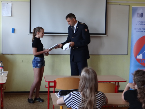 Na závěr tohoto školního roku příslušníci Hasičského záchranného sboru Moravskoslezského kraje (HZS MSK) mj. vybrali tři nejkvalitnější literární práce a jejich třem autorkám ze šestých tříd předali přímo v jejich školách tři chytré mobilní telefony.