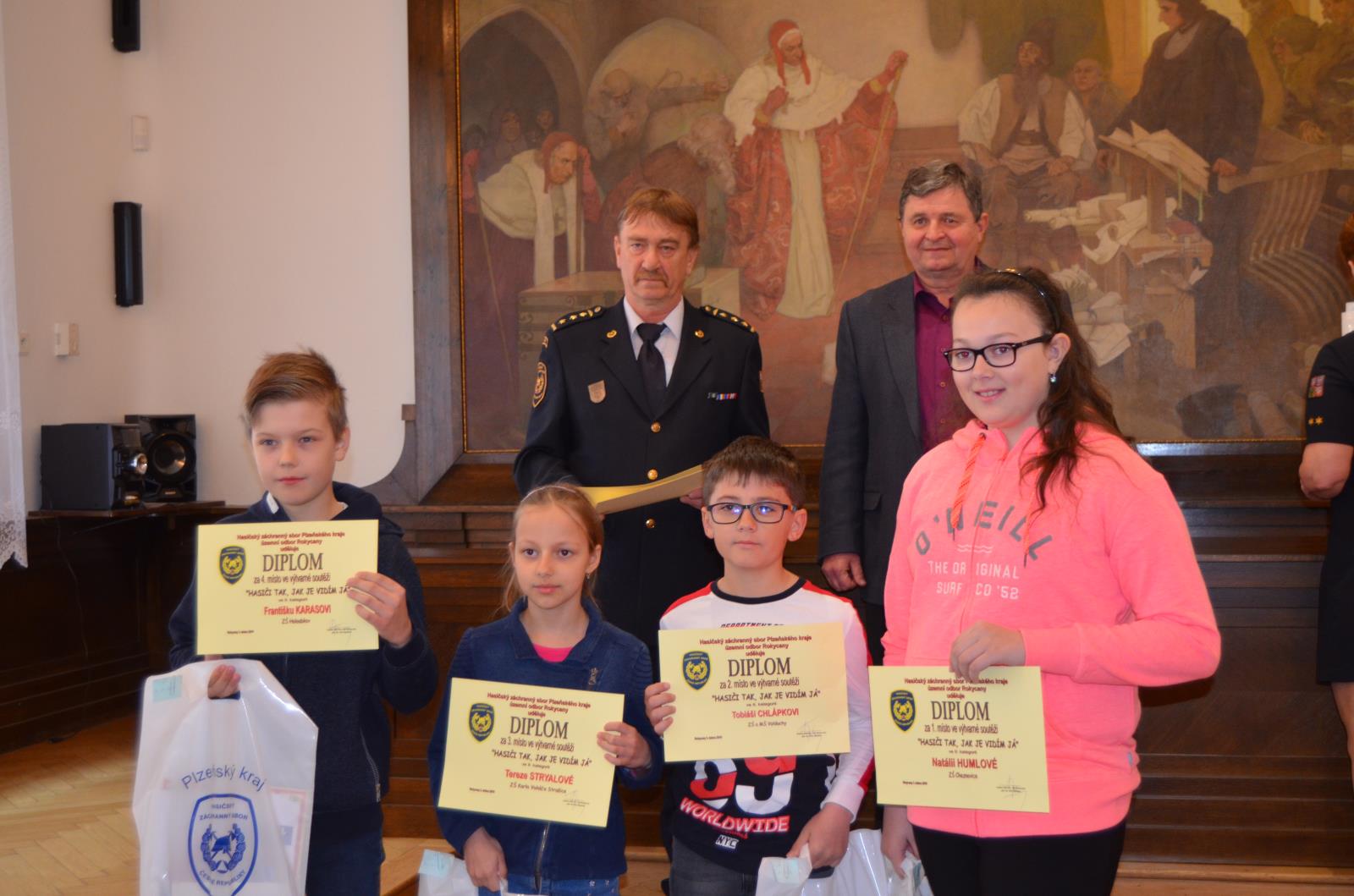 Ve středu 3. 4. 2019 proběhlo ve obřadní síni MěÚ Rokycany slavnostní vyhlášení výsledků a předání cen vítězům výtvarné soutěže „Hasiči tak, jak je vidím JÁ“. Úspěšní výtvarníci se zúčastnili slavnostního předání v doprovodu svých rodičů, prarodičů, sourozenců, učitelů….