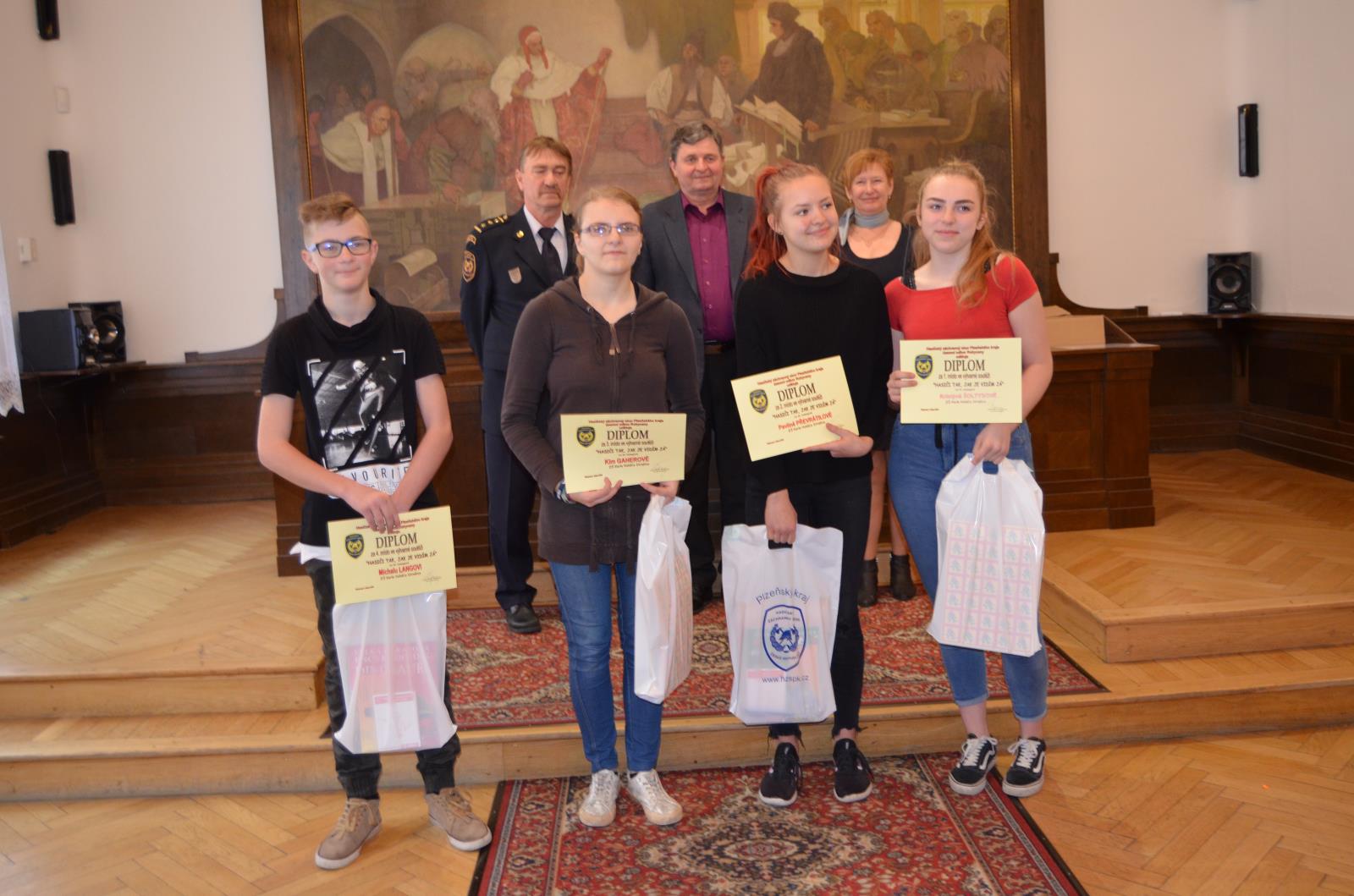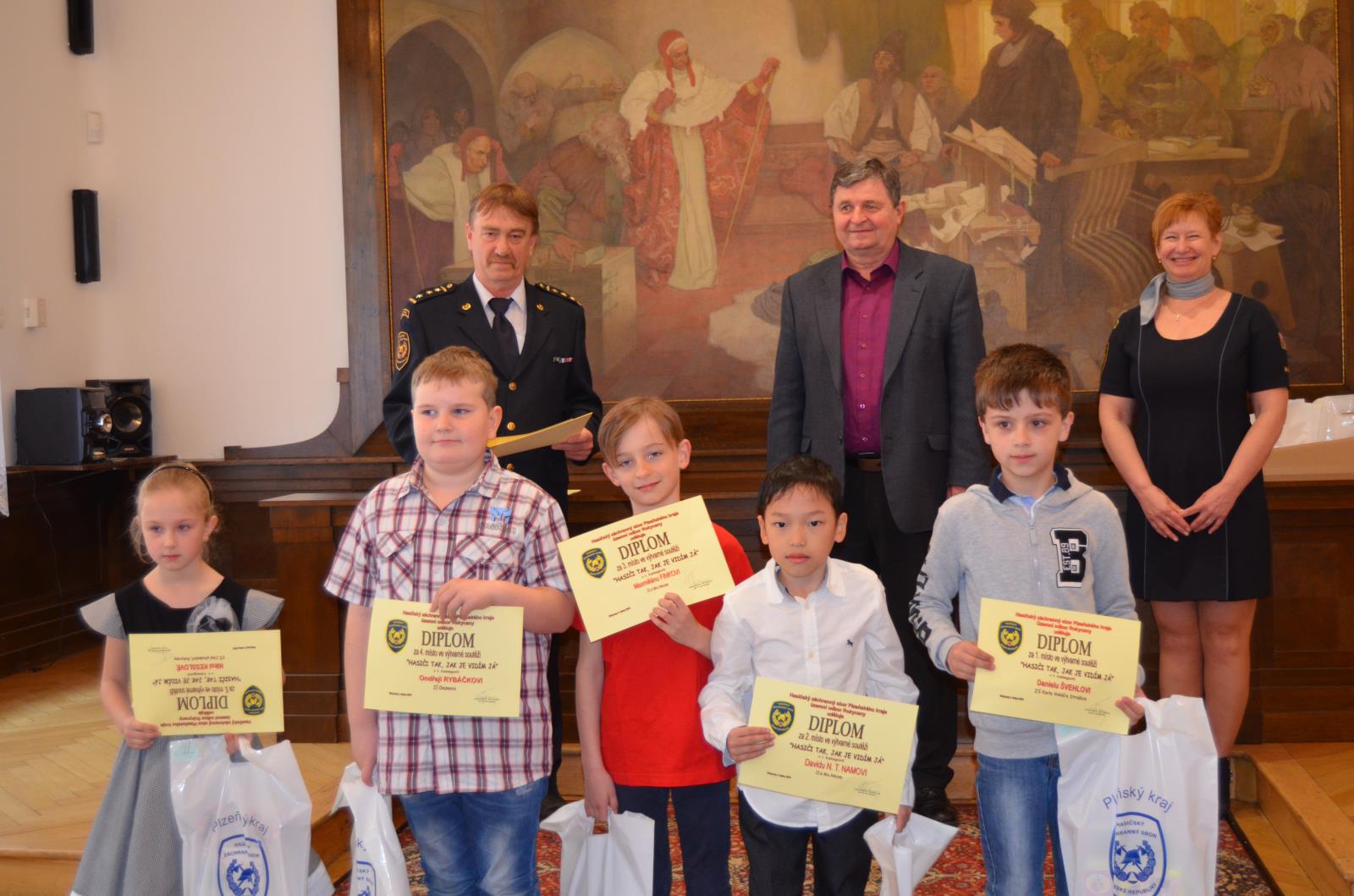 Diplomy a věcné ceny dětem předali ředitel HZS PK ÚO Rokycany plk. Dr. Petr Špelina a starosta města Rokycany Václav Kočí.