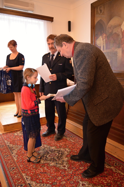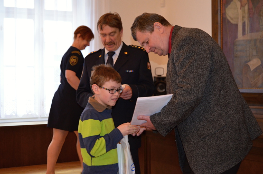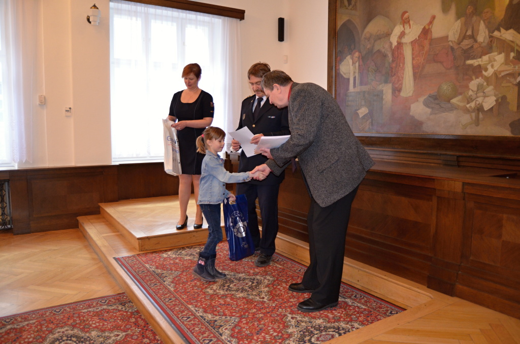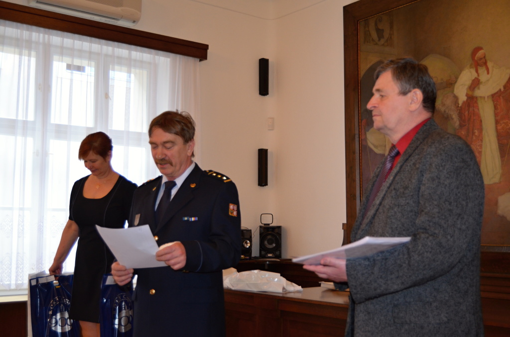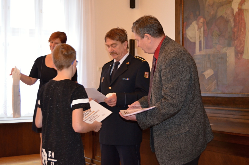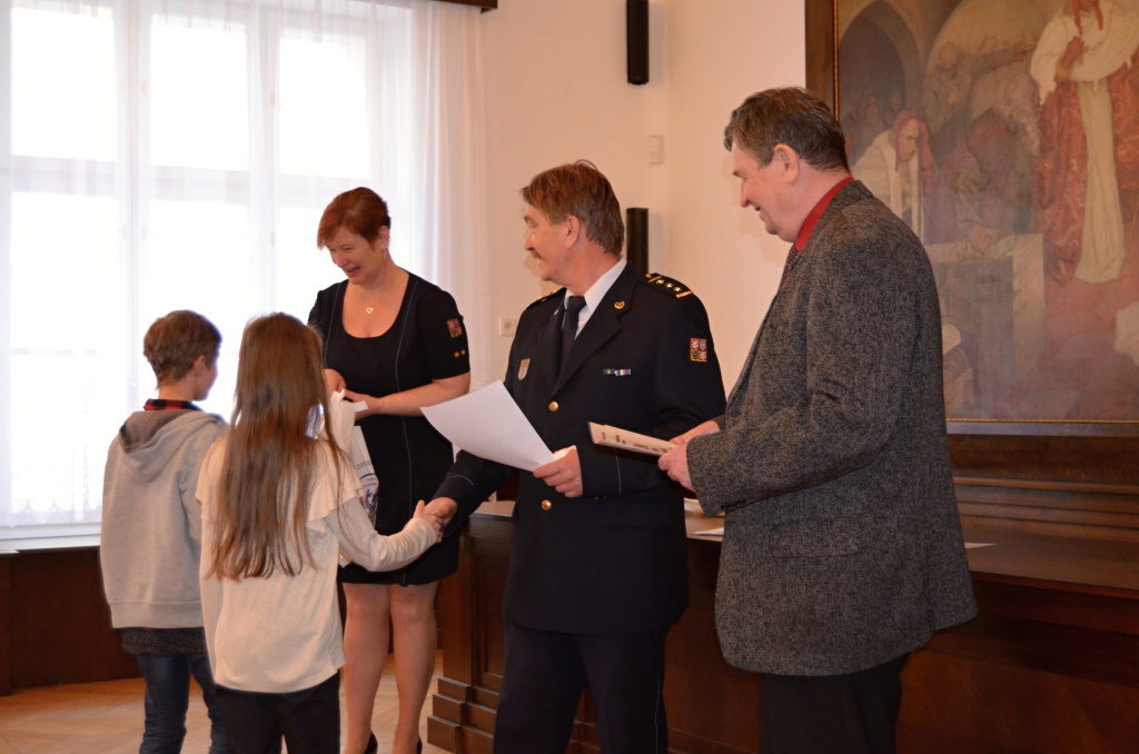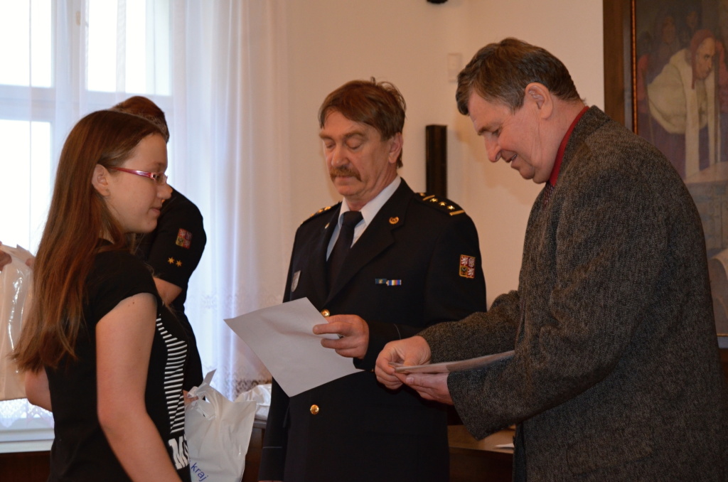 Diplomy a ceny předali starosta města Rokycany Václav Kočí a ředitel územního odboru Rokycany Dr. plk. Petr Špelina