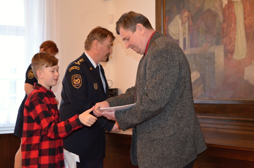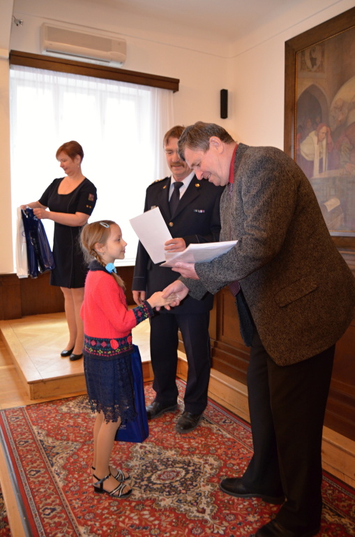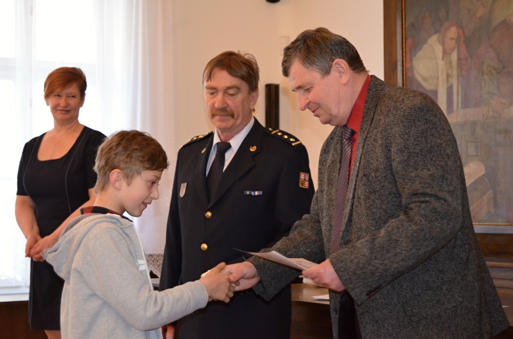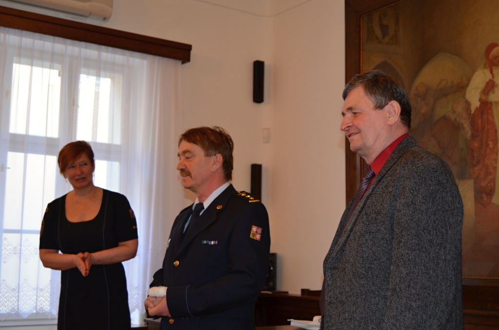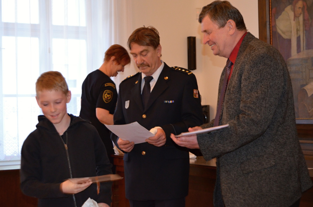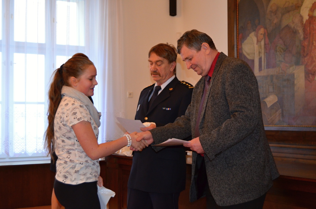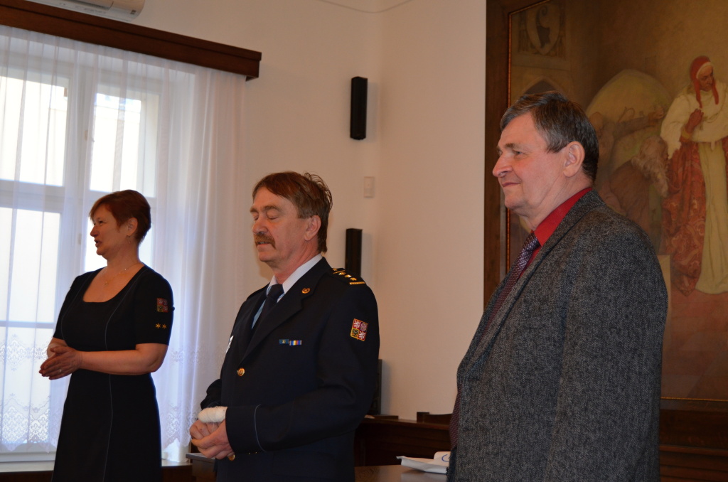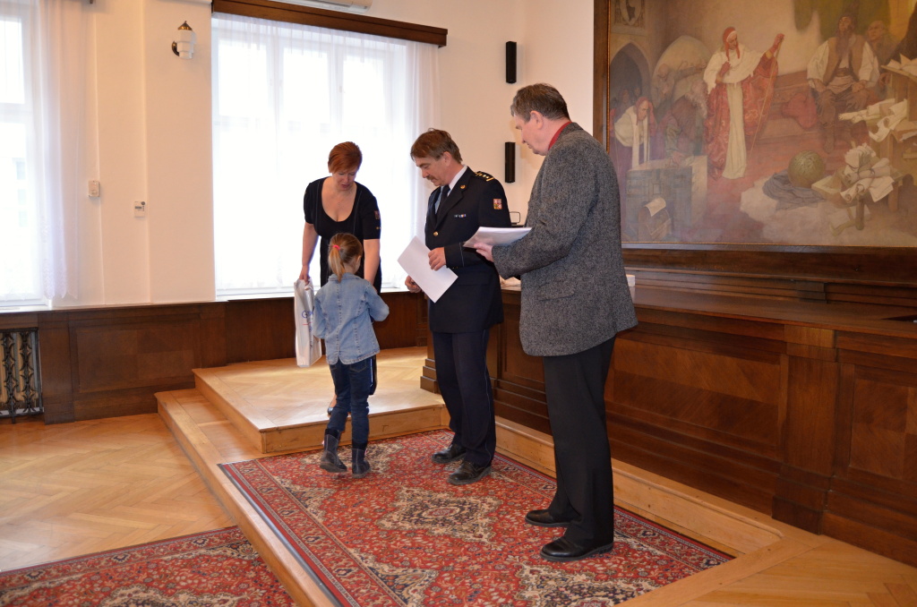 Diplomy a ceny předali starosta města Rokycany Václav Kočí a ředitel územního odboru Rokycany Dr. plk. Petr Špelina
