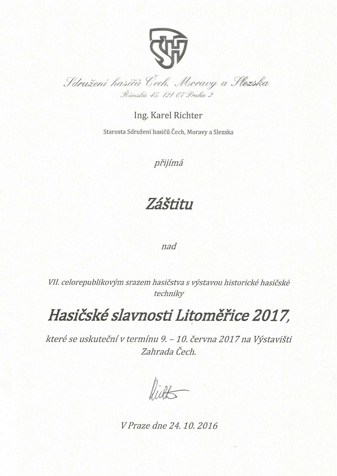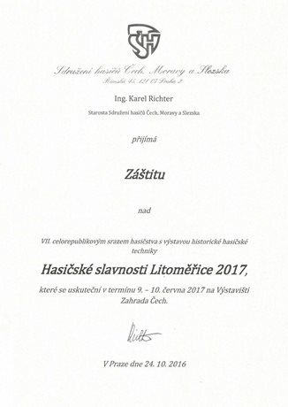 Nad Hasičskými slavnostmi Litoměřice 2017 převzali záštitu: