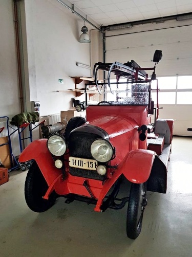 požární automobil značky Praga Grand Ebert z roku 1920 ve 4D, tedy jak se říkalo dřív – na vlastní oči. Pověstná Máňa čeká na své obdivovatele spolu s dalšími