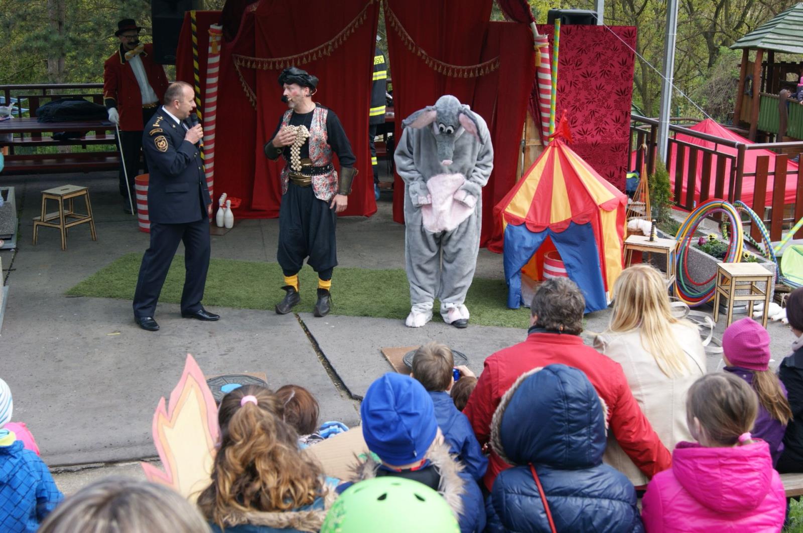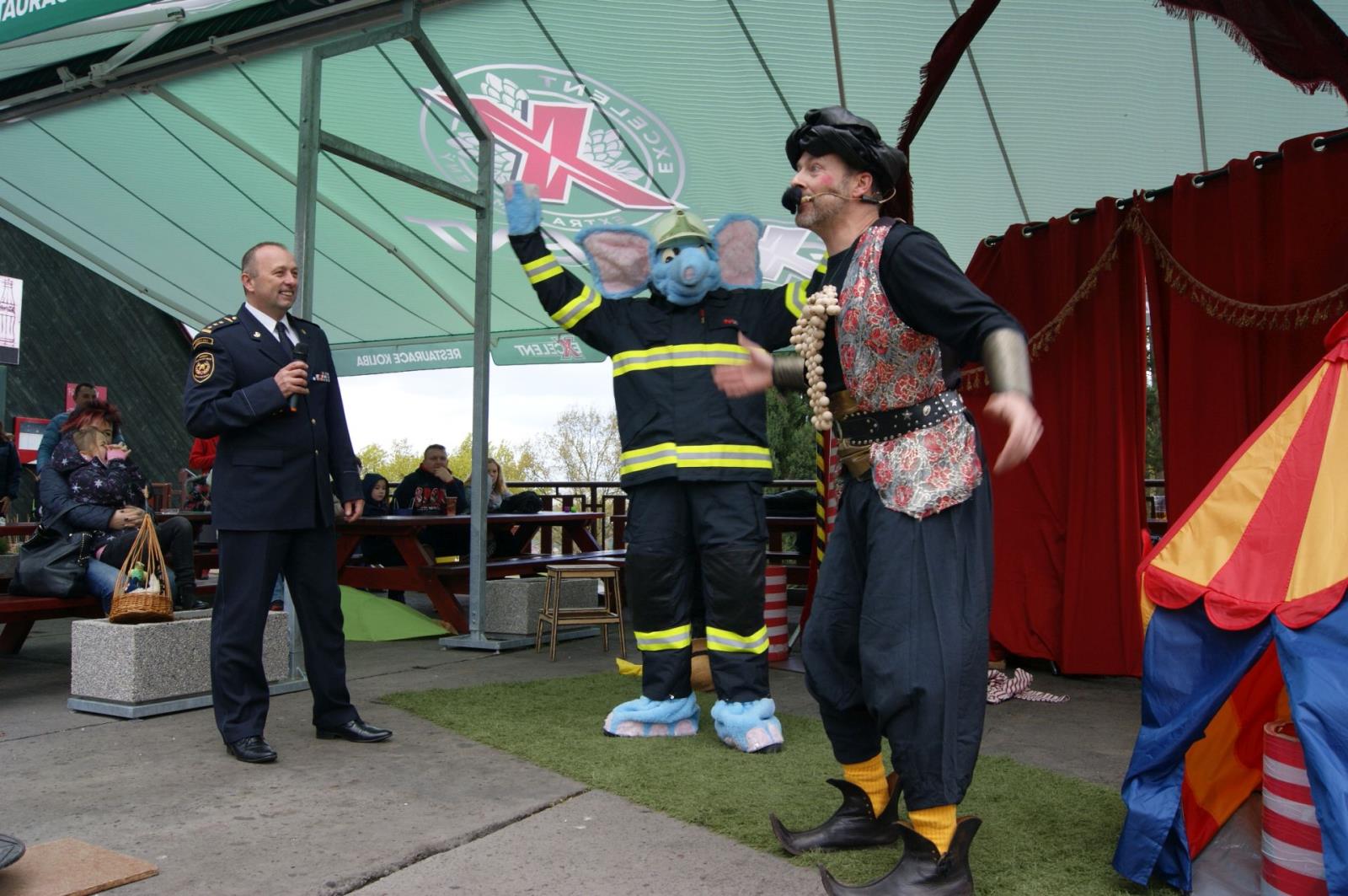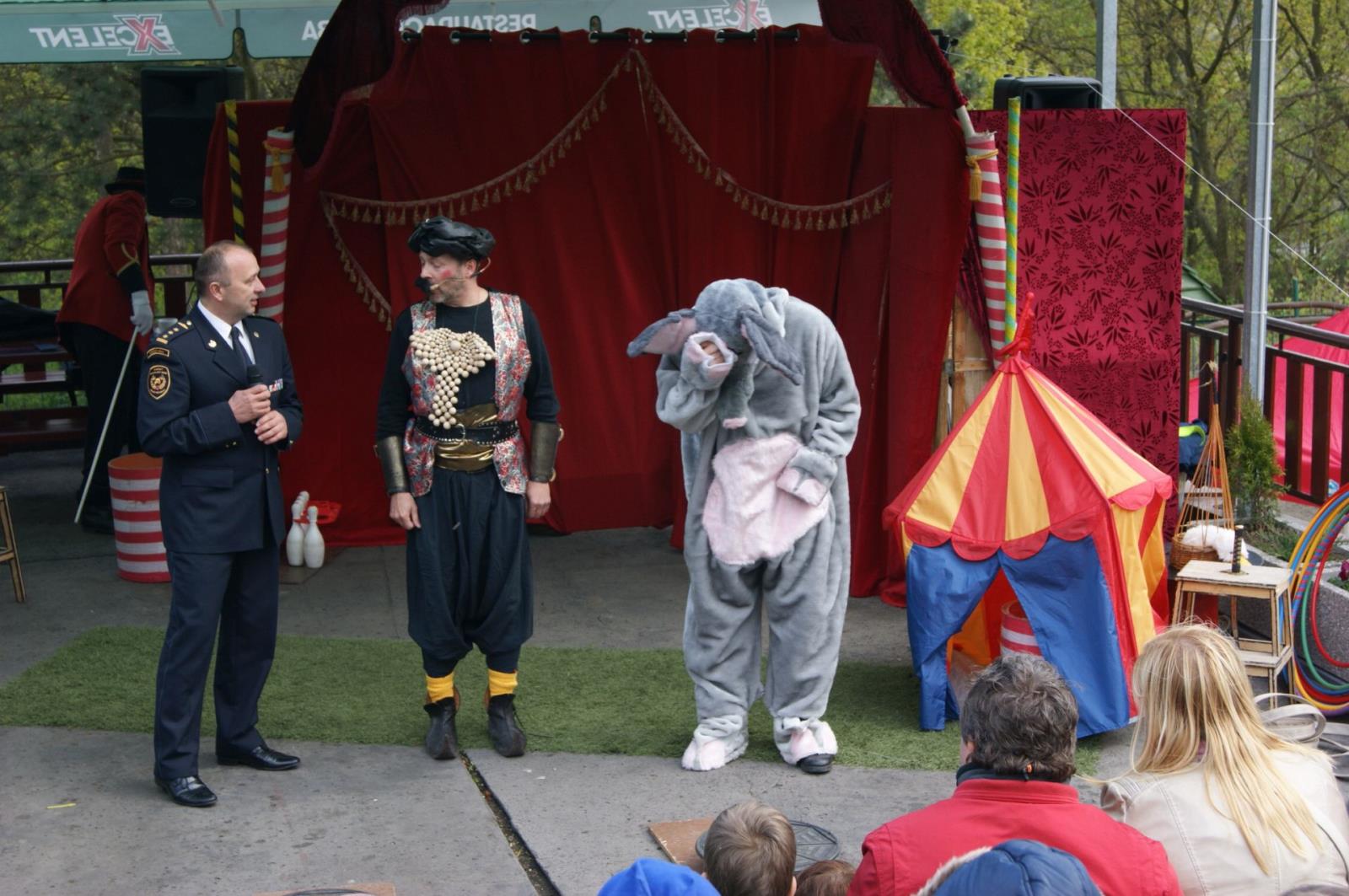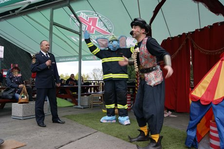Slon Hugo 4.jpgSoučástí akce, která proběhla v areálu ústecké ZOO, byly akce a soutěže pro děti a jejich rodiče na pěti stanovištích, zároveň ukázky hasičské techniky a hlavně od 15:00 divadelní představení pohádky O malém velkém slonovi v provední Divadla v pytli, vyhodnocení výtvarné soutěže, které se zúčastnily děti z mateřských škol, a křest maskota slona Huga na hasiče ředitelem Hasičského záchranného sboru Ústeckého kraje plk. Ing. Romanem Vyskočilem.