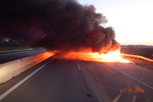Tři jednotky profesionálních hasičů (HZS MSK) zasahovaly ve středu 7.11.2018 ráno na dálnici D1 asi kilometr před státní hranicí s Polskem (okres Karviná) u požáru polského autobusu Mercedes Benz Tourismo RHD, který se vracel prázdný do Polska. I přes snahu polského řidiče a rychlý zásah hasičů byl autobus zničen. Předběžná škoda na autobusu a 7 zničených betonových panelech dálničního tělesa byla odhadnuta na 3 miliony korun. Požár se obešel bez zranění řidiče, který zjistit oheň během jízdy do Polska, vozidlo ihned odstavil na krajnici a pokusil se uhasit oheň dvěma přenosnými hasicími přístroji (6 kg prášek). Tzv. „dělnický“ autobus vezl brzy ráno do českých firem polské dělníky a vracel se prázdný zpět do vlasti. Operační středisko hasičů bylo o požáru informováno ve středu ve čtvrt na sedm ráno. Na dálnici D1 (u Věřňovic) vyjely tři jednotky Hasičského záchranného sboru Moravskoslezského kraje (HZS MSK) – ze stanic Bohumín, Ostrava-Přívoz a Ostrava-Zábřeh. Hasiči dostali oheň pod kontrolu za 17 minut, zcela dohašeno bylo během několika desítek minut. Dálnice ve směru na Polsko byla zhruba hodinu zcela uzavřená, pak byl zprovozněn její levý rychlý pruh. Příčina vzniku požáru je v šetření, vyšetřovatelé HZS MSK ji budou na místě zjišťovat po poledni s pracovníky pražského Technického ústavu požární ochrany. Na polském autobusu byla zjištěna předběžná škoda 2,65 milionu korun, dalších 350 tisíc korun na sedmi betonových panelech dálnice, které poškodil žár z hořícího autobusu. Zdroj: Petr Kůdela, tiskový mluvčí - HZS Moravskoslezského kraje Foto: HZS Moravskoslezského kraje FOTOGALERIE