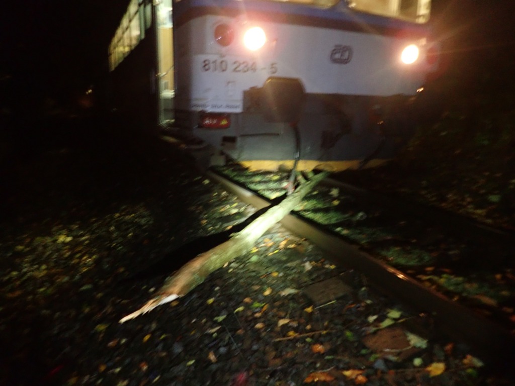Kvůli větru vlak na Bruntálsku najel na spadlý strom
