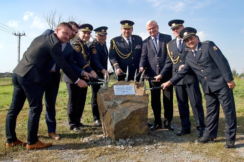 Dnes, 1.října 2018, se ve Slavkově u Brna uskutečnilo slavnostní poklepání základního kamene nové hasičské stanice. Díky výborné spolupráci s městem se podařilo zajistit vhodný pozemek, na kterém bude také výjezdové stanoviště Zdravotnické záchranné služby Jihomoravského kraje. Výstavba nové stanice by měla být zahájena do konce letošního roku. Ukončení hasiči plánují na konec roku příštího. Cena stavby podle projektu se odhaduje na bezmála 35 milionů korun. Financována bude ze státního rozpočtu. Projekt, příjezdovou cestu, mostek a část oplocení hradí město Slavkov u Brna. Město také zajistilo pozemek na stavbu, který je vhodně umístěn vzhledem k frekventovanému silničnímu tahu I/50 a centru města. Nový areál se stane společným výjezdovým centrem HZS a ZZS Jihomoravského kraje. Původní hasičská stanice zůstane dobrovolným hasičům, kteří ji dnes sdílejí společně s naší jednotkou. Slavnostní akce se účastnil generální ředitel HZS ČR genmjr. Drahoslav Ryba, který ocenil vznik nové stanice a konstatoval, že dosavadní prostory jednotky již nevyhovují současným podmínkám a poděkoval za přípravu výstavby: „Chtěl bych poděkovat všem, kteří se podíleli na tom, že tady dnes stojíme, ať už to byl Jihomoravský kraj, ať už to bylo město Slavkov a samozřejmě všem, kteří se zasloužili o to, že to takto dopadlo.“ Kromě generálního ředitele dnes do Slavkova u Brna zavítali také jeho náměstci brig. gen. Slavomír Bell a plk. Fratišek Vavera. Akci navštívil místopředseda senátu Parlamentu ČR Ivo Bárek, náměstek jihomoravského hejtmana Roman Hanák, starosta Slavkova u Brna Michal Boudný a ředitel HZS Jihomoravského kraje plk. Jiří Pelikán. Za hlavní složky IZS pozvání přijal ředitel jihomoravské policie plk. Leoš Tržil a ředitel jihomoravské záchranné služby Milan Klusák. Zdroj: Jaroslav Mikoška firebrno.cz Foto: HZS Jihomoravského kraje