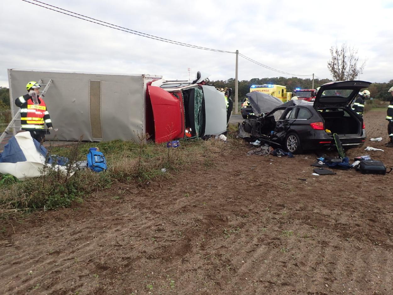 Dopravní nehoda osobního a dodávkového automobilu ve Staré Boleslavi v ulici 5. května byla na tísňovou linku středočeských hasičů nahlášena v úterý 2. října 2018 dopoledne. Po srážce skončila dodávka ležet na boku, v obou vozidlech zůstali zranění lidé. Na místo ihned vyjeli profesionální hasiči ze stanice Stará Boleslav, dobrovolní hasiči z Brandýsa nad Labem, vyprošťovací automobil ze stanice Mělník a velitel čety ze stanice Mladá Boleslav.   Po příjezdu k zásahu velitel upřesnil, že je v dodávkovém vozidle zraněný muž, kterého jednotky vyprostily, zajistily tepelný komfort a zastavily krvácení hlavy. V osobním automobilu cestoval řidič, u kterého došlo k otevřené zlomenině stehenní kosti a těhotná žena, které se při nehodě vážně zranila. Oba byli při příjezdu hasičů mimo vozidlo. Vyškolení hasiči – zdravotníci poskytli zraněným předlékařskou první pomoc a následně spolupracovali se zdravotnickou záchrannou službou. Ta na místo povolala také vrtulník letecké záchranné služby, který přepravil řidiče dodávky do nemocnice. Souběžně bylo na vozidlech provedeno protipožární opatření a likvidován únik provozních kapalin. Po vyšetření nehody příslušníky PČR zajistila odtahová služba otočení dodávky na kola. Silnice byla zprůjezdněna po 11. hodině. Zdroj: kpt. Ing. Jaroslav Gabriel – tiskový odbor HZS Středočeského kraje Foto:HZS Středočeského kraje FOTOGALERIE