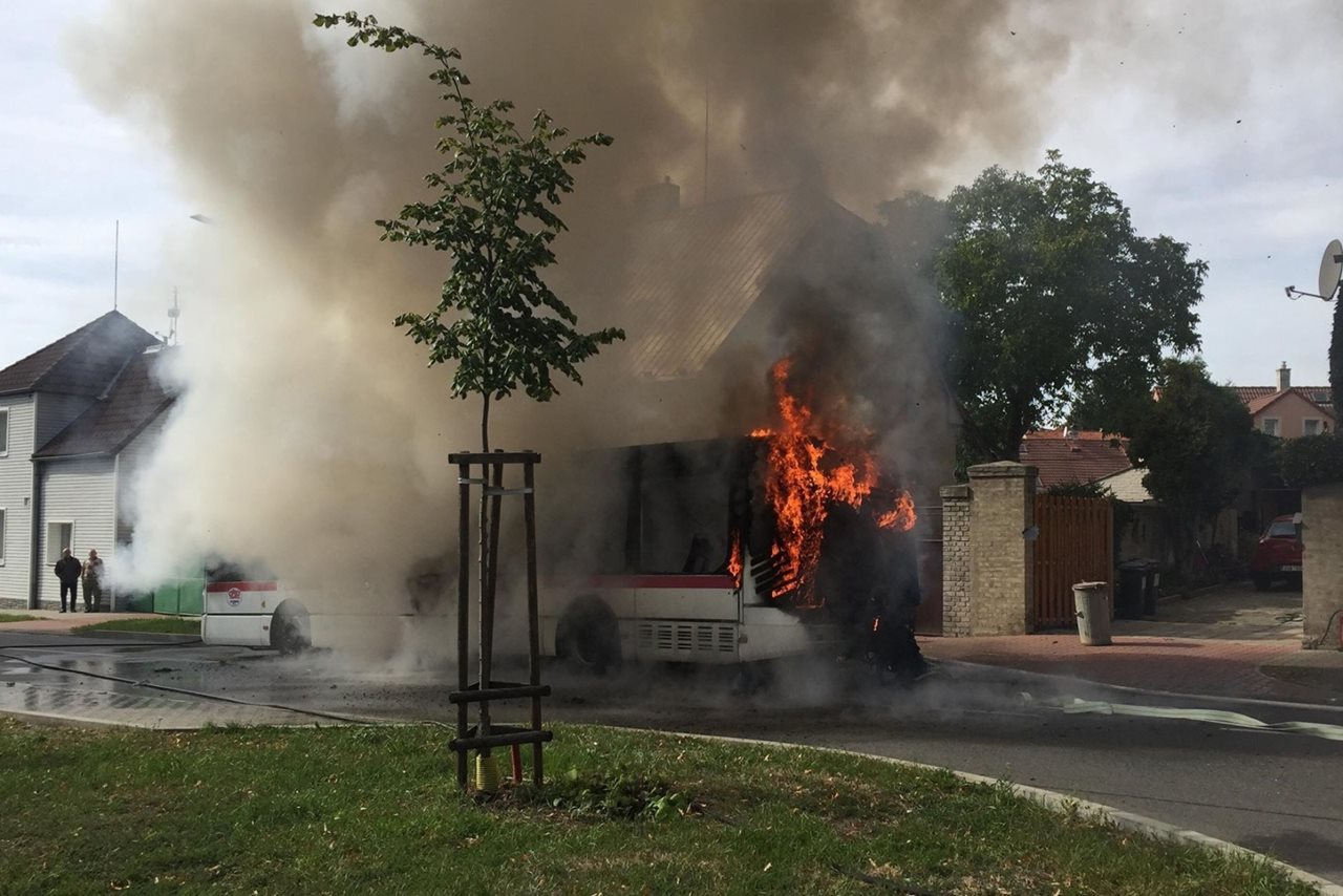 Požár autobusu v městské části Švermov byl na tísňovou linku středočeských hasičů oznámen ve středu 26. září 2018 v 14.35 hodin.  Krajské operační a informační středisko HZS Středočeského kraje k události do Velvarské ulice vyslalo profesionální jednotku z centrální kladenské stanice s prvovýjezdovou cisternou, rychlým zásahovým automobilem a velitelským vozidlem, zároveň vyjel i vyšetřovatel požárů. Na pomoc vyrazila také jednotka sboru dobrovolných hasičů obce Pchery s velkou cisternou. Přestože hasiči byli na místě už za šest minut od ohlášení, autobus městské hromadné dopravy byl plameny zachvácen v plném rozsahu. Dva cestující i řidič stačili vozidlo včas opustit, takže se celá událost obešla bez zranění. Hasiči dostali plameny pod kontrolu jedním vysokotlakým a jedním C proudem za necelých deset minut, závěrečnou likvidaci ohlásil velitel zásahu operačnímu důstojníkovi v 15.27 hodin. Při zásahu se hasičům podařilo zabránit, aby obrovský žár poškodil okna a fasádu přilehlého rodinného domu. Autobus byl požárem prakticky zcela zničen a přímé škody vyčíslil vyšetřovatel na jeden a půl milionu korun. Příčinou vzniku požáru podle něj byla technická závada v motorovém prostoru. Zdroj: por. Ing. Ladislav Holomčík, tiskový odbor HZS Středočeského kraje Foto/Video:HZS Středočeského kraje
