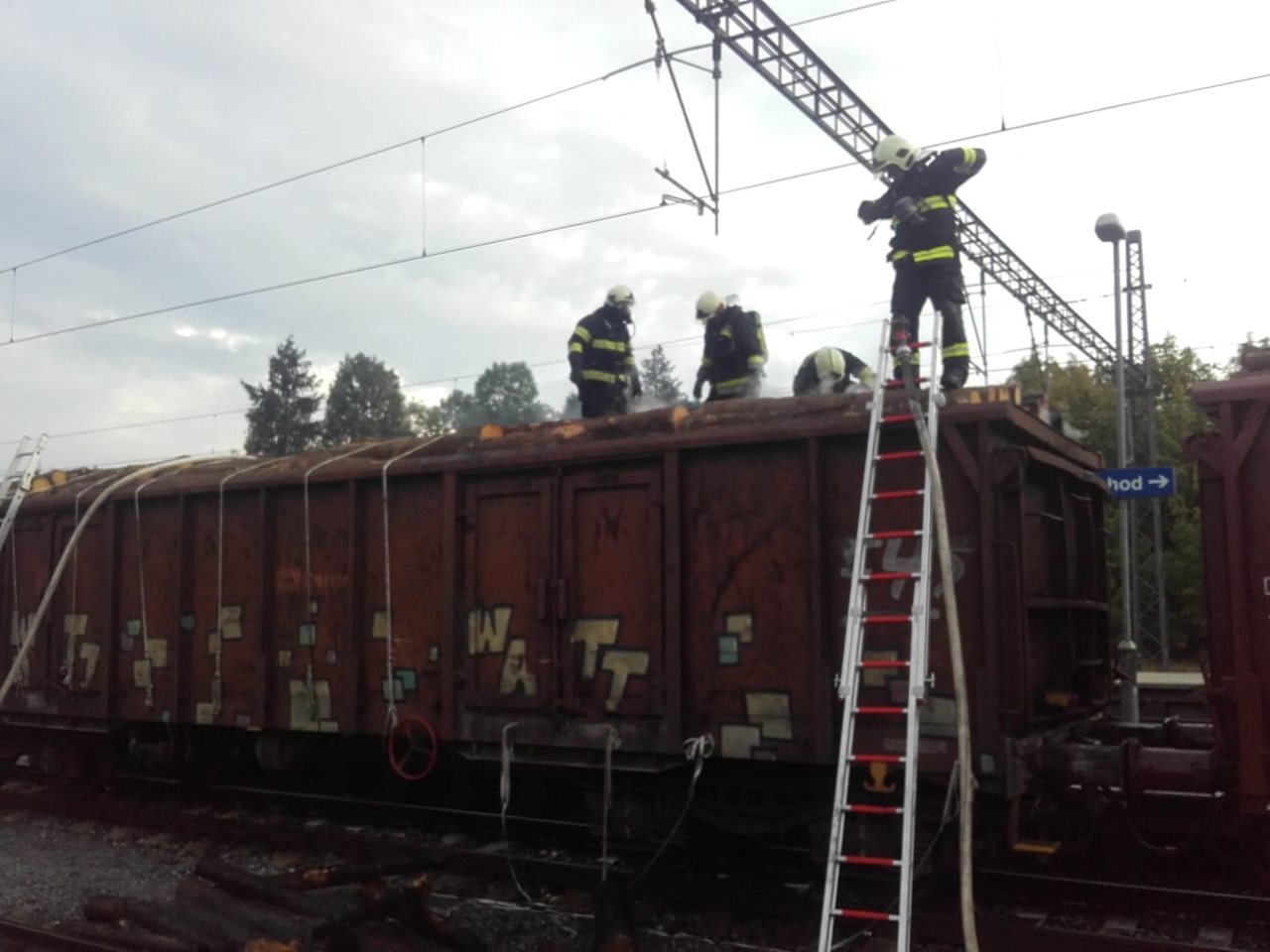 V pátek 24. srpna 2018 v 7.39 hodin přijala tísňová linka středočeských hasičů informaci o požáru v jedoucím nákladním vlaku na trati z Prahy do Benešova. Podle oznamovatelky šlehaly plameny z jednoho vagonu při průjezdu obcí Kolovraty. Vlak se podařilo zastavit na nádraží v Říčanech, kam operační důstojník vyslal místní profesionální i dobrovolné hasiče a také jednotku SDH obce Doubek. Z Prahy zároveň vyrazila podniková jednotka Hasičské záchranné služby Správy železniční dopravní cesty. Po příjezdu na nádraží bylo zjištěno, že požárem je zasažena část vagonu, ve kterém byly převáženy dvoumetrové klády. Před zahájením zásahu museli hasiči počkat na zastavení provozu na trati a vypnutí trakčního vedení, aby nedošlo k úrazu elektrickým proudem. Pro vlastní hašení použili dva vodní proudy se smáčedlem kvůli zvýšení hasebního účinku. Doutnající klády pak postupně vyhazovali z vagonu na zem, kde je další jednotka dohašovala třetím proudem. Požár byl lokalizován čtyři minuty před osmou hodinou s tím, že se povedlo zabránit rozšíření plamenů na další vozy naložené dřevem. Také v zasaženém vagonu byla uchráněna většina nákladu, v poměru k množství převáženého dřeva ohořelo jen několik klád. Celý vagon i nejbližší sousední pak byly zkontrolovány termokamerou. Závěrečnou likvidaci ohlásil velitel zásahu v 8.55 hodin a předal událost veliteli podnikové jednotky SŽDC. Na místě zůstali říčanští dobrovolní hasiči, kteří pomohli drážním kolegům s úklidem ohořelých klád. Podle vyšetřovatele vznikl požár nejspíš nedbalostí, kdy někdo mohl například vhodit do vagonu nedopalek cigarety. Přímé škody byly vyčísleny na 30 tisíc korun, včasným zásahem se ve vagonu podařilo uchránit hodnoty za 80 tisíc. Zdroj: por. Ing. Ladislav Holomčík, tiskový odbor HZS Středočeského kraje Foto:HZS Středočeského kraje