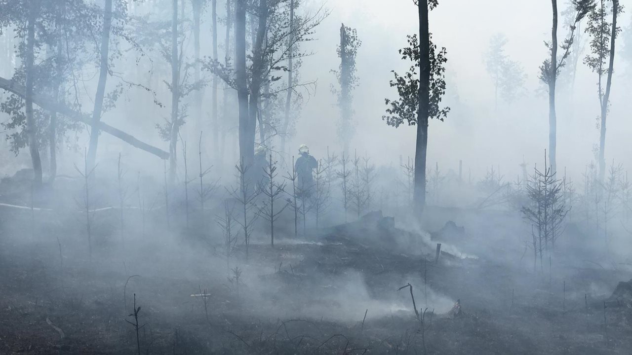 Sedm hasičských jednotek likvidovalo požár lesa u Chabičova na Olomoucku.VIDEO