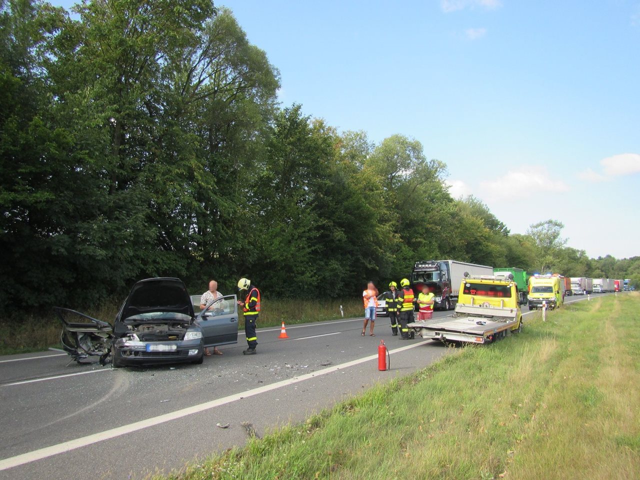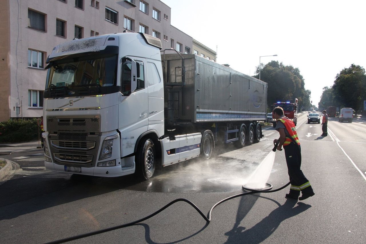 V pátek 17. 8. 2018, dvě jednotky hasičů likvidovaly biologický odpad, který znečistil silniční komunikaci I.třídy č. 49, která prochází středem města Zlín. Nehoda byla hasičům ohlášena v 7:02 hodin. Operační důstojník hasičů vyslal na místo profesionální hasiče z centrální požární stanice Zlín a jednotku sboru dobrovolných hasičů Statutárního města Zlín-Prštné. Nákladní automobil, který vezl 28 tun biologického odpadu, blokoval v době příjezdu hasičů výjezd z ulice Lorencova a také jeden jízdní pruh na třídě Tomáše Bati. Asi 500 kilogramů mastného biologického odpadu leželo na silnici i nákladním vozidle. Řidič hasičům sdělil, že při náhlém brzdění převážený materiál utrhl krycí plachtu a část vypadla na silnici. Dále sdělil, že firma zajistí odvoz uniklého odpadu. Po příjezdu dodávkového automobilu firmy hasiči lopatami naložili uniklý odpad do připravených kontejnerů. Kontejnery pak naložili zpět do dodávky. Vysokotlakým proudem vody následně provedli oplach silnice. Na místo nehody se dostavila Policie České republiky a Městská policie Zlín. Při oplachu silnice hasiči usměrňovali dopravu v místě nehody. Následně provedli zasypání sypkou sorpční látkou, aby omezili skluz po povrchu silnice. Dočištění silniční komunikace provede správce komunikace. Zdroj: nprap. Roman Žemlička – HZS Zlínského kraje Foto: HZS Zlínského kraje FOTOGALERIE