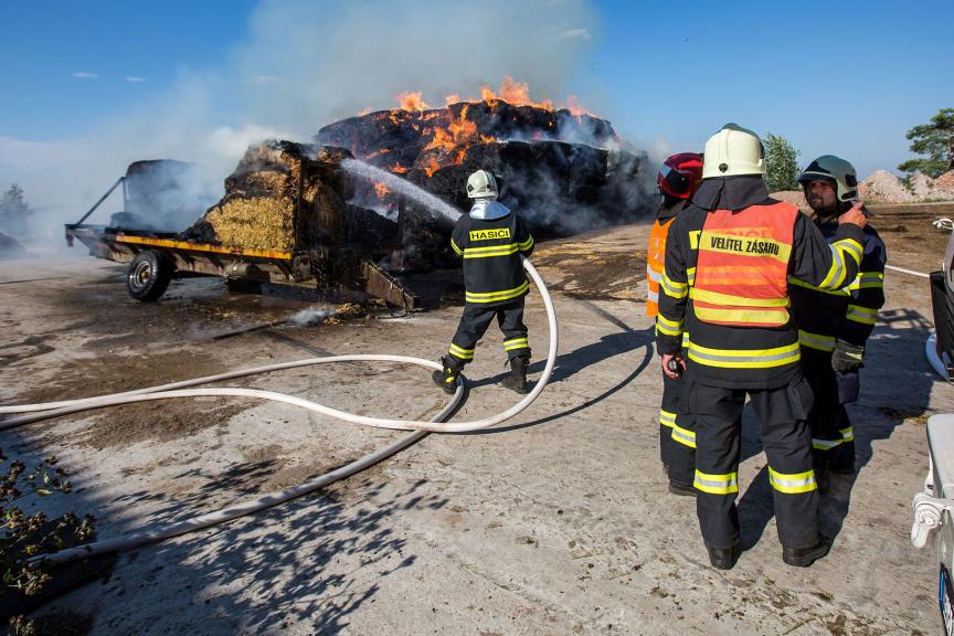 Oznámení o požáru stohu se slámou v Českém Mezeřičí v blízkosti zemědělského objektu přijalo krajské operační a informační středisko v pátek 27. 7. 2018 v 8:15 hod. Sláma byla uskladněna ve stohu o výšce asi 8 metrů na ploše 20x10 metrů. Na místo vyrazilo celkem deset jednotek požární ochrany, z toho důvodu byl vyhlášen druhý poplachový stupeň. Jednotky stoh zahasily z automobilového žebříku a pomocí několika dalších vodních proudů. Zároveň ochlazovaly blízkou budovu kravína, kde se v tu dobu nacházelo více než sto kusů ustájených zvířat. Požár se naštěstí směrem k objektu nešířil a hasiči jej od požářiště oddělovali vodní clonou. Oheň částečně poškodil také vlek za traktorem. Hořící stoh bylo nutné postupně rozebrat a odvézt slámu na odlehlé místo, kde mohla kontrolovaně dohořet. Odvoz a vyskladnění slámy prováděly celkem čtyři nakladače. Jednotky používaly k hašení vodu z hydrantové sítě, ale zároveň bylo zřízeno čerpací stanoviště, odkud se dopravovala voda v cisternách kyvadlově. Hasiči provádějí stále likvidační práce, a to až do odpoledních hodin. Škoda, kterou požár způsobil, byla předběžně vyčíslena na 100 tisíc korun. Díky zásahu hasičů se podařilo uchránit hodnoty ve výši asi 10 milionů korun. Příčinou požáru byla technická závada na plošinovém vleku za traktorem. Na místě zasahovali profesionální hasiči z Rychnova nad kněžnou, Dobrušky a Jaroměře a dále jednotky SDH Nové Město nad Metují, Jasenná, Bohuslavice, Velká Jesenice, Opočno a České Meziříčí. Jednotky SDH Jaroměř město a Jezbiny držely zálohu na stanici v Jaroměři. Zdroj: por. Mgr. Martina Götzová Foto: HZS Královéhradeckého kraje FOTOGALERIE