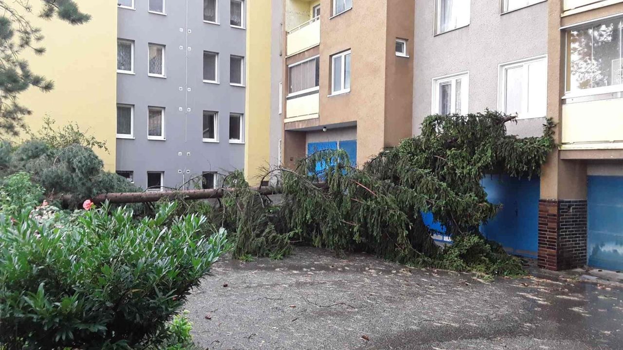 Bouřka řádila Prostějově , hasiči zasahovali u spadaných stromů i čerpali vodu