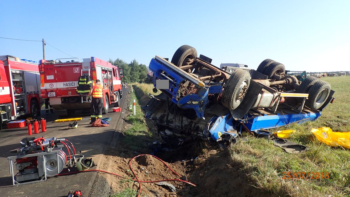 Událost se stala ve čtvrtek, 26.7. 2018, ráno na komunikaci II/611, bývalé silnici první třídy na úseku mezi Lhotou pod Libčany a Urbanicemi. Na místě bylo celkem sedm zraněných osob.  Oznámení o dopravní nehodě dvou osobních a dvou nákladních vozidel přijalo krajské operační a informační středisko ve čtvrtek 26. 7. 2018 v 06:13 hod. Vzhledem k tomu, že se jednalo o vážnou dopravní nehodu s větším množstvím zraněných osob, vyrazili hned na místo profesionální hasiči ze stanice Hradec Králové – Pražská, z centrální hradecké stanice U Přívozu, z Nového Bydžova a také dobrovolná jednotka z Chlumce nad Cidlinou a Nechanic. Průzkumem místa hasiči zjistili, že se mezi dvěma nákladními vozy nachází značně poškozené dva osobní automobily, ze kterých bylo potřeba vyprostit pět zaklíněných osob. Jeden z osobních vozů zůstal na komunikaci, druhý se nacházel mimo vozovku v příkopu. Hasičům se podařilo všech pět osob dostat pomocí hydraulického vyprošťovacího zařízení ven. Na místě bylo celkem sedm zraněných osob, všechny si převzali do péče záchranáři. Po došetření dopravní nehody bude proveden úklid komunikace. Silnice II/611 musela být z důvodu zásahu a dalšího vyšetřování uzavřena. Předpoklad uzavírky je až do 12:00. Zdroj: por. Mgr. Martina Götzová, tisková mluvčí HZS Královéhradeckého kraje Foto: HZS Královéhradeckého kraje FOTOGALERIE