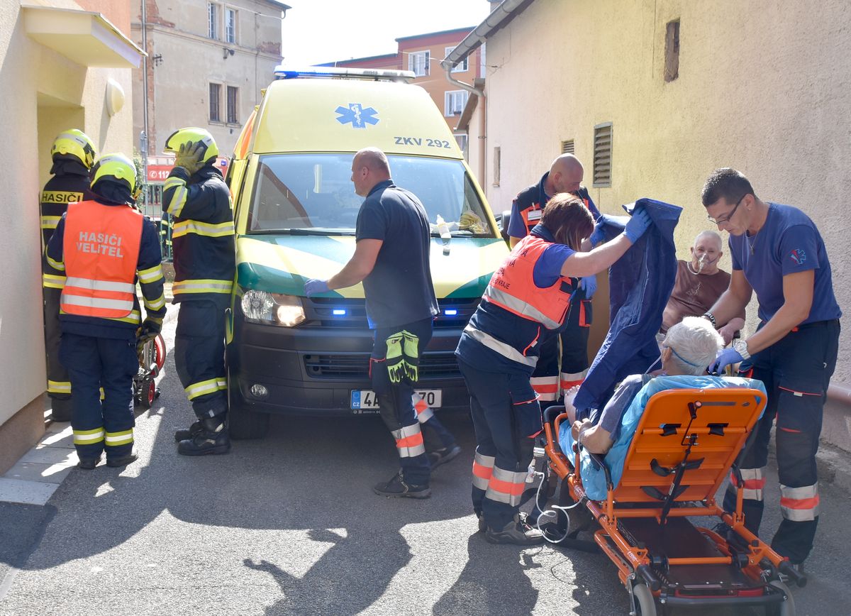 Z hořícího bytu v domě pro seniory v Chebu hasiči zachránili dva seniory